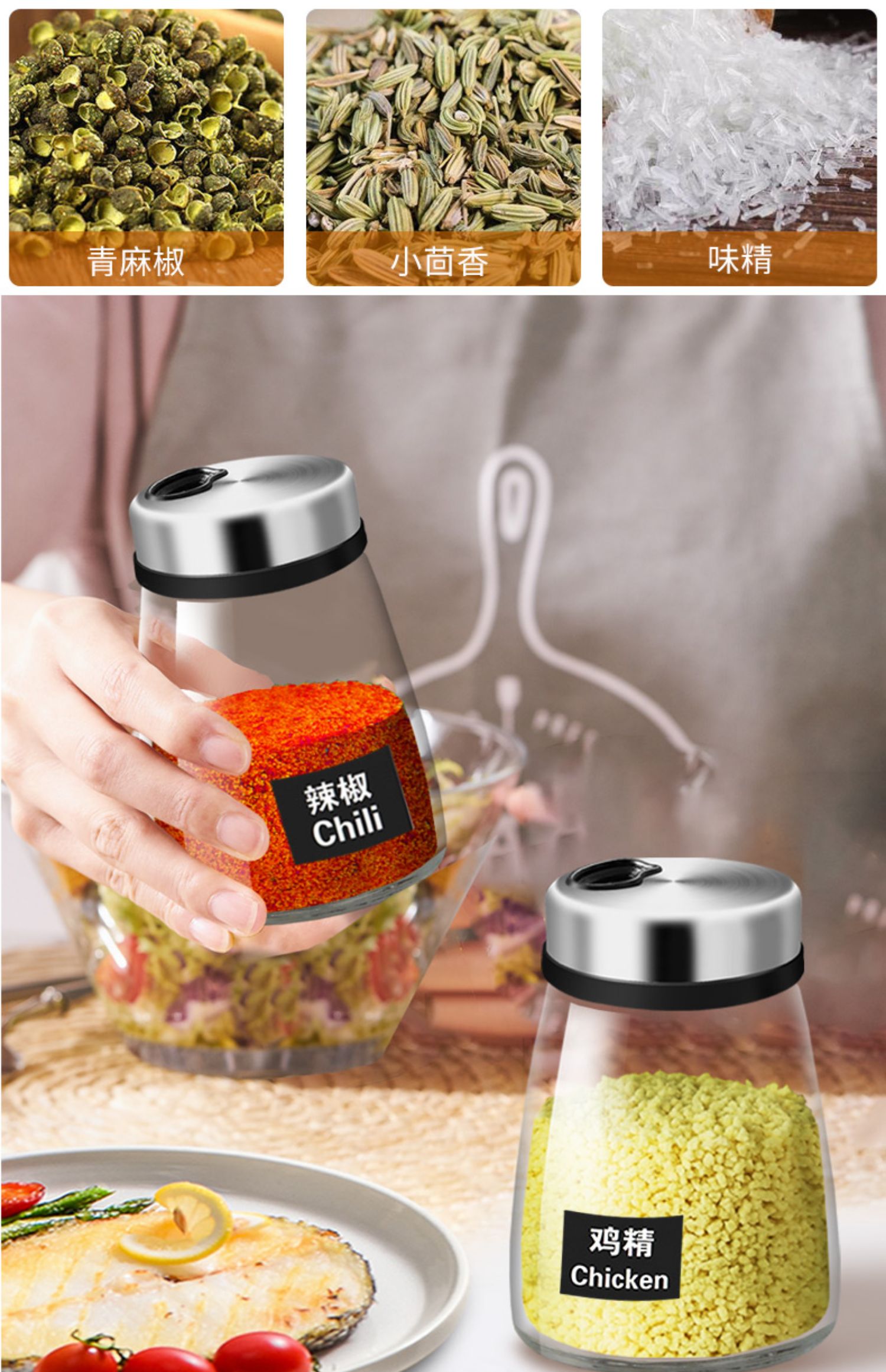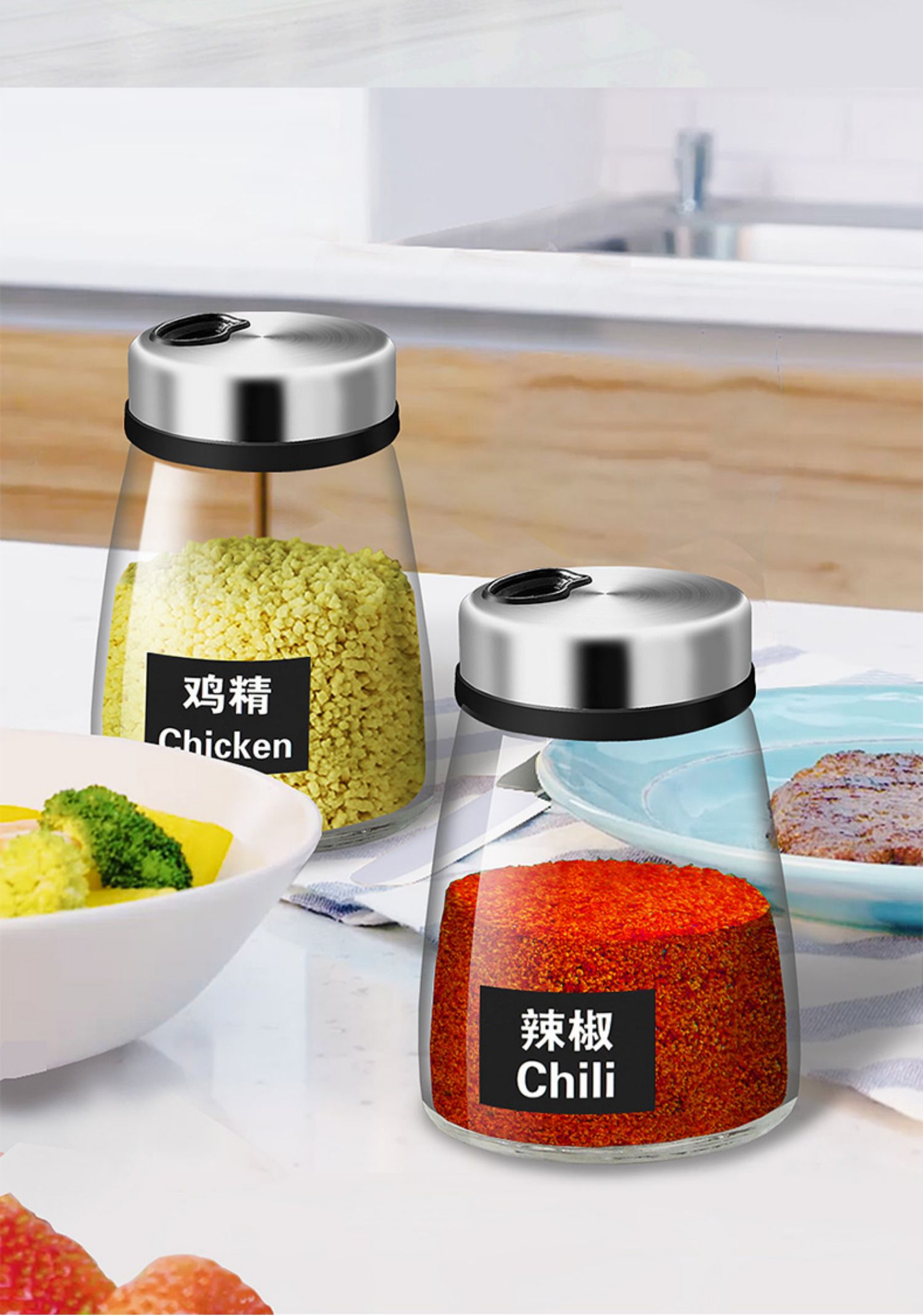 조미료병, 조미료병세트, 조미료박스, 유리바베큐스프링크병, 주방용품, 가정용 조미료, 소금과 후추병