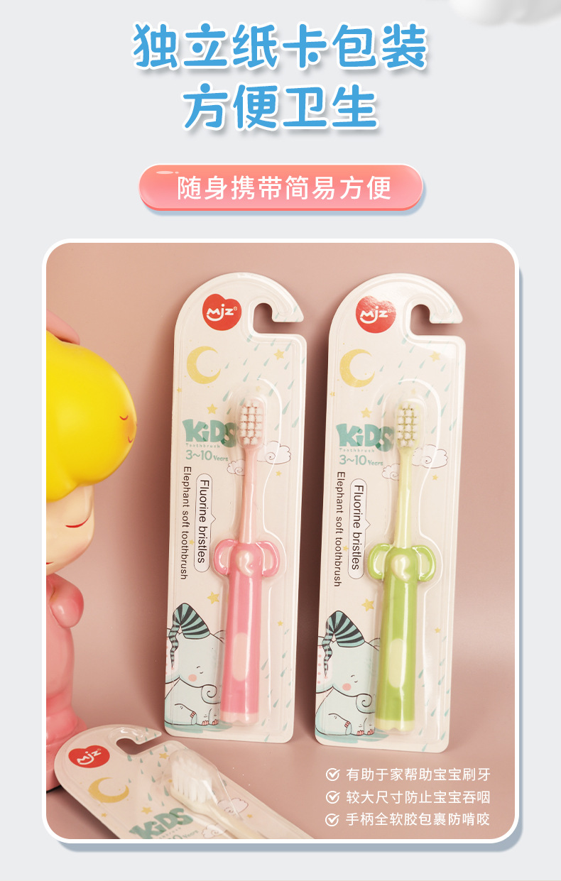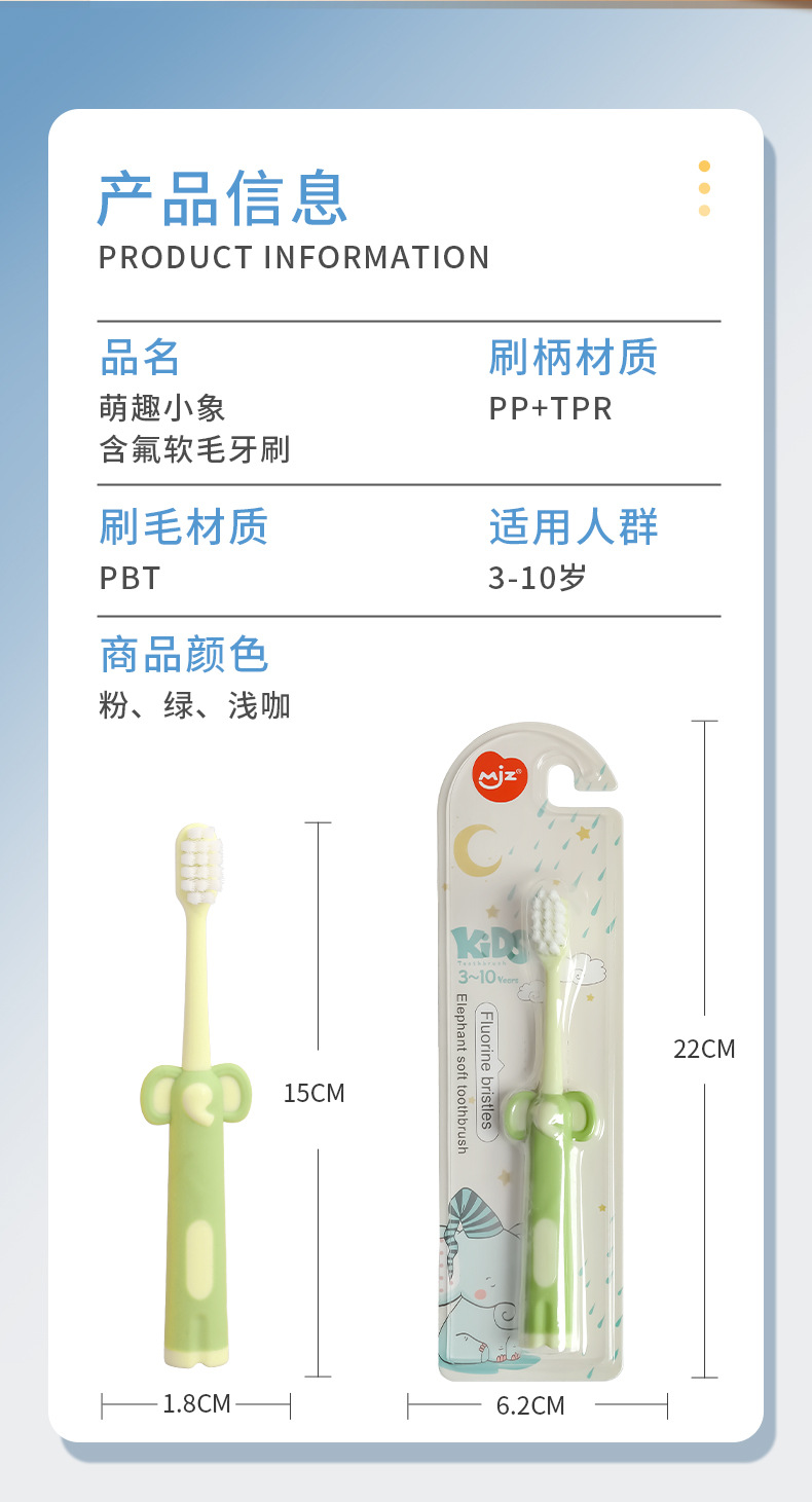 만화 아기 코끼리 어린이 불소 함유 부드러운 강모 칫솔 3-10 세 귀여운 어린이 칫솔 도매 전자 상거래 슈퍼마켓 공급