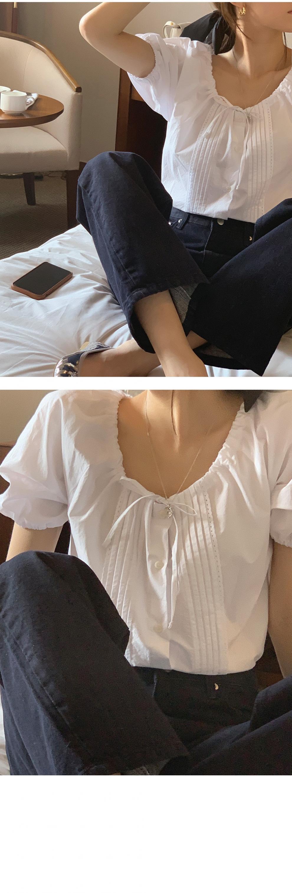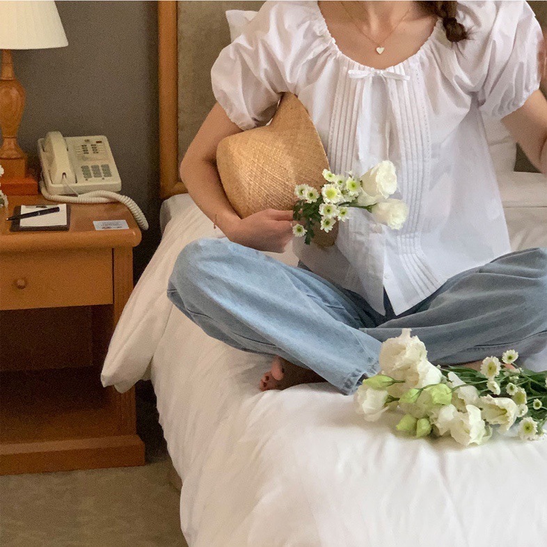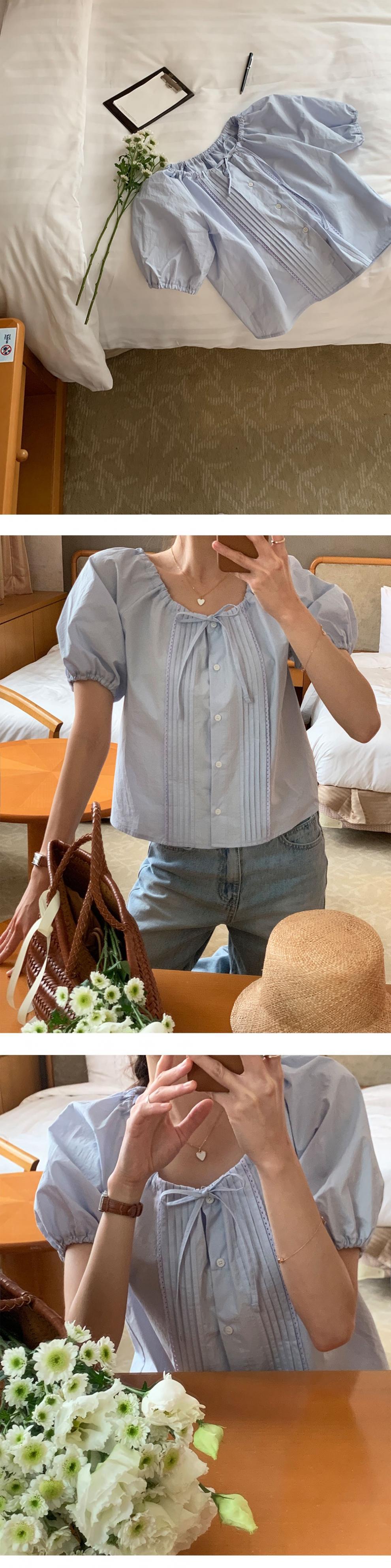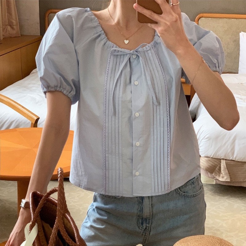 작고 짧은 새로운 스타일의 쉬폰 레이스 버블 셔츠 여름 슬림 반팔 시크 셔츠 스위트 탑스토어 가기