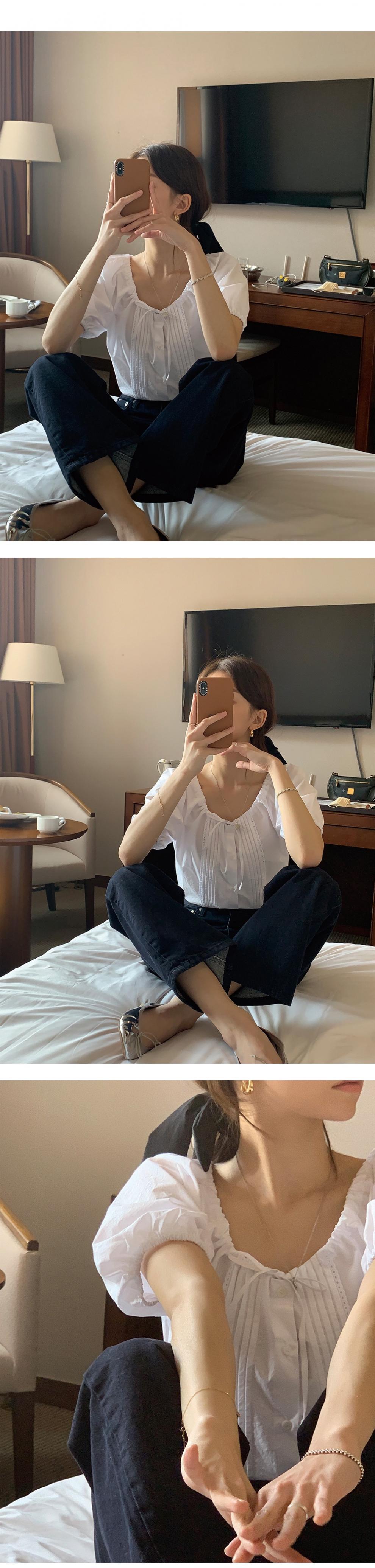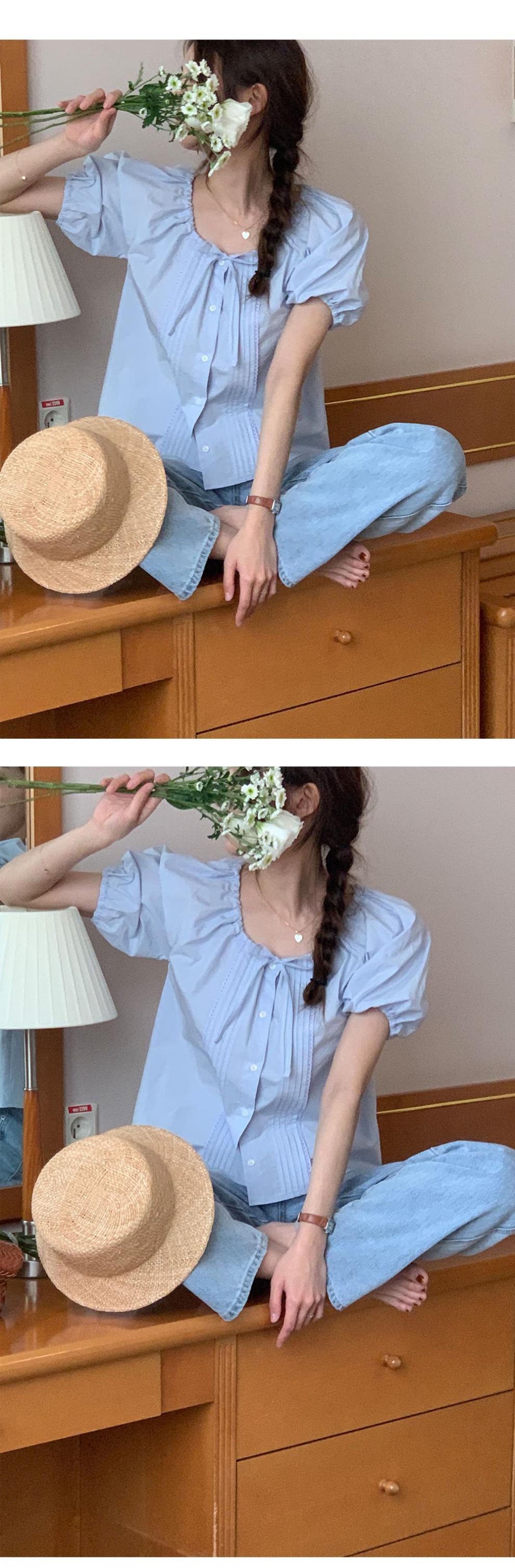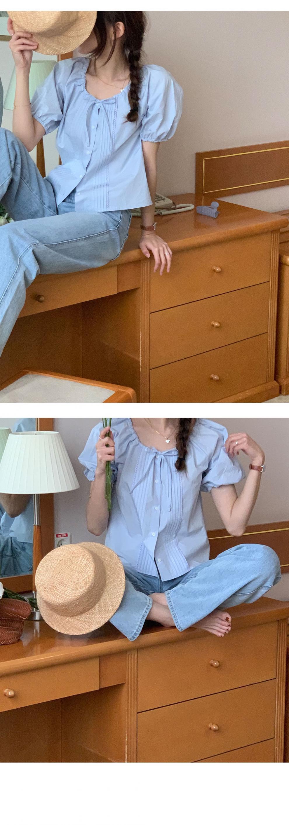 작고 짧은 새로운 스타일의 쉬폰 레이스 버블 셔츠 여름 슬림 반팔 시크 셔츠 스위트 탑스토어 가기