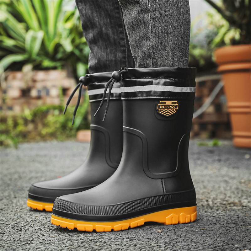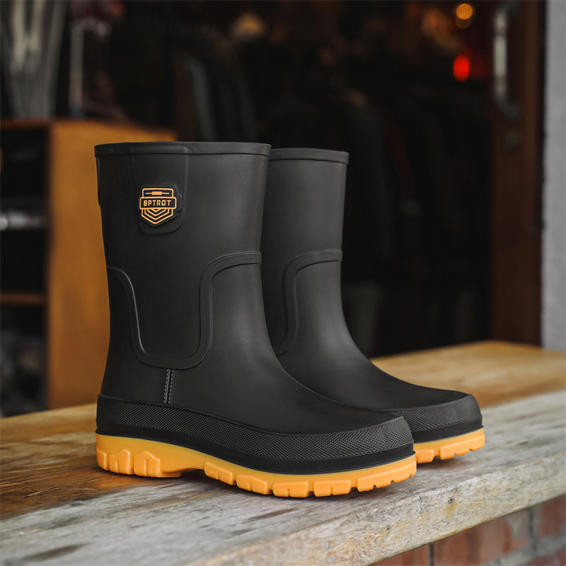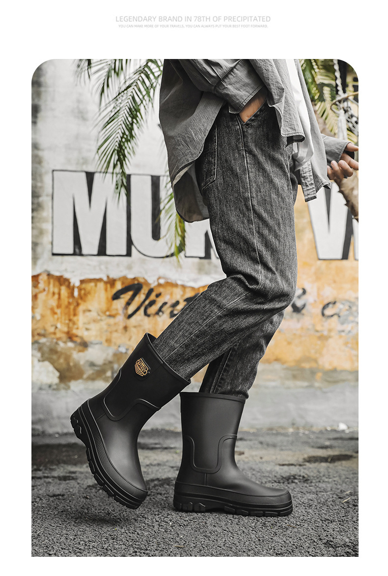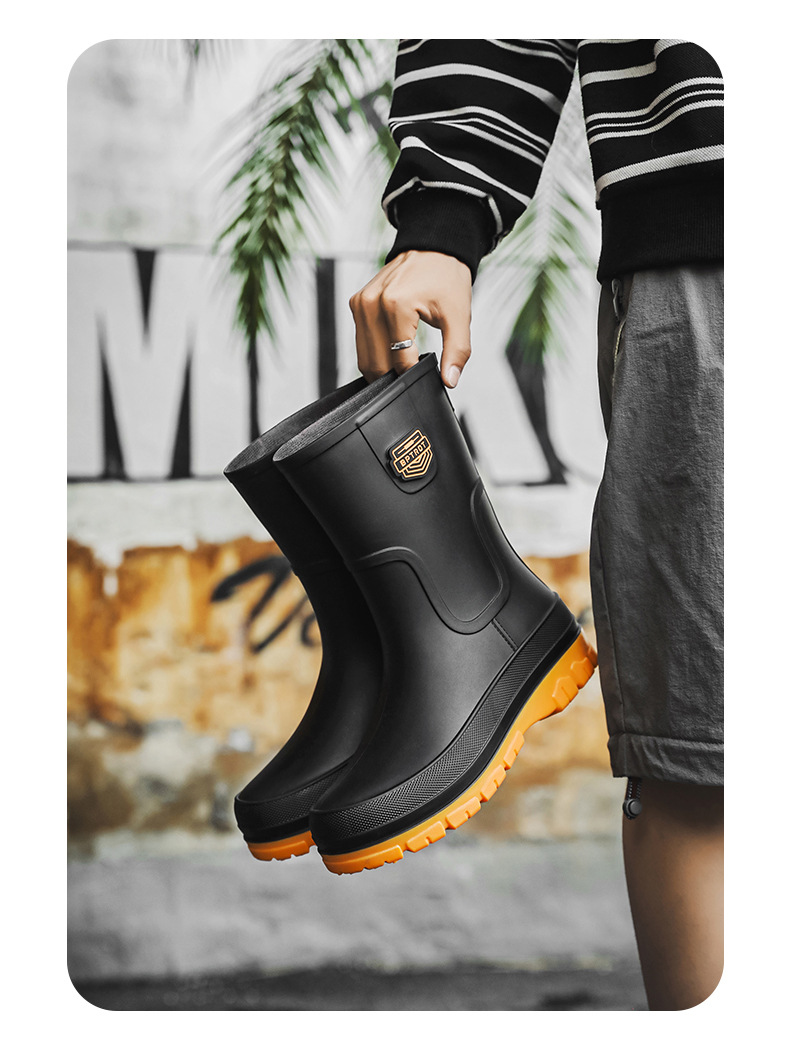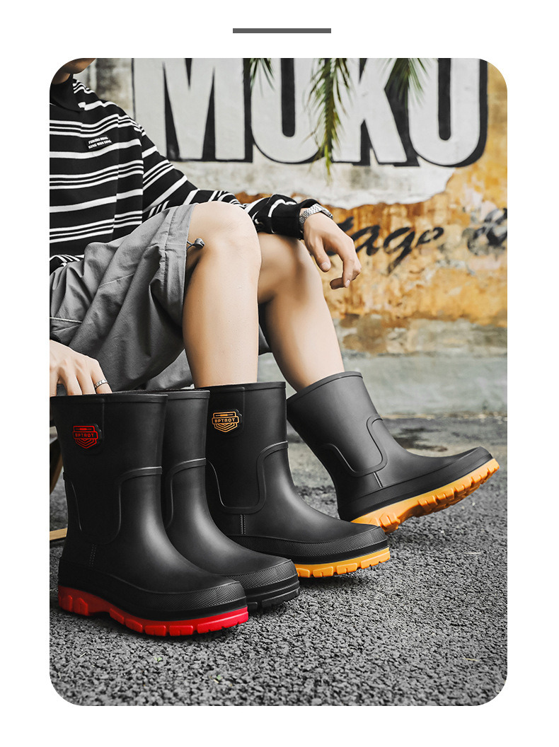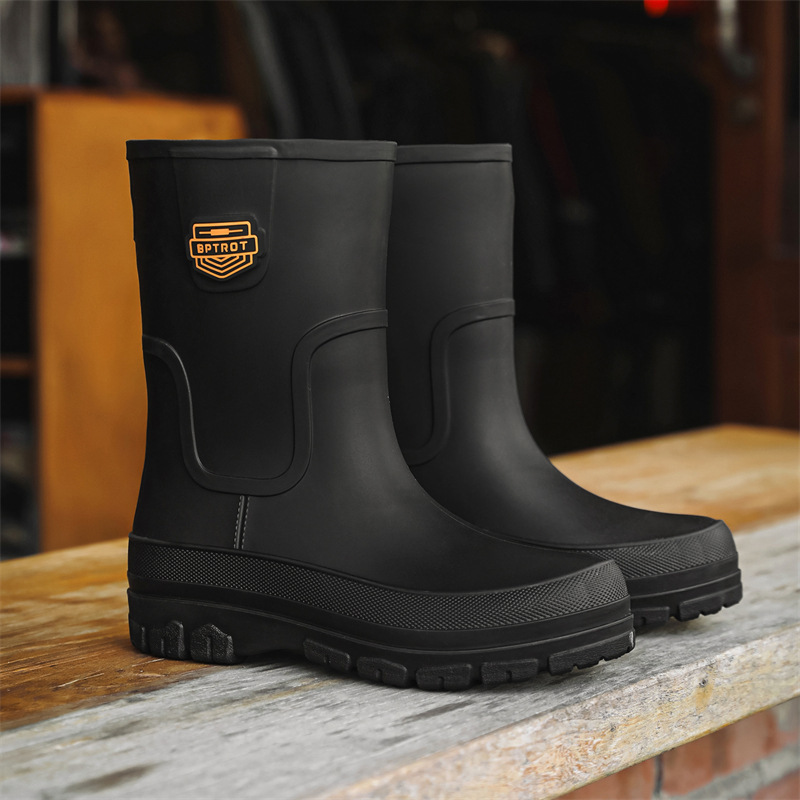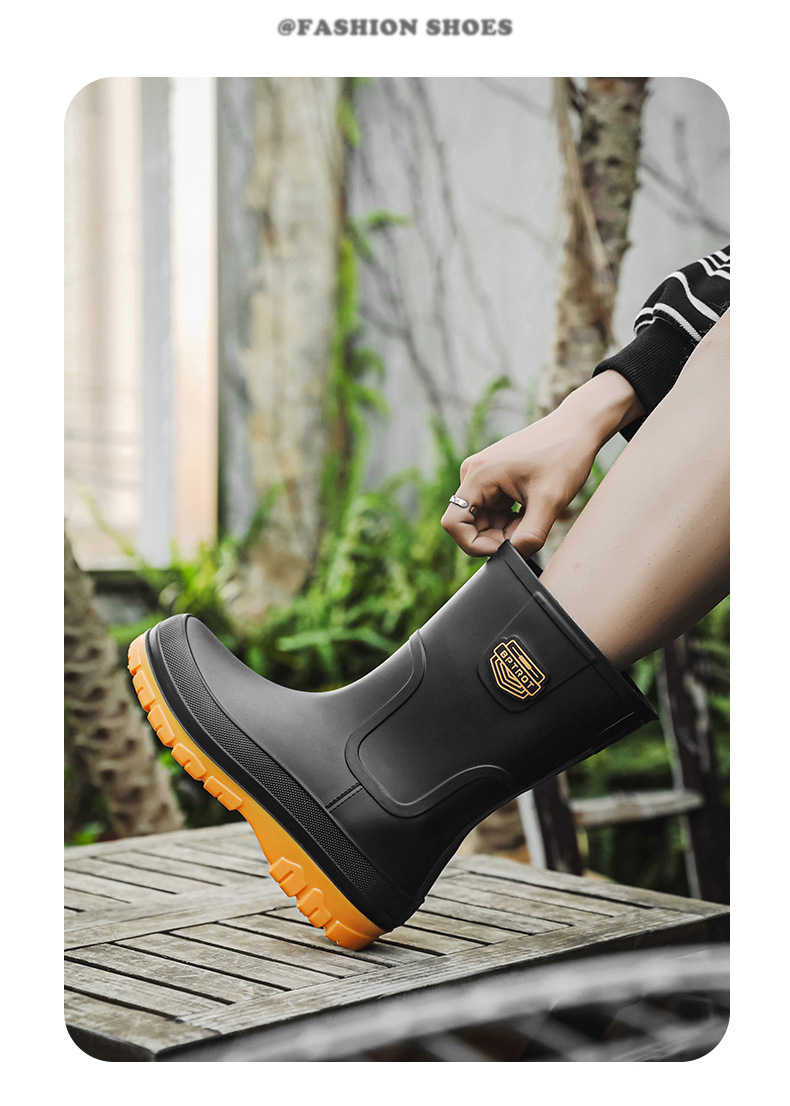남성용 크로스보더 패션 미드튜브 레인부츠, 두꺼운 밑창 아우터, 다용도 낚시화, 미끄럼 방지 주방 고무신, 남성용 방수 세차화스토어 가기