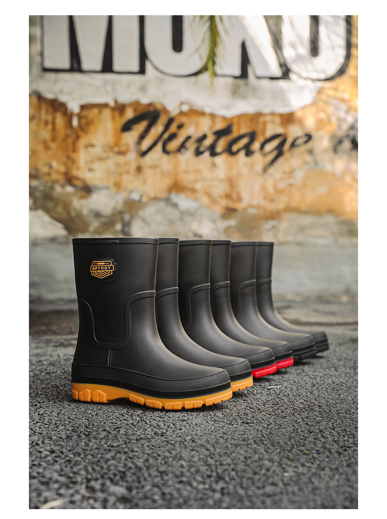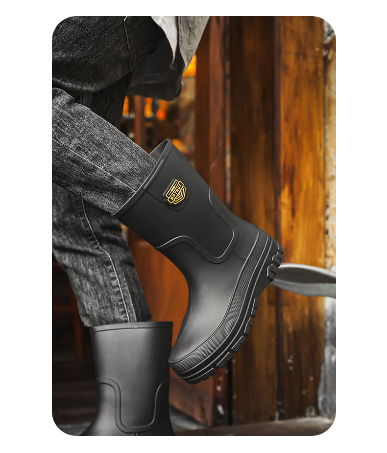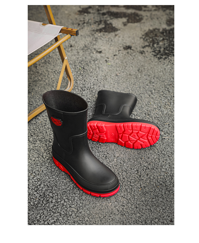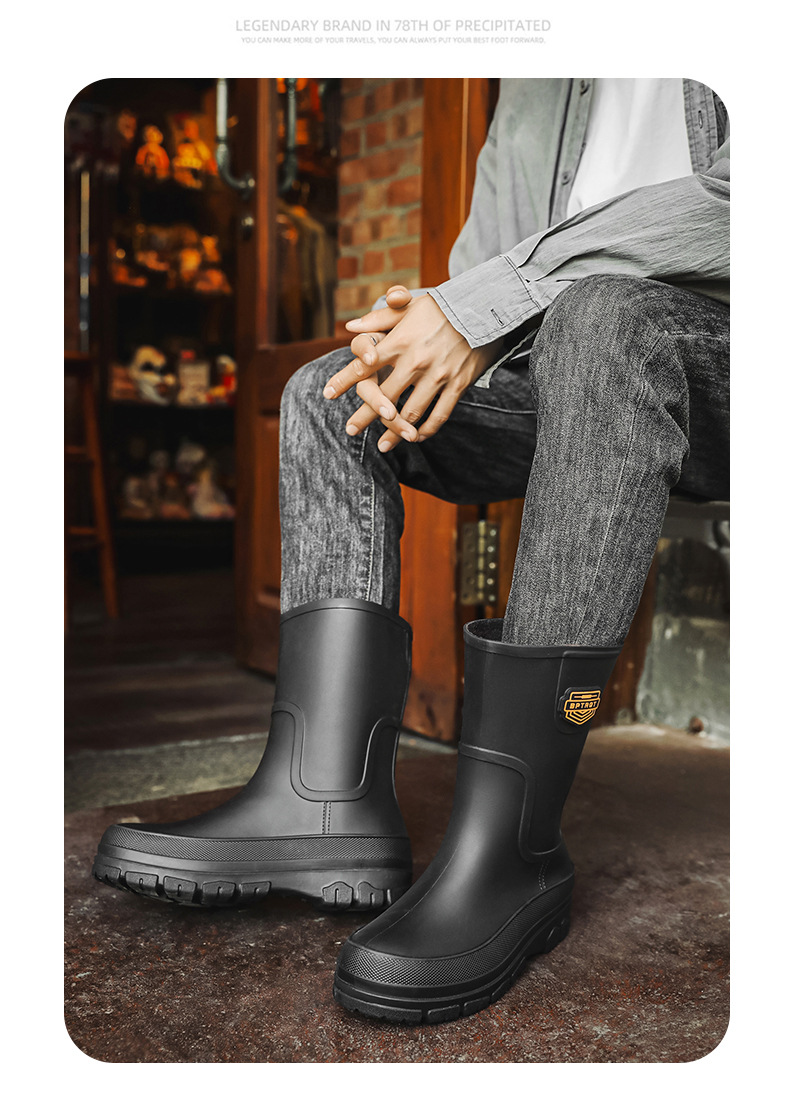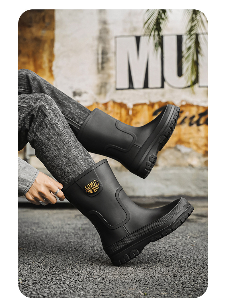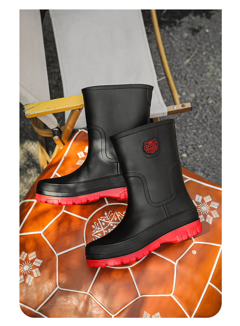 남성용 크로스보더 패션 미드튜브 레인부츠, 두꺼운 밑창 아우터, 다용도 낚시화, 미끄럼 방지 주방 고무신, 남성용 방수 세차화스토어 가기