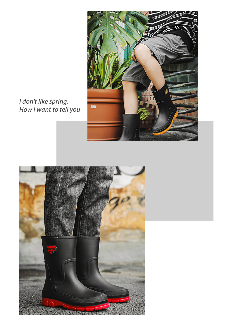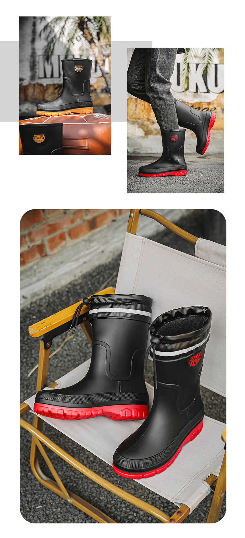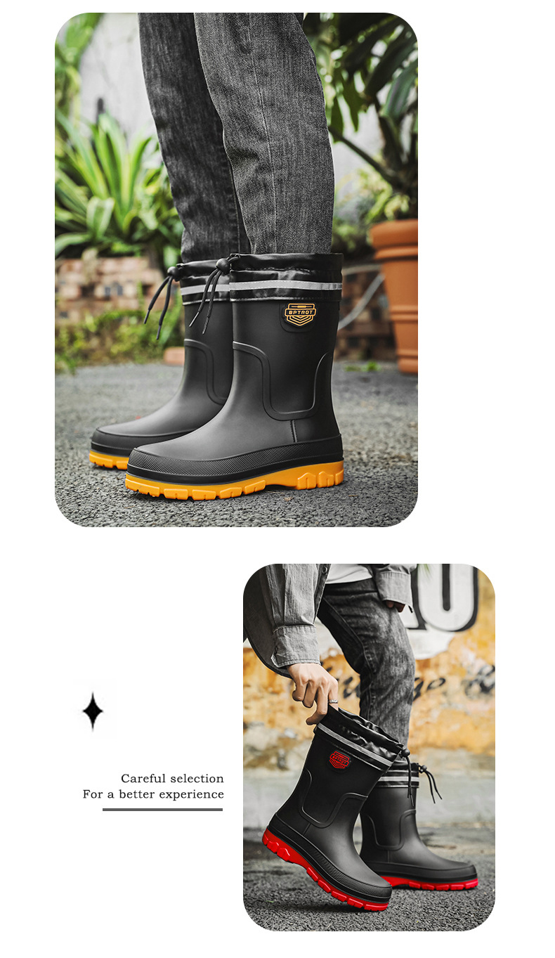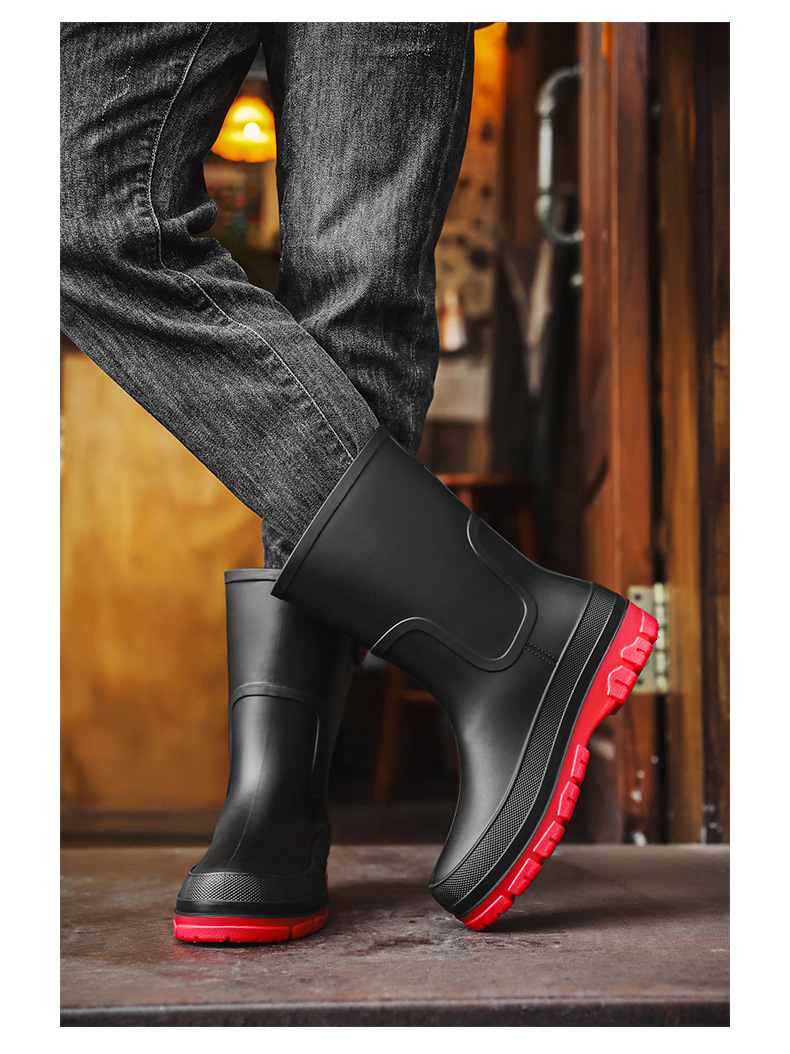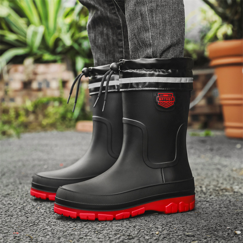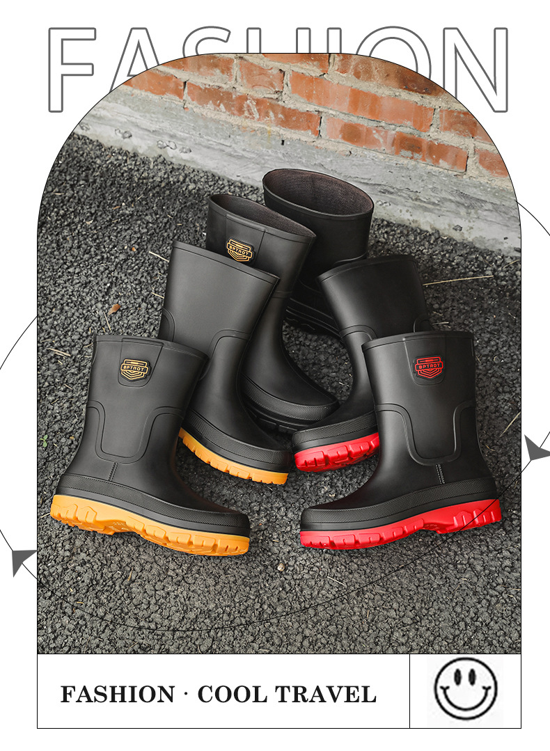 남성용 크로스보더 패션 미드튜브 레인부츠, 두꺼운 밑창 아우터, 다용도 낚시화, 미끄럼 방지 주방 고무신, 남성용 방수 세차화스토어 가기