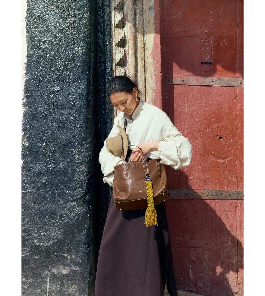 循迹系列山下有见物旅行包植鞣牛皮电脑包通勤单肩托特包李娜同款