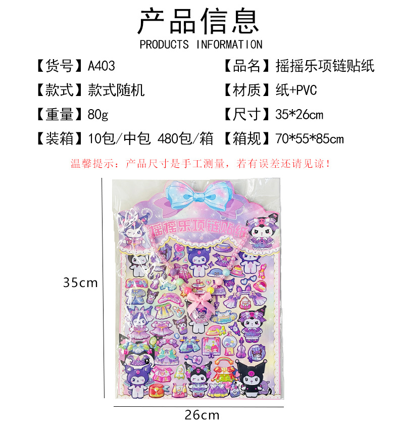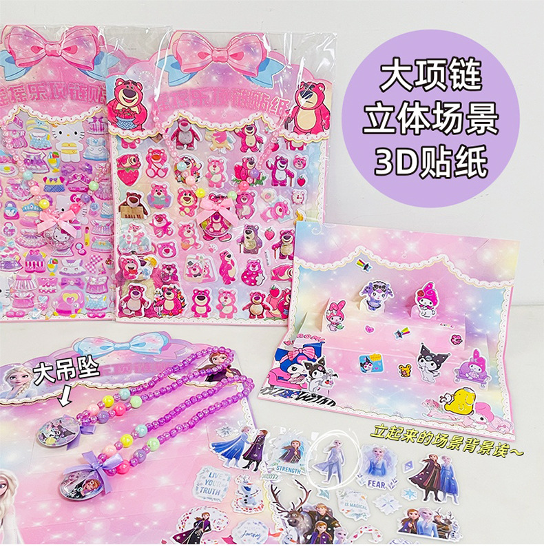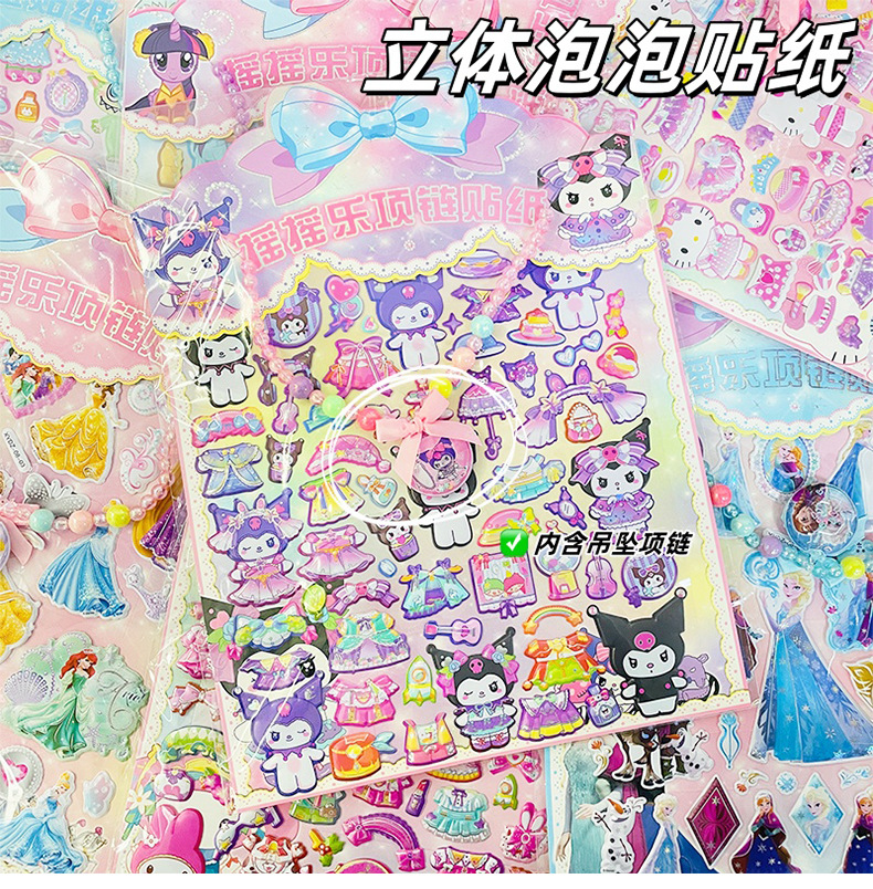 흔들 목걸이 스티커 어린이 원피스 업 원피스 스티커 교육 착용 보너스 스티커 공주 옷장 거품 스티커스토어 가기