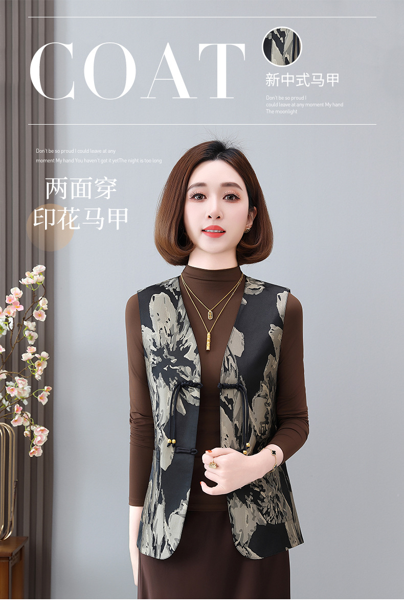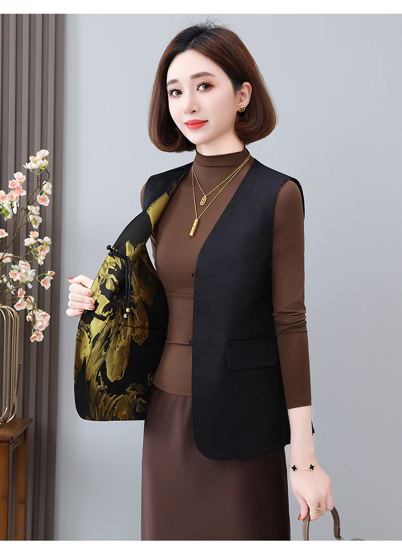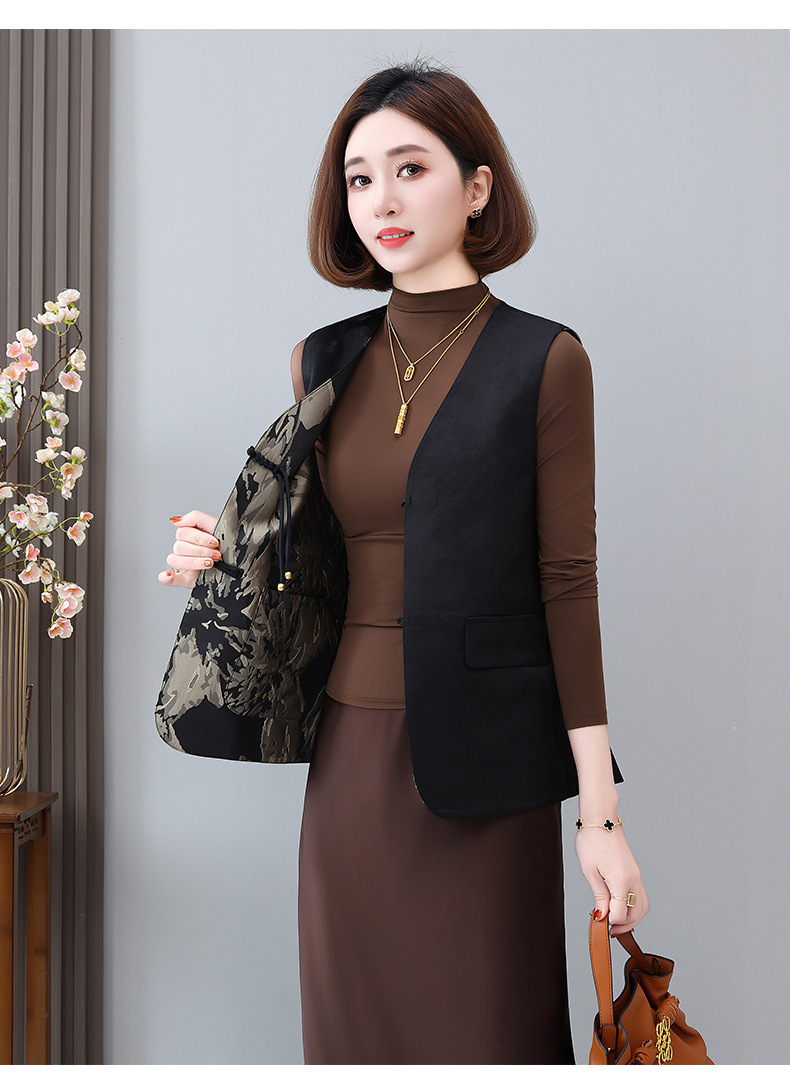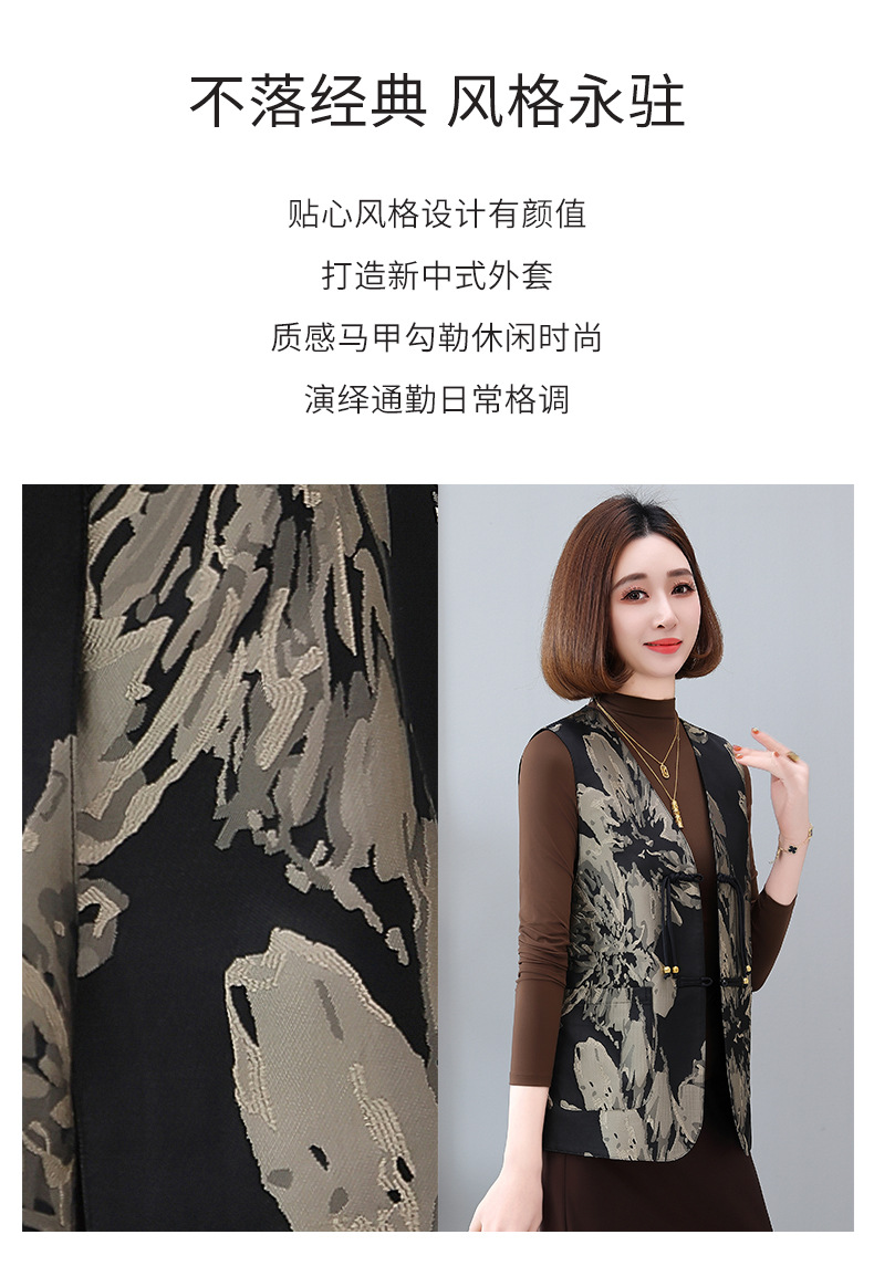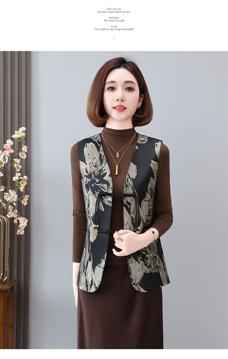 새로운 중국 스타일 국가 스타일 조끼 여성의 하이 엔드 봄과 가을 인쇄 바느질 휴가 어깨 빈티지 버클 술 콜라리스 여성 조끼스토어 가기