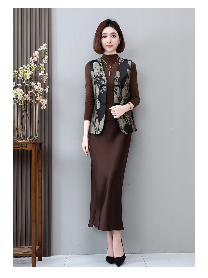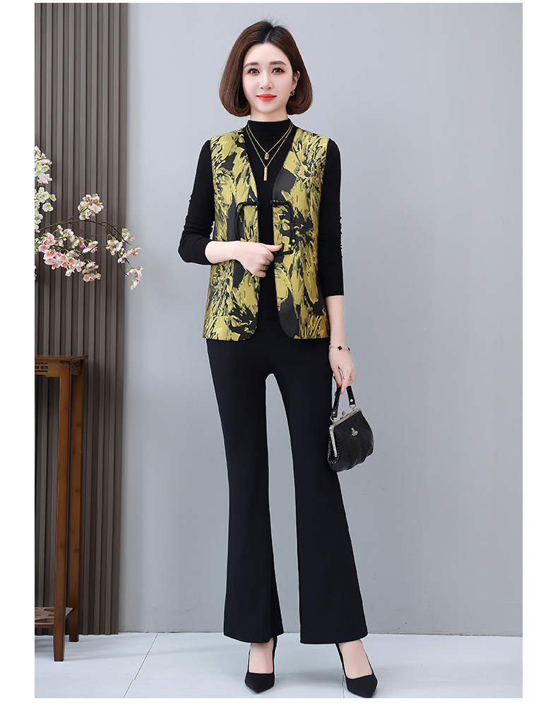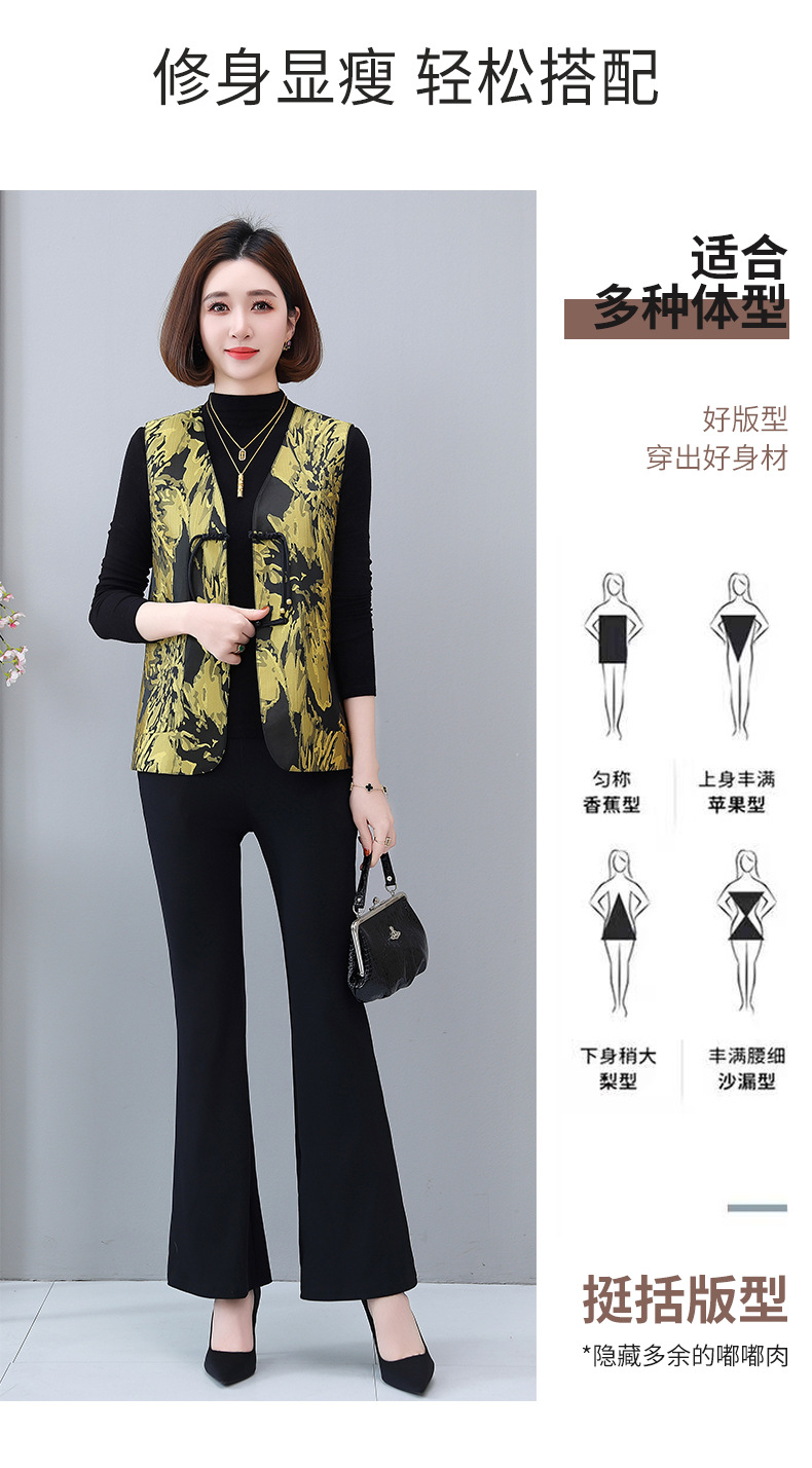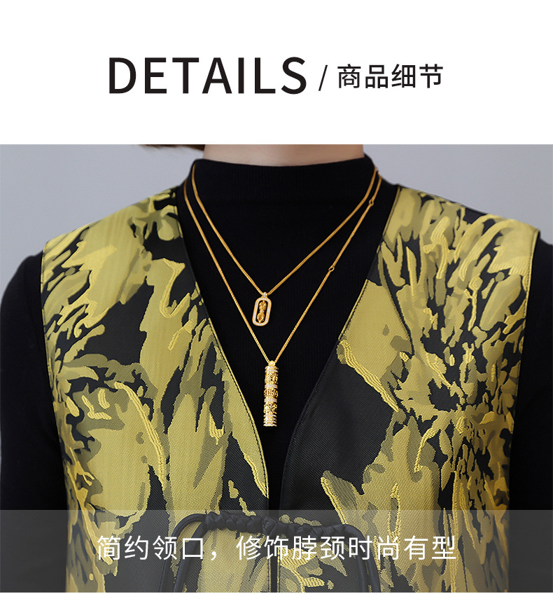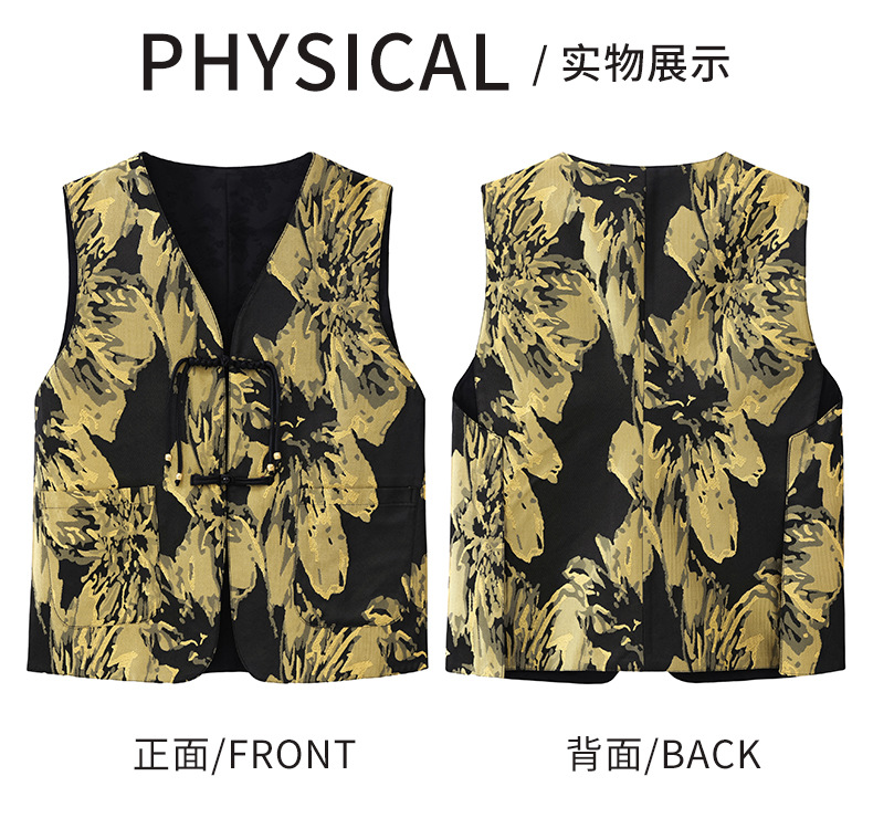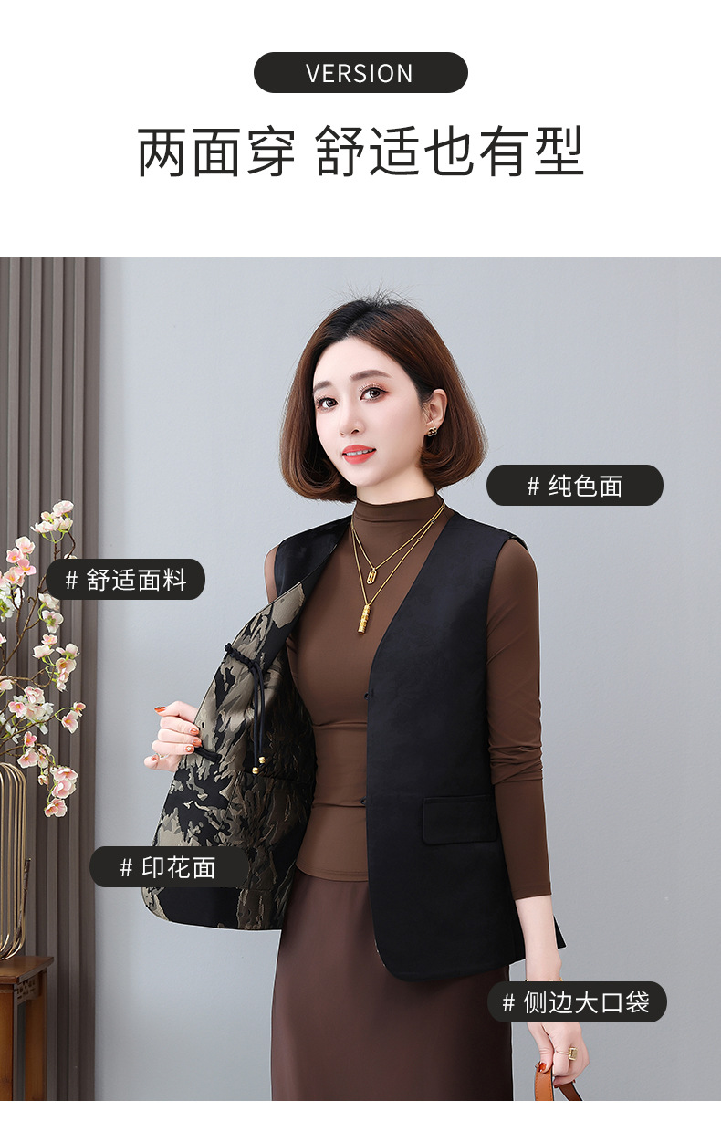새로운 중국 스타일 국가 스타일 조끼 여성의 하이 엔드 봄과 가을 인쇄 바느질 휴가 어깨 빈티지 버클 술 콜라리스 여성 조끼스토어 가기