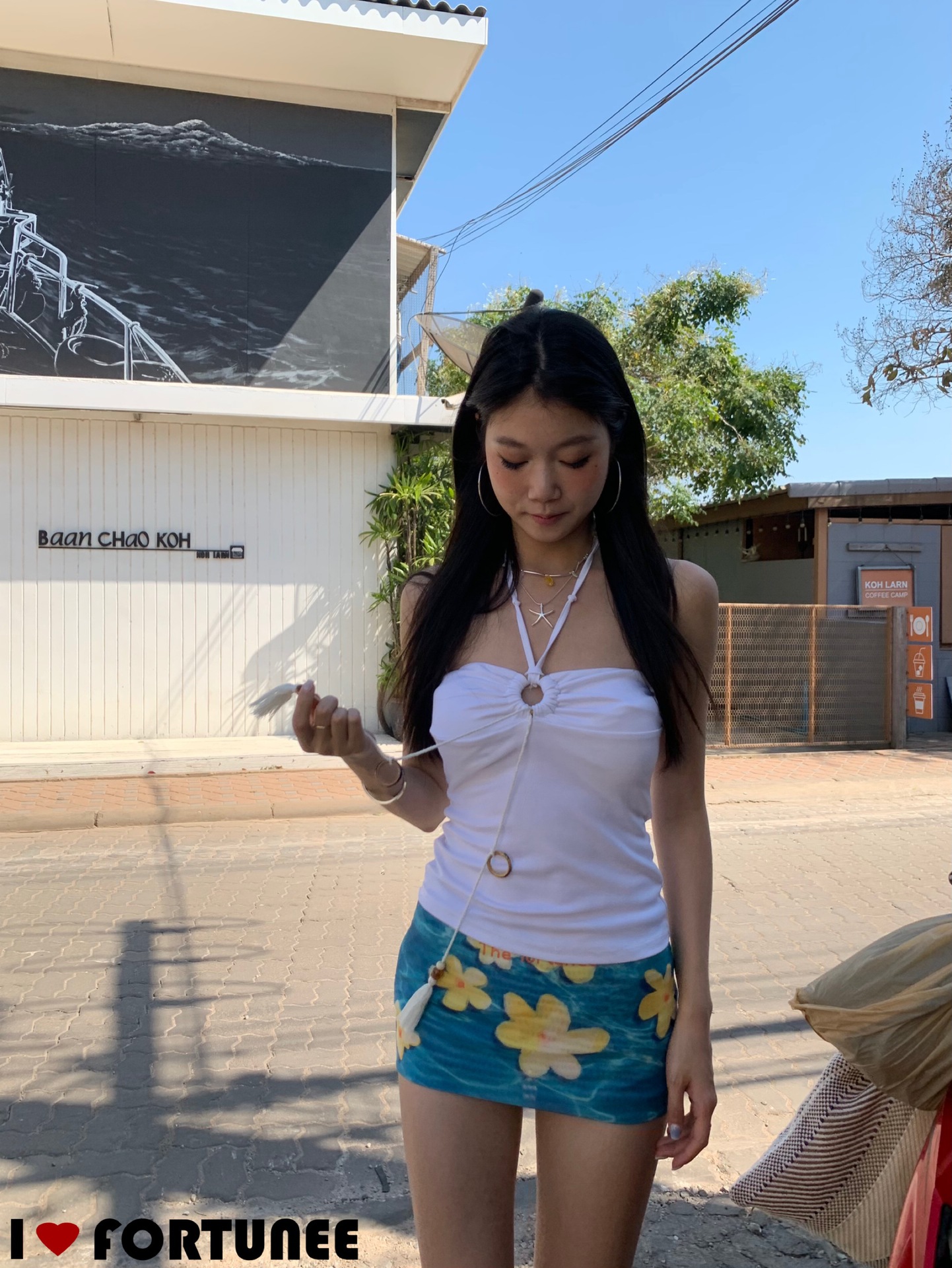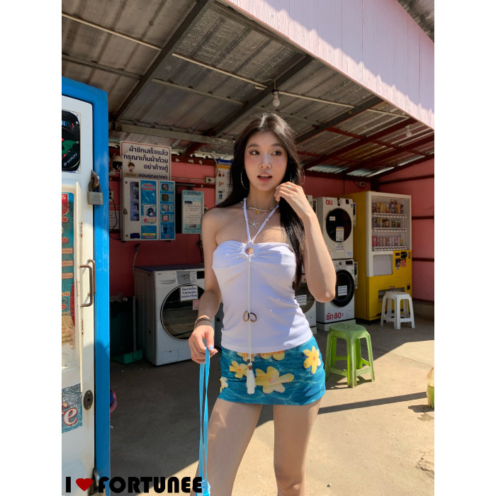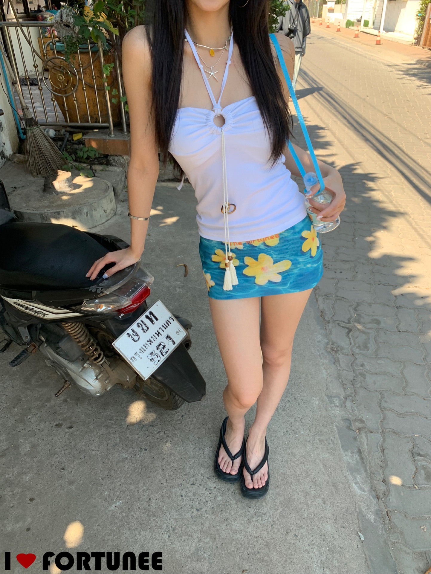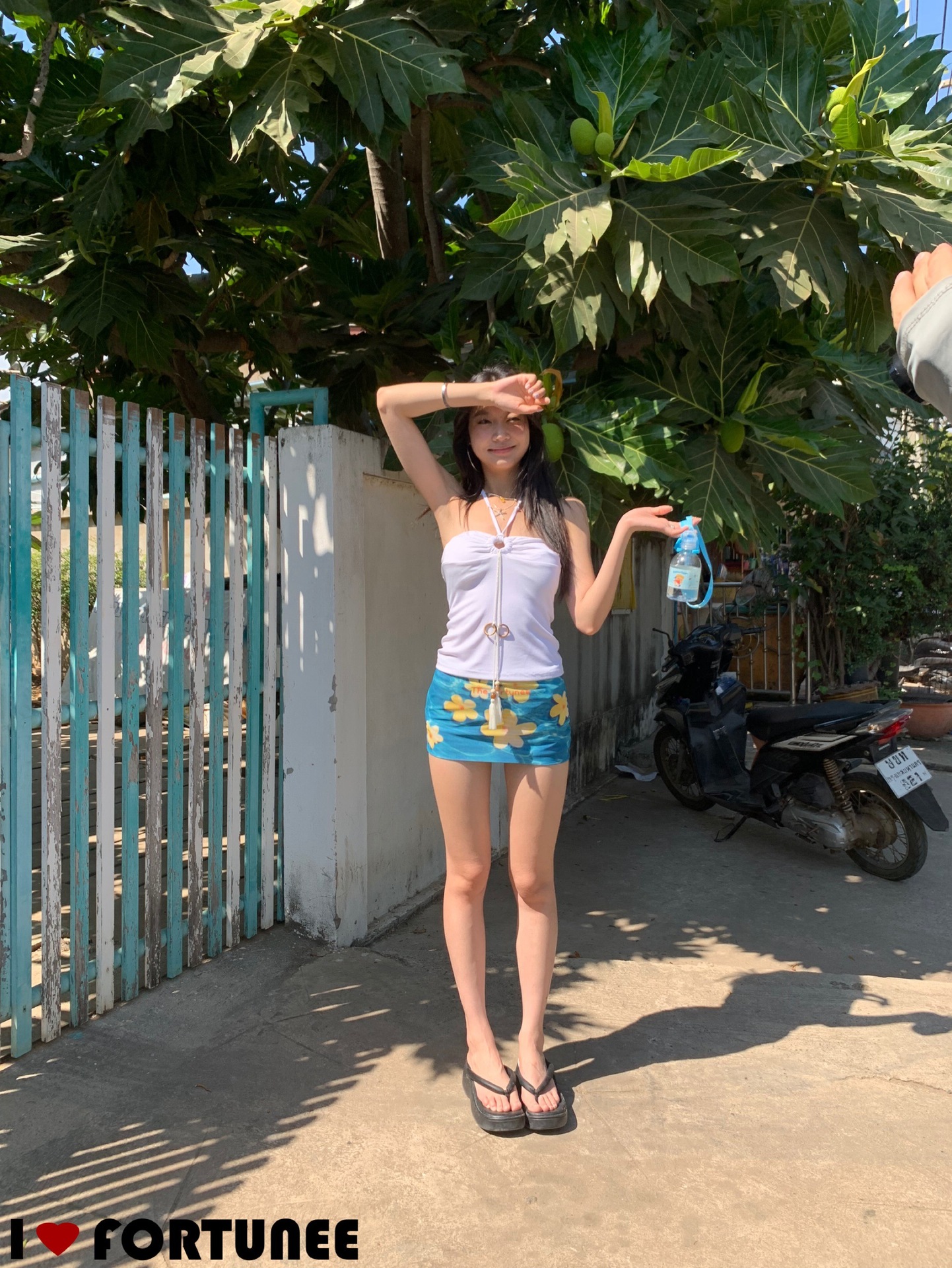 여름 방학 손으로 그린 계란 꽃 메쉬 짧은 치마 여성 낮은 허리 엉덩이 짧은 치마스토어 가기