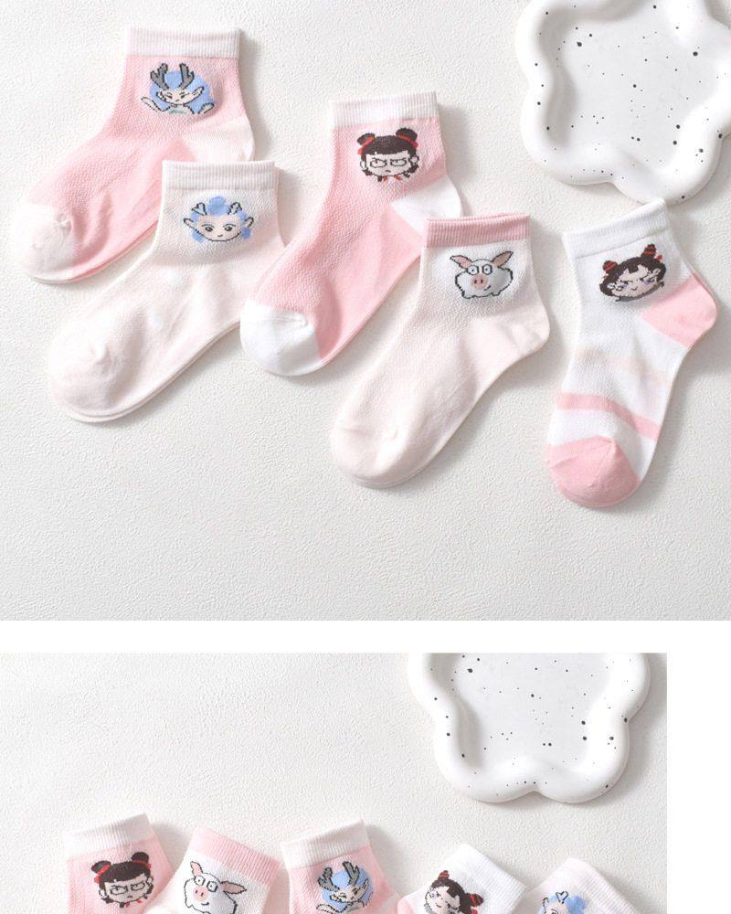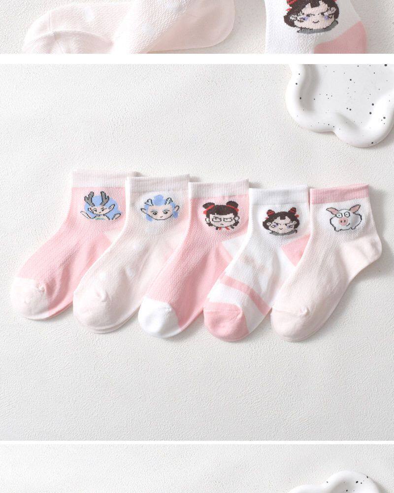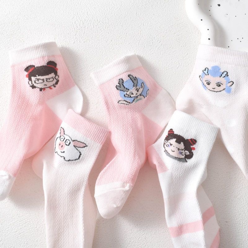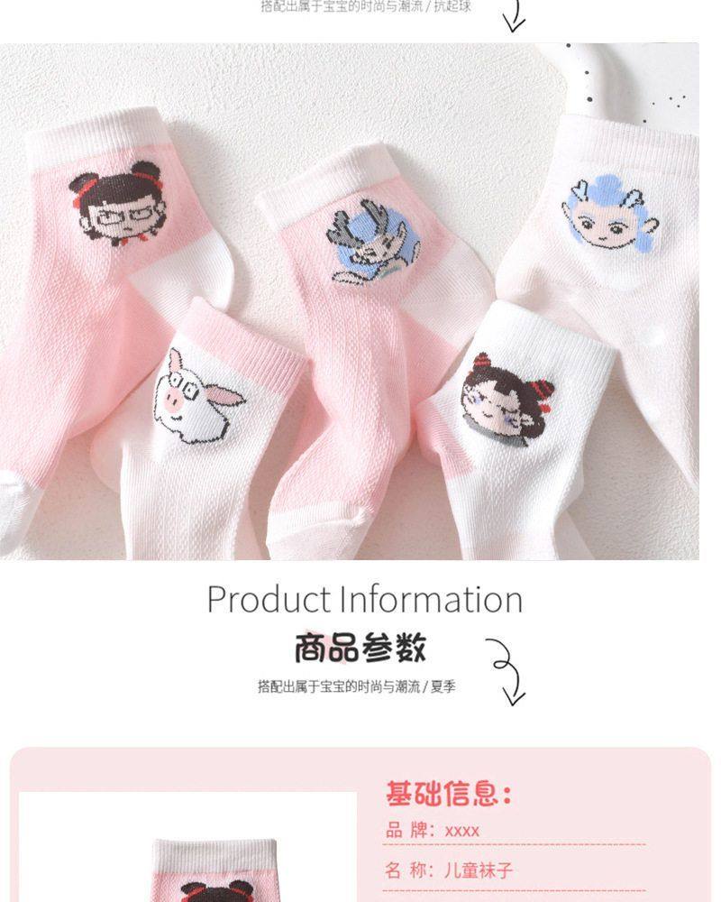 Nezha 양말 소녀 봄과 여름 얇은 튜브 귀여운 학생 아기 소년 통기성 메쉬 핑크 2025 새로운스토어 가기