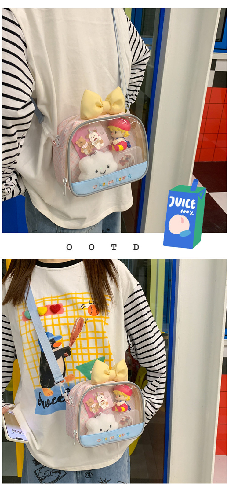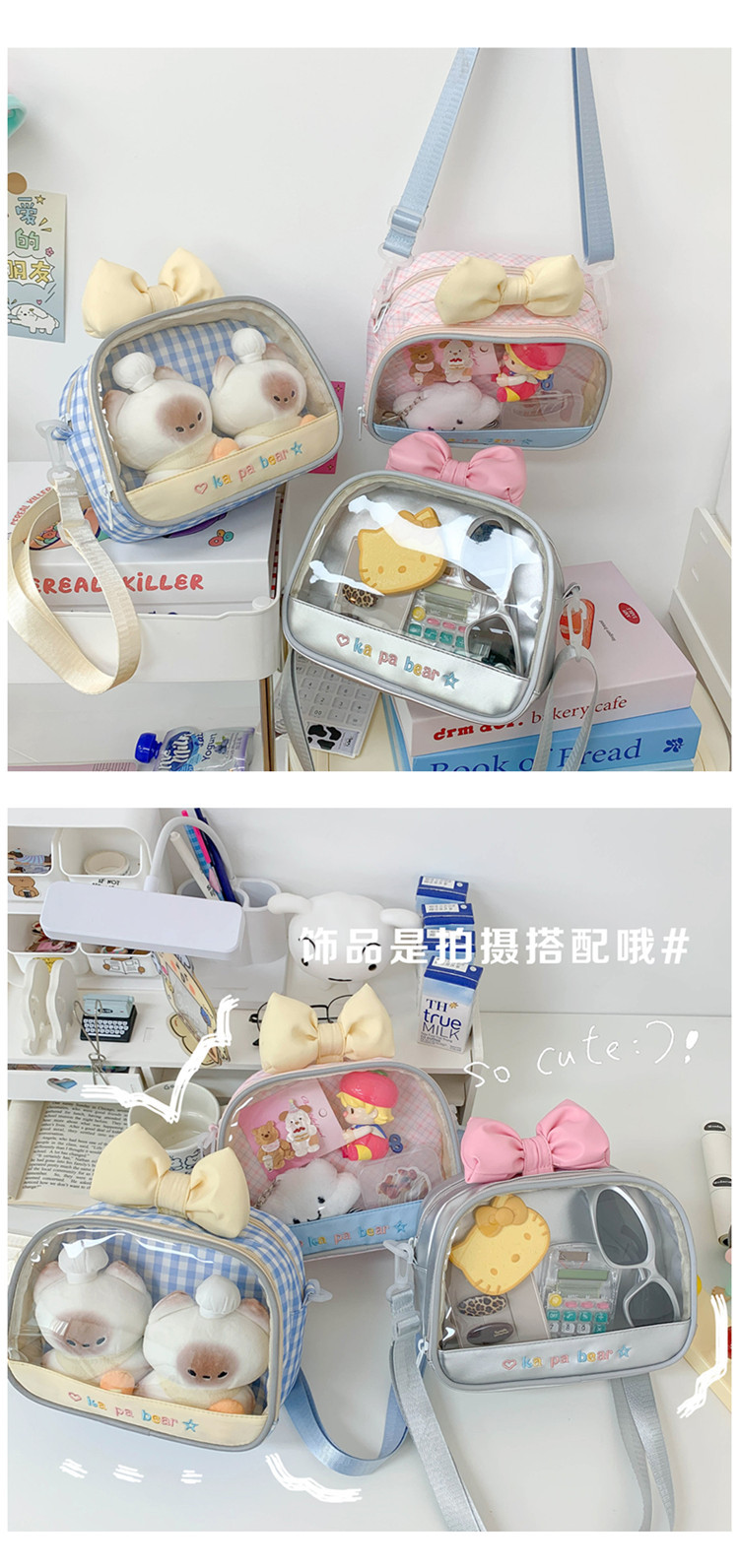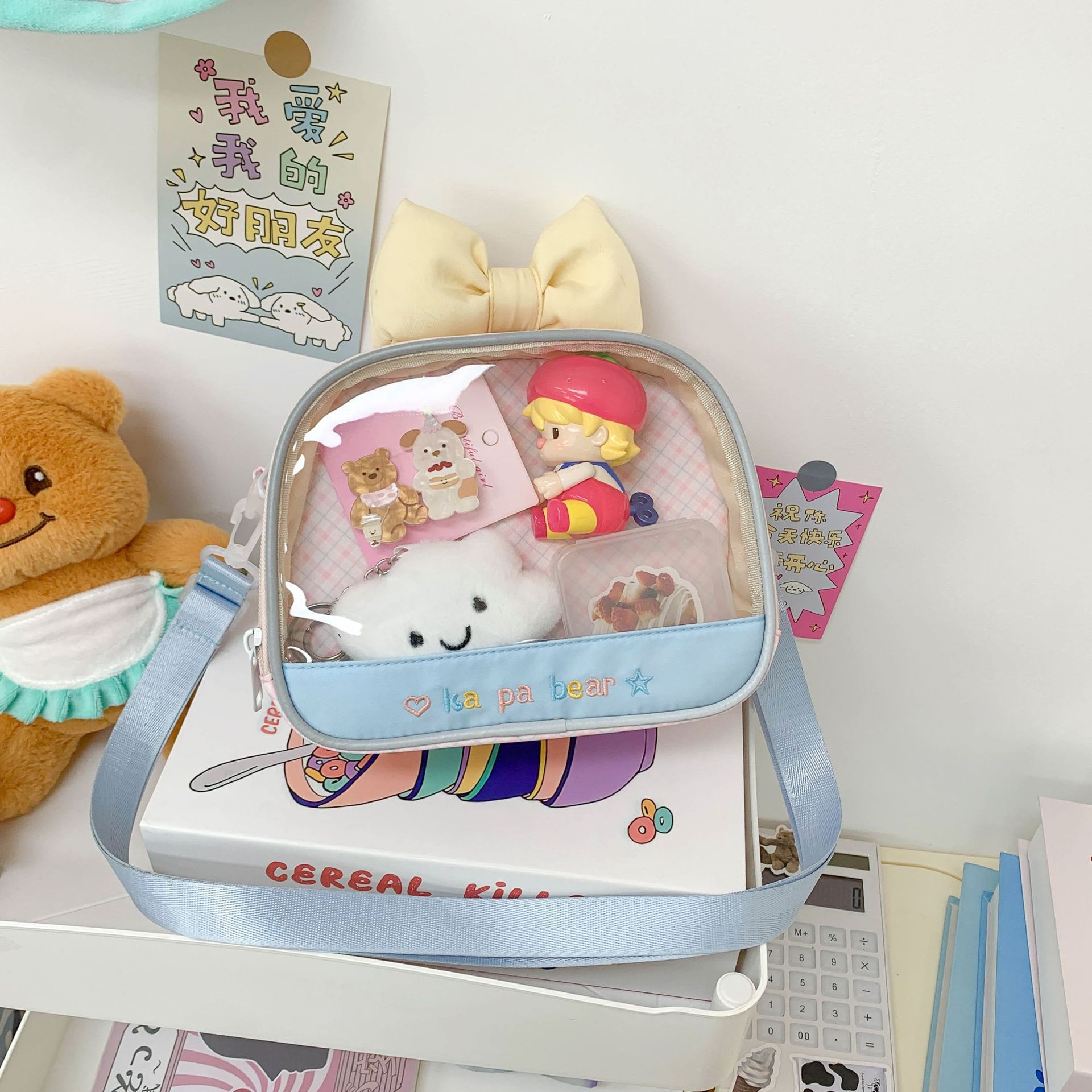 마카롱 만화 작은 음식 수량 2 차원 귀여운 크로스 바디 가방 투명 하이 엔드 어깨 가방 여행 만화 가방스토어 가기