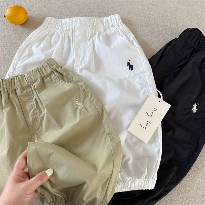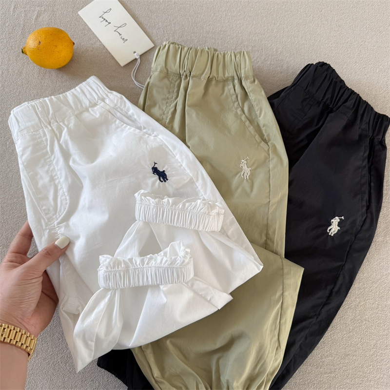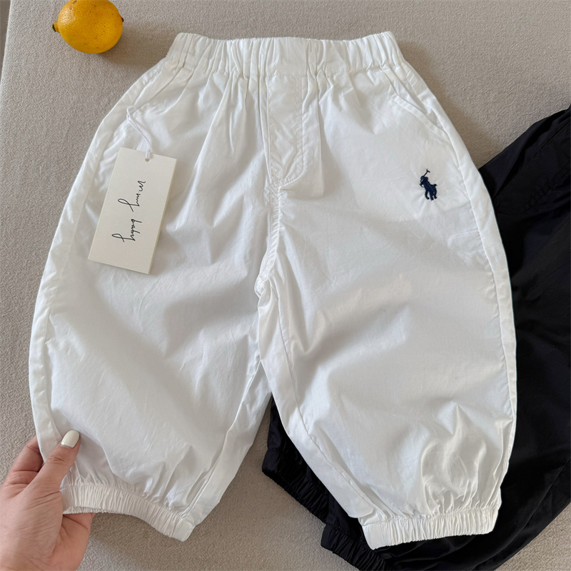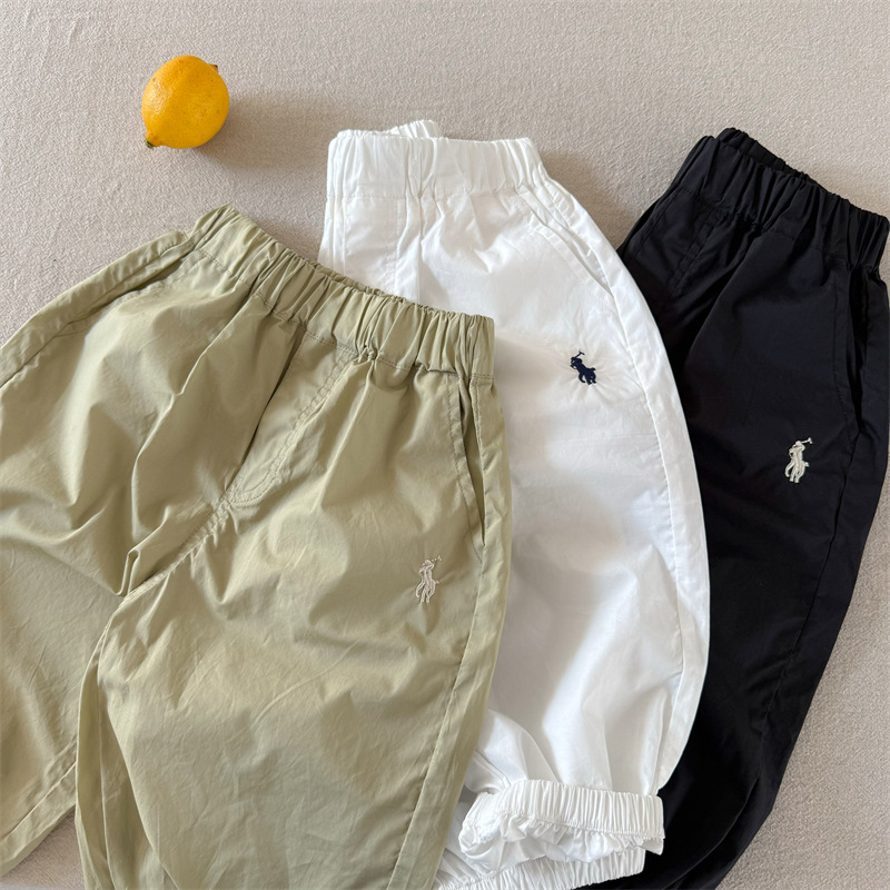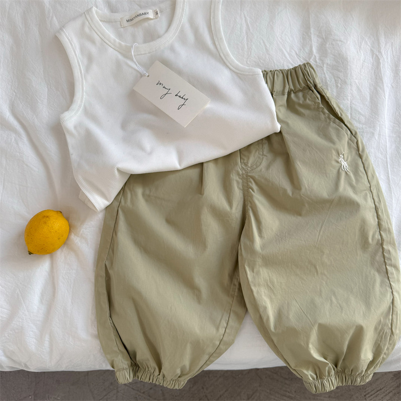 어린이 모기 방지 바지 2025 여름 한국 새 소년과 소녀 솔리드 컬러 자수 캐주얼 바지 아기의 올 매치 발목 바지