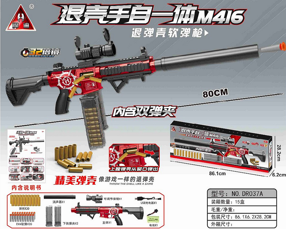한디 전동 연사 탄피 배출 M416 소프트 탄환총 나일론 발사 가능 장난감 총 소년용 치킨 게임용 소총 M4A1