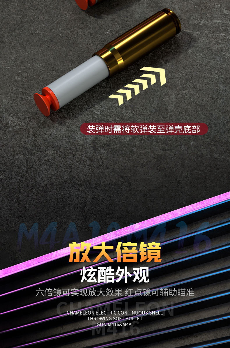 한디 전동 연사 탄피 배출 M416 소프트 탄환총 나일론 발사 가능 장난감 총 소년용 치킨 게임용 소총 M4A1스토어 가기