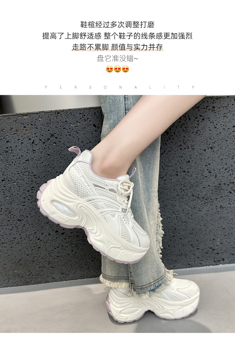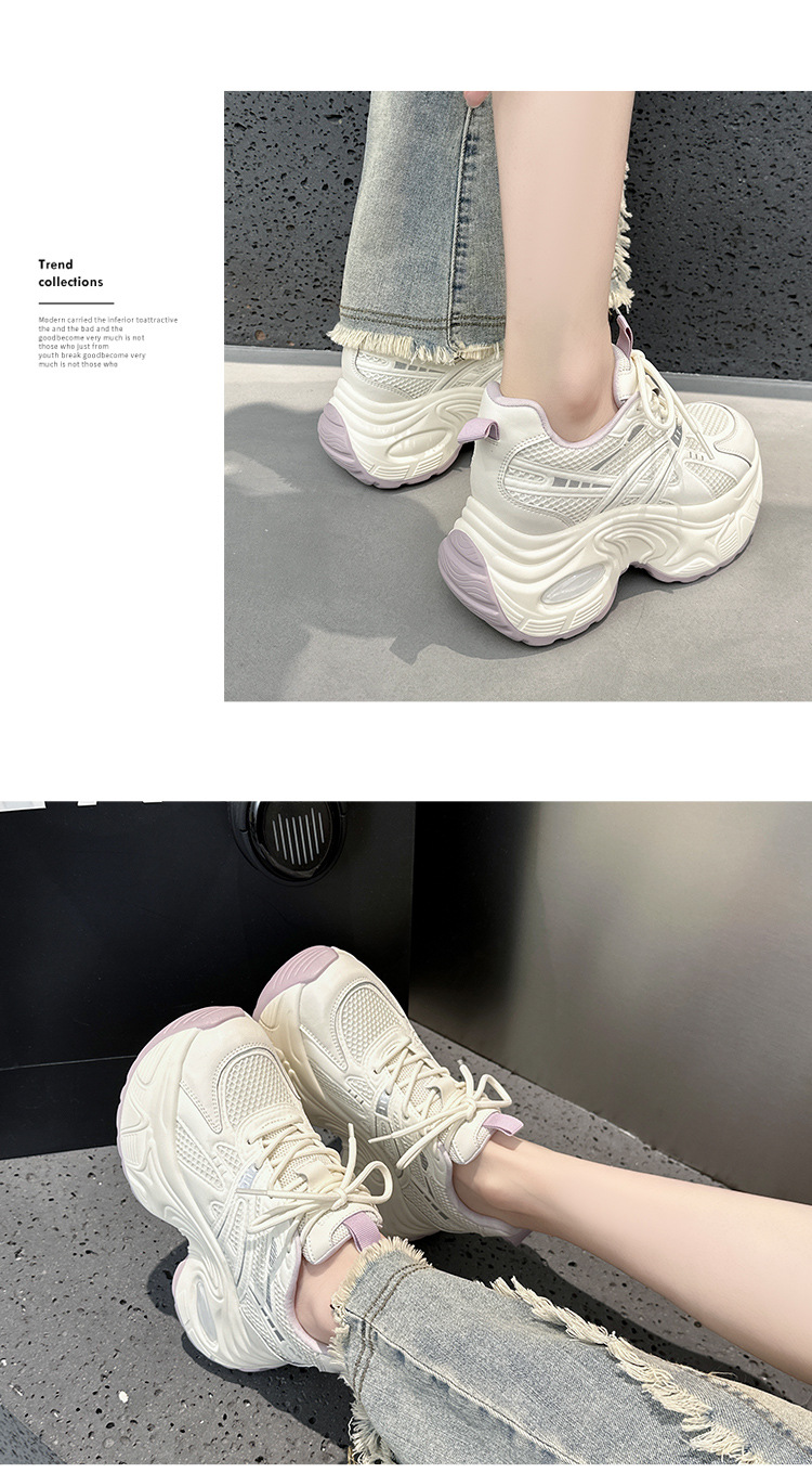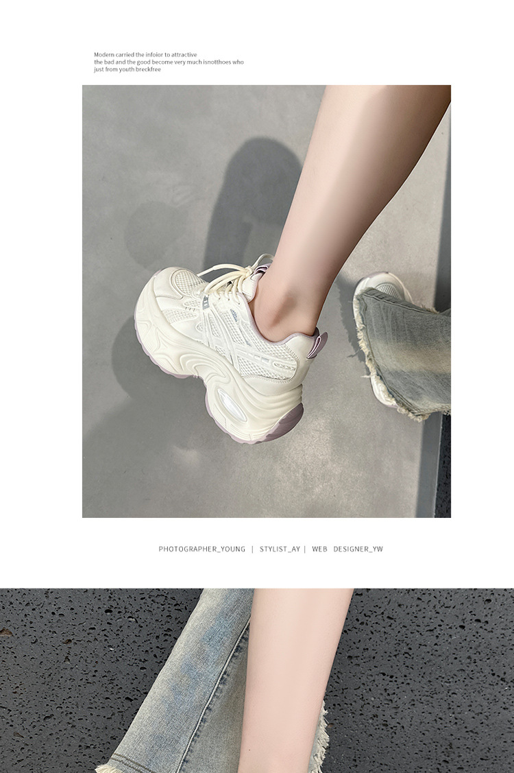 2025 여름 신상품 여성용 천연 가죽 내부 강화 아빠 신발, 여성용 야외 캐주얼 다용도 두꺼운 밑창 운동화