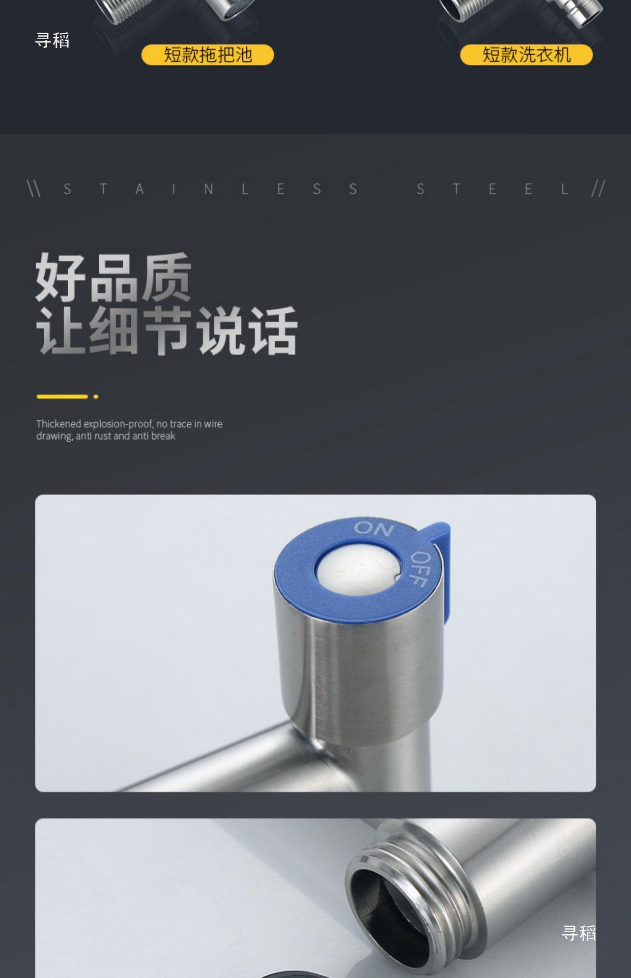 • 짧은 304 스테인레스 스틸 세탁기 수도꼭지 - 자동 물 차단