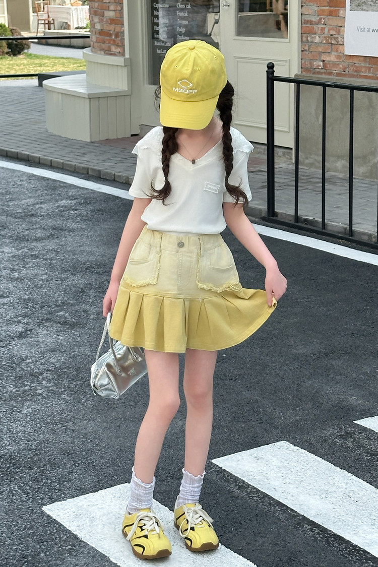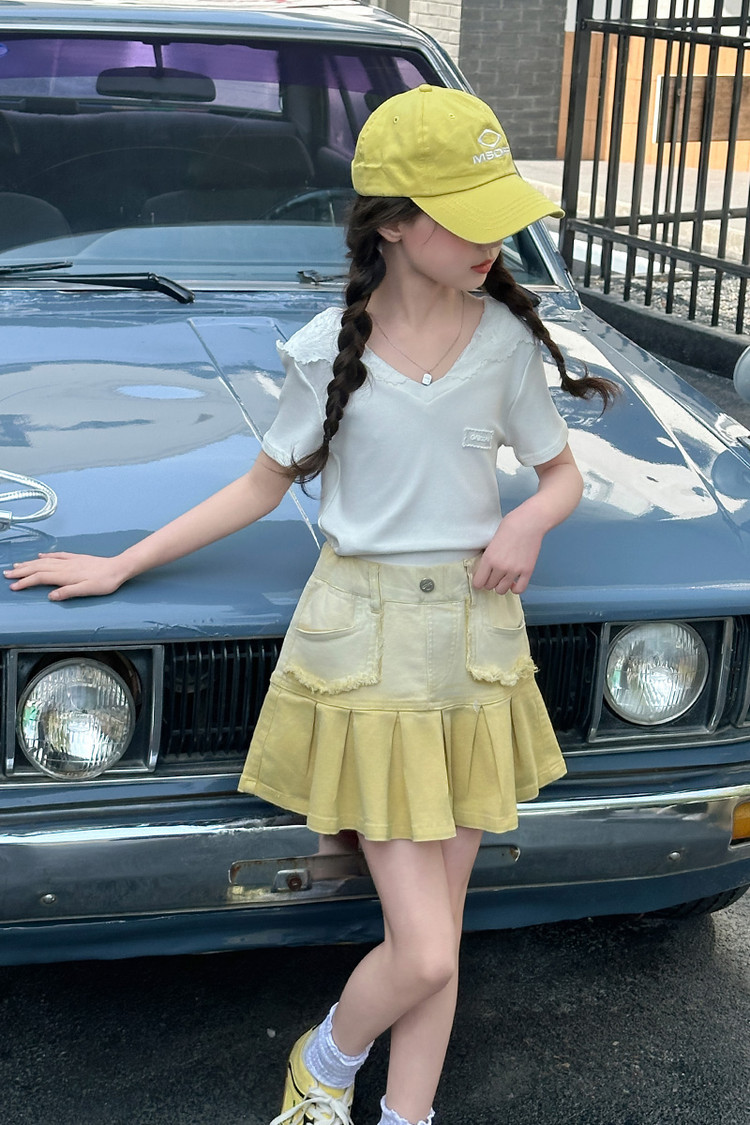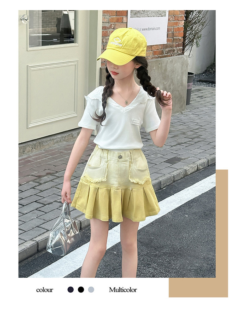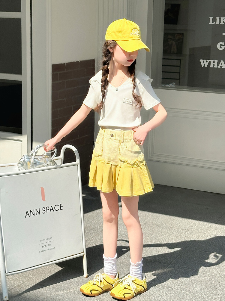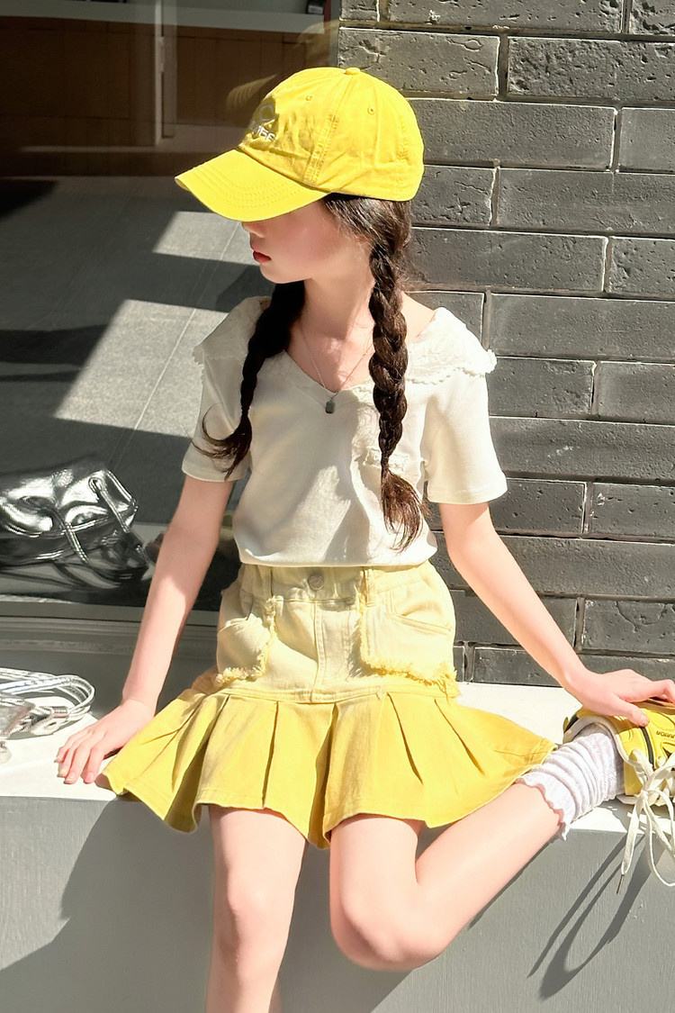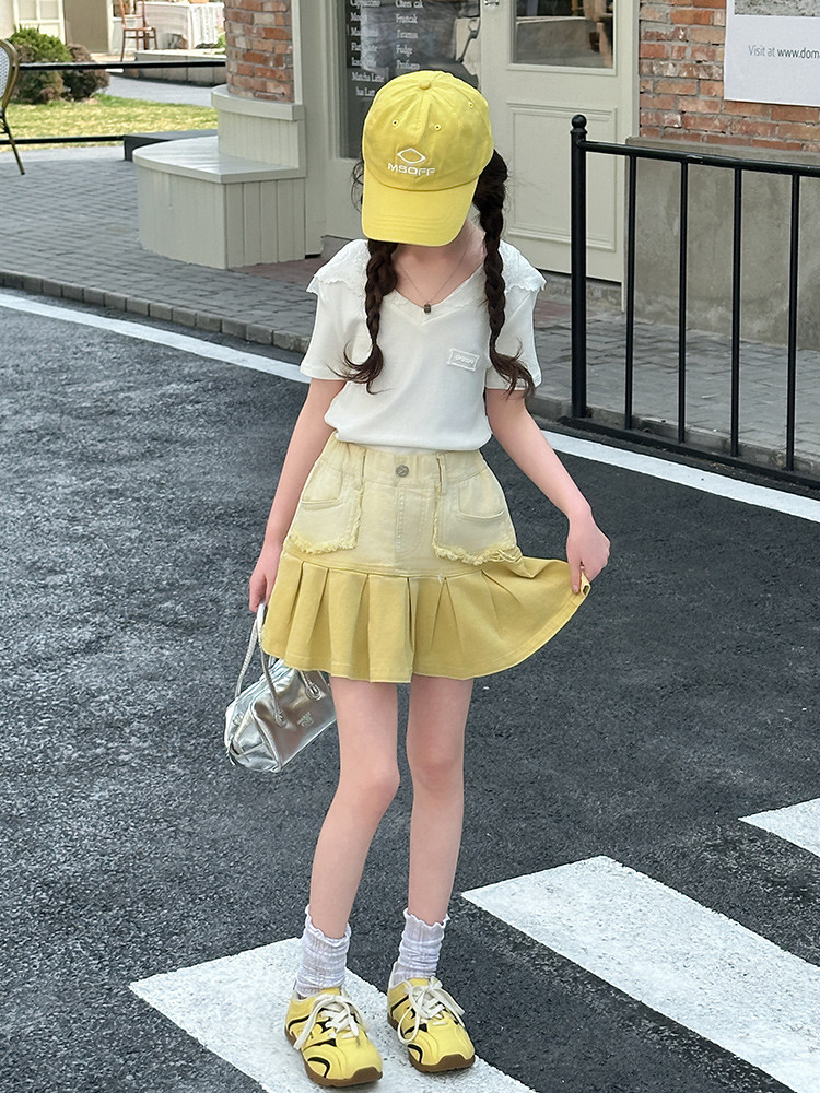 여자 여름 한국 스타일 레이스 후드 반팔 티셔츠 원피스 원피스 여성 빅 어린이 여름 원피스 짧은 치마 아동용 스커트 티셔츠