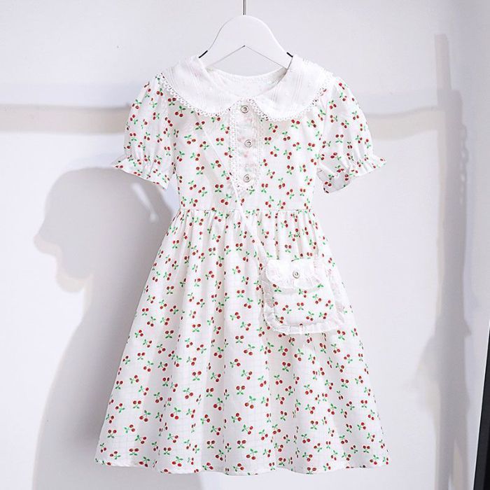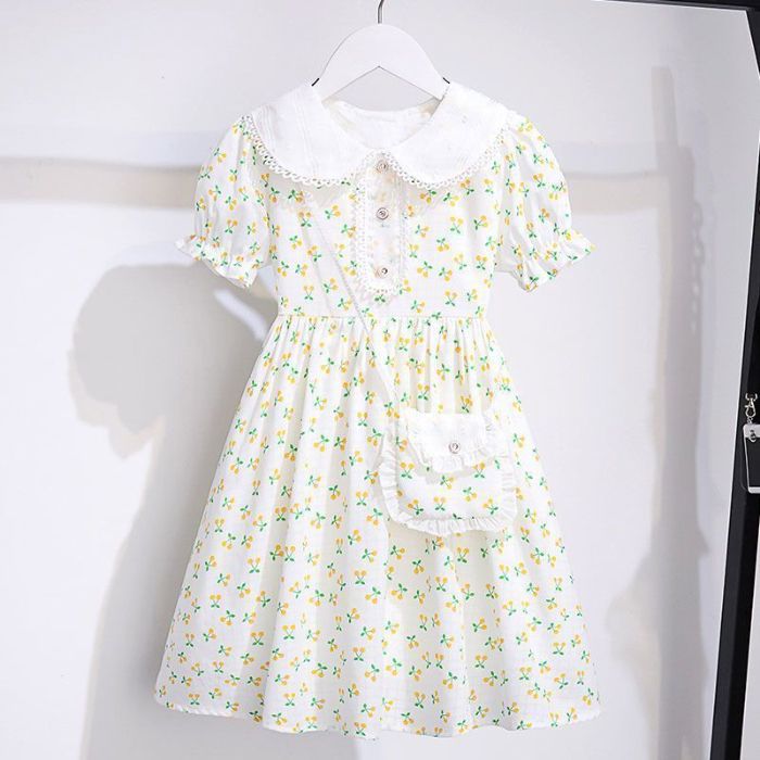 여자 여름 드레스 2025 새로운 유행 어린이 반팔 공주 드레스 여자 아름다운 꽃 드레스