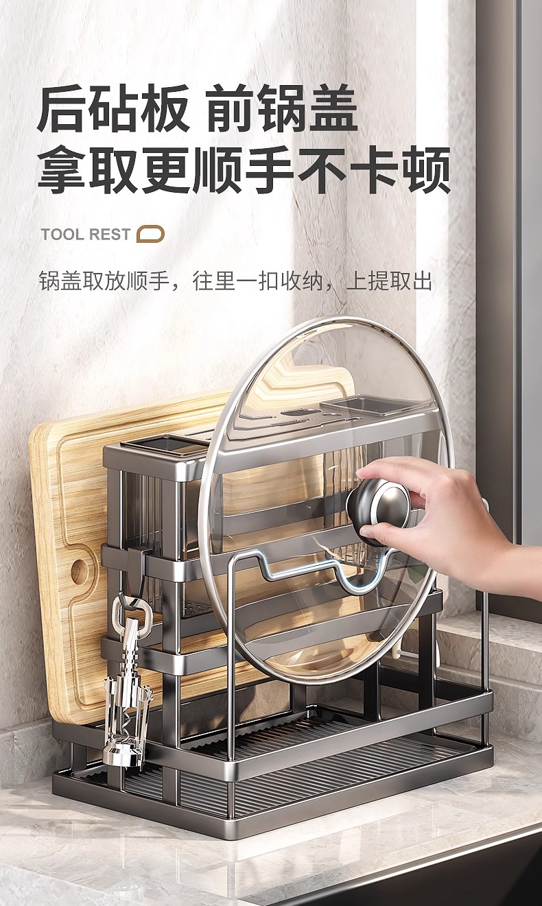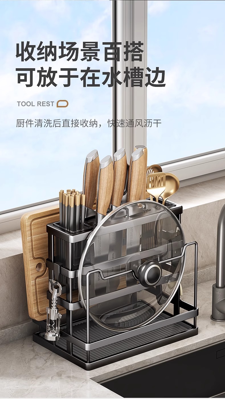 • 도마+냄비뚜껑 수납 [블랙] 더블젓가락통 칼꽂이
