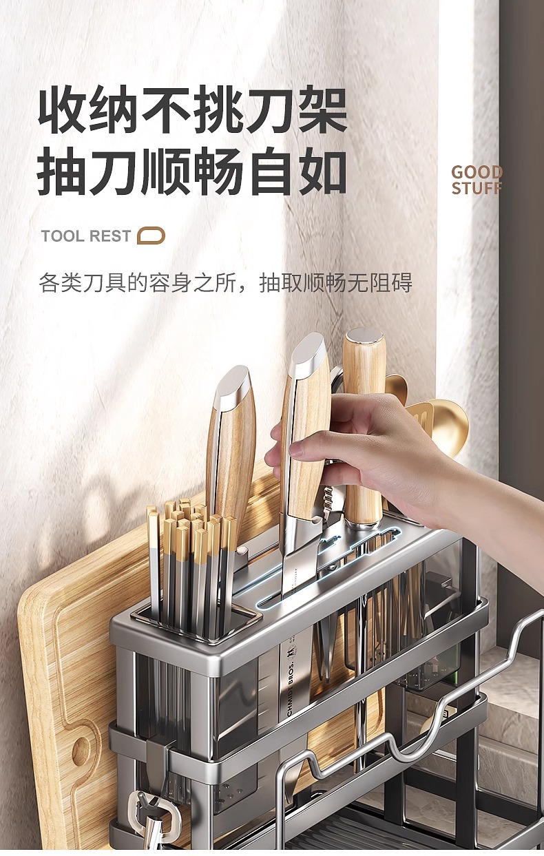 다기능 칼 도마 랙 도마 일체형 수납 랙 젓가락 식기 배수 랙 벽걸이 없는 데스크탑스토어 가기