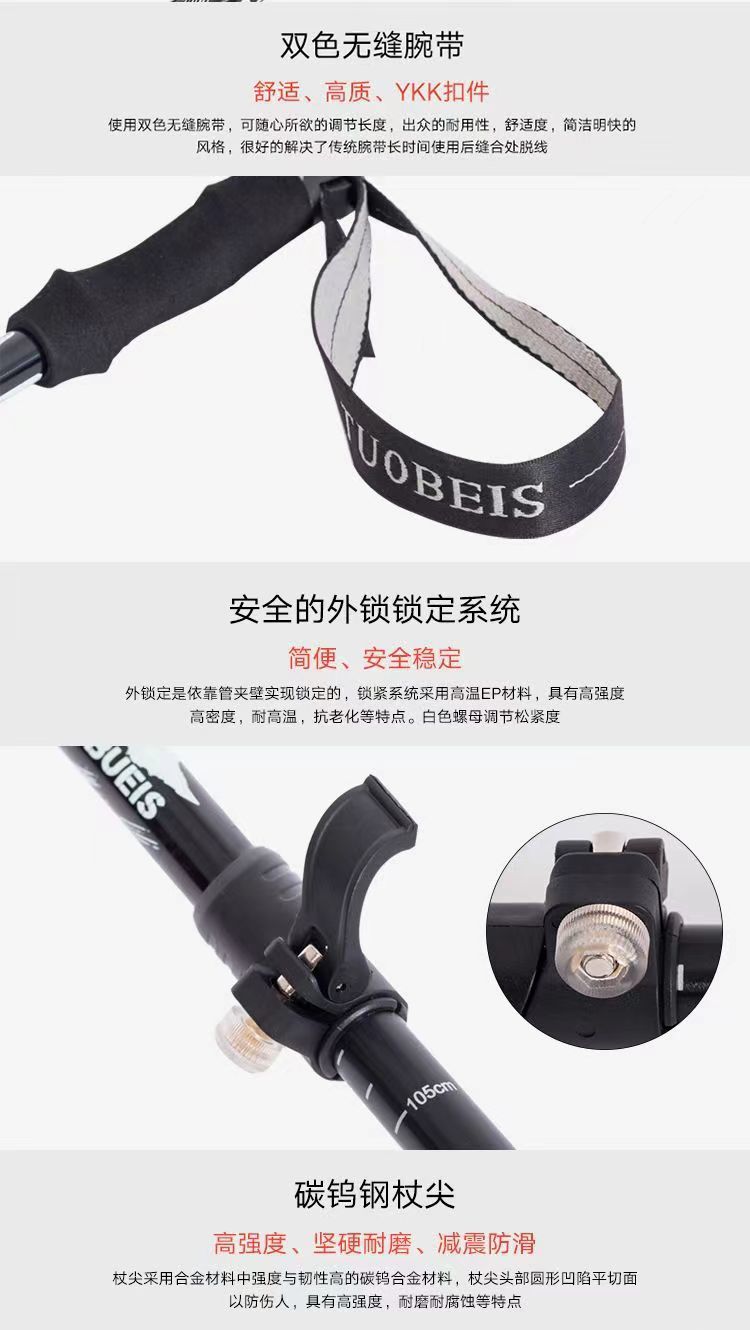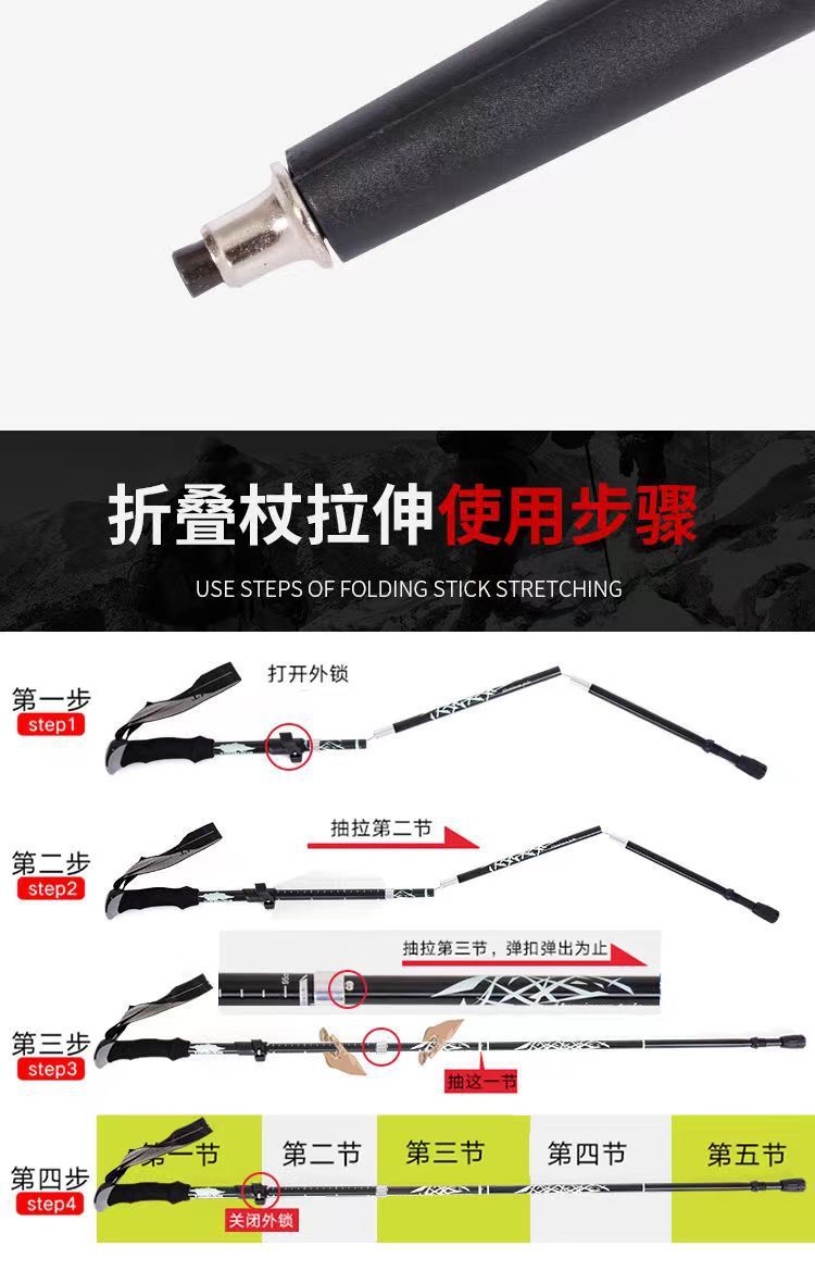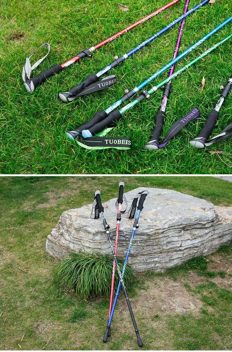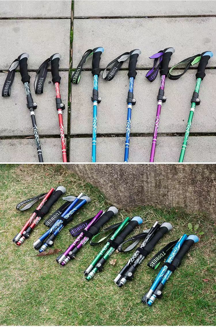 접이식 트레킹 폴, 알루미늄 합금 3단 텔레스코픽 미끄럼 방지 폴 팁, 하이킹 폴, 휴대용 퀵 버클 잠금 장치 디자인