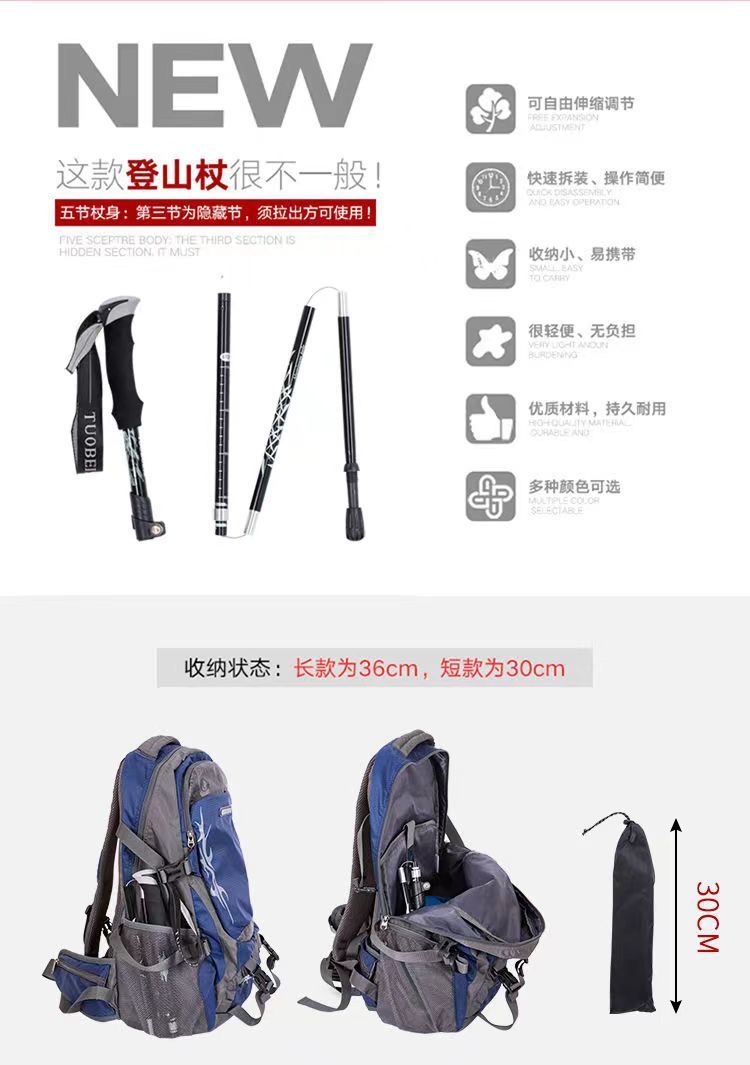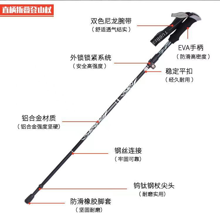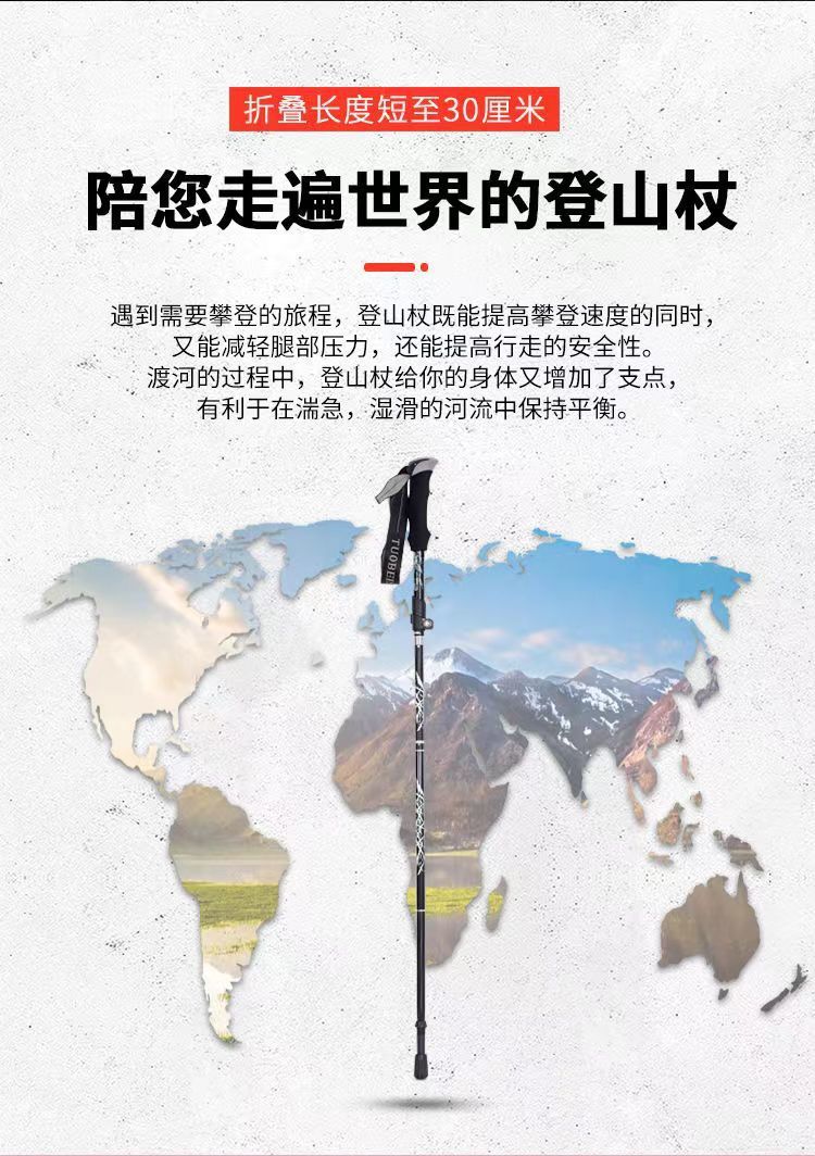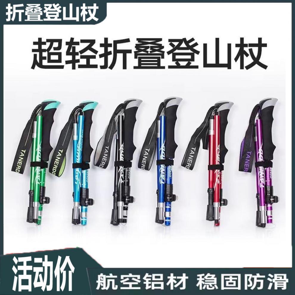 접이식 트레킹 폴, 알루미늄 합금 3단 텔레스코픽 미끄럼 방지 폴 팁, 하이킹 폴, 휴대용 퀵 버클 잠금 장치 디자인