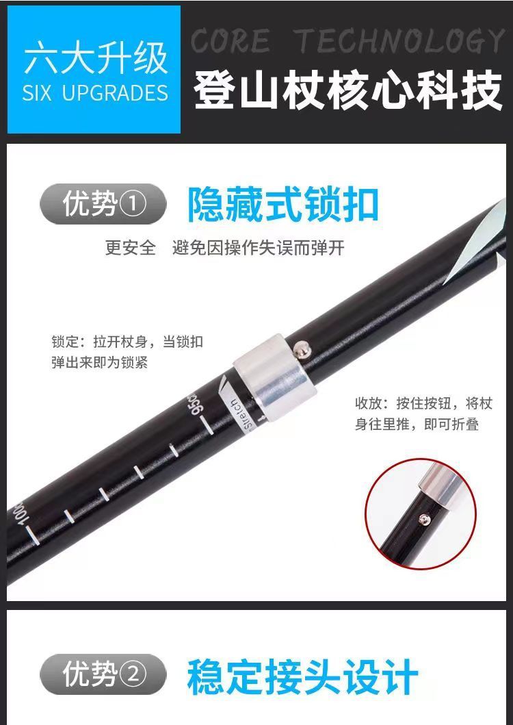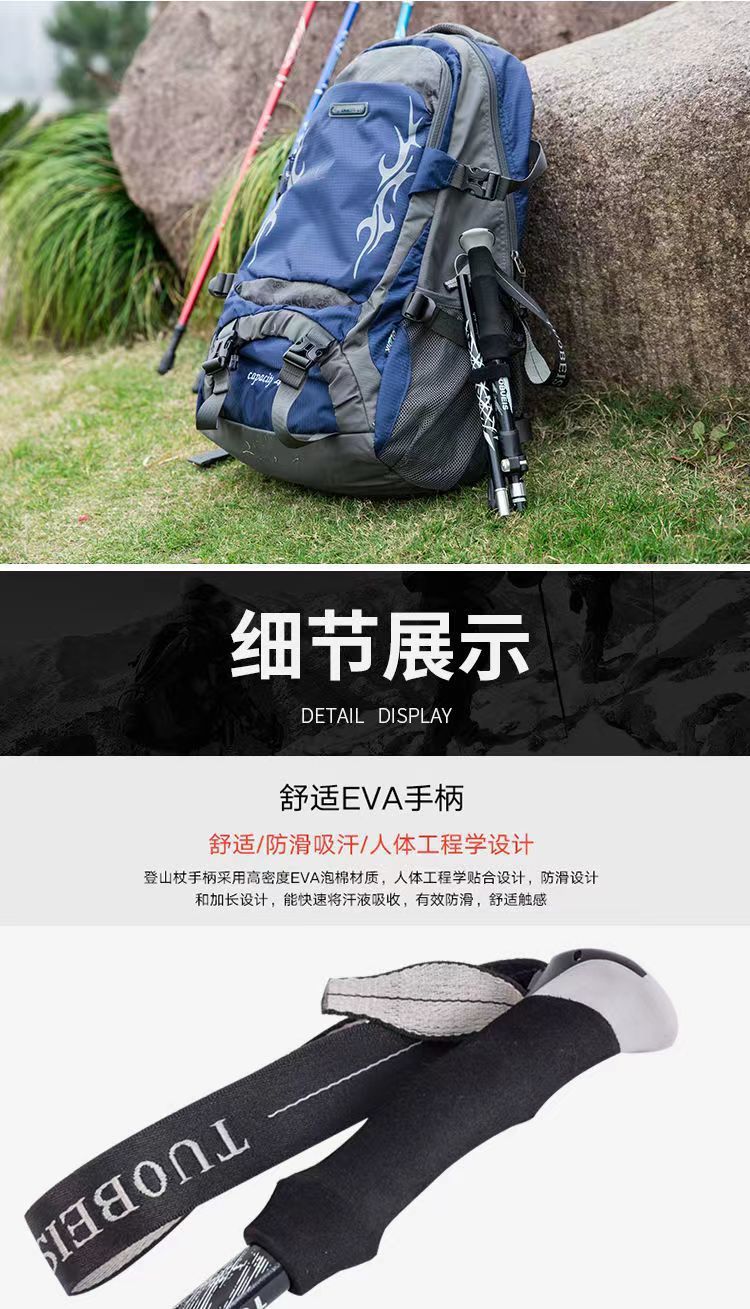 접이식 트레킹 폴, 알루미늄 합금 3단 텔레스코픽 미끄럼 방지 폴 팁, 하이킹 폴, 휴대용 퀵 버클 잠금 장치 디자인스토어 가기