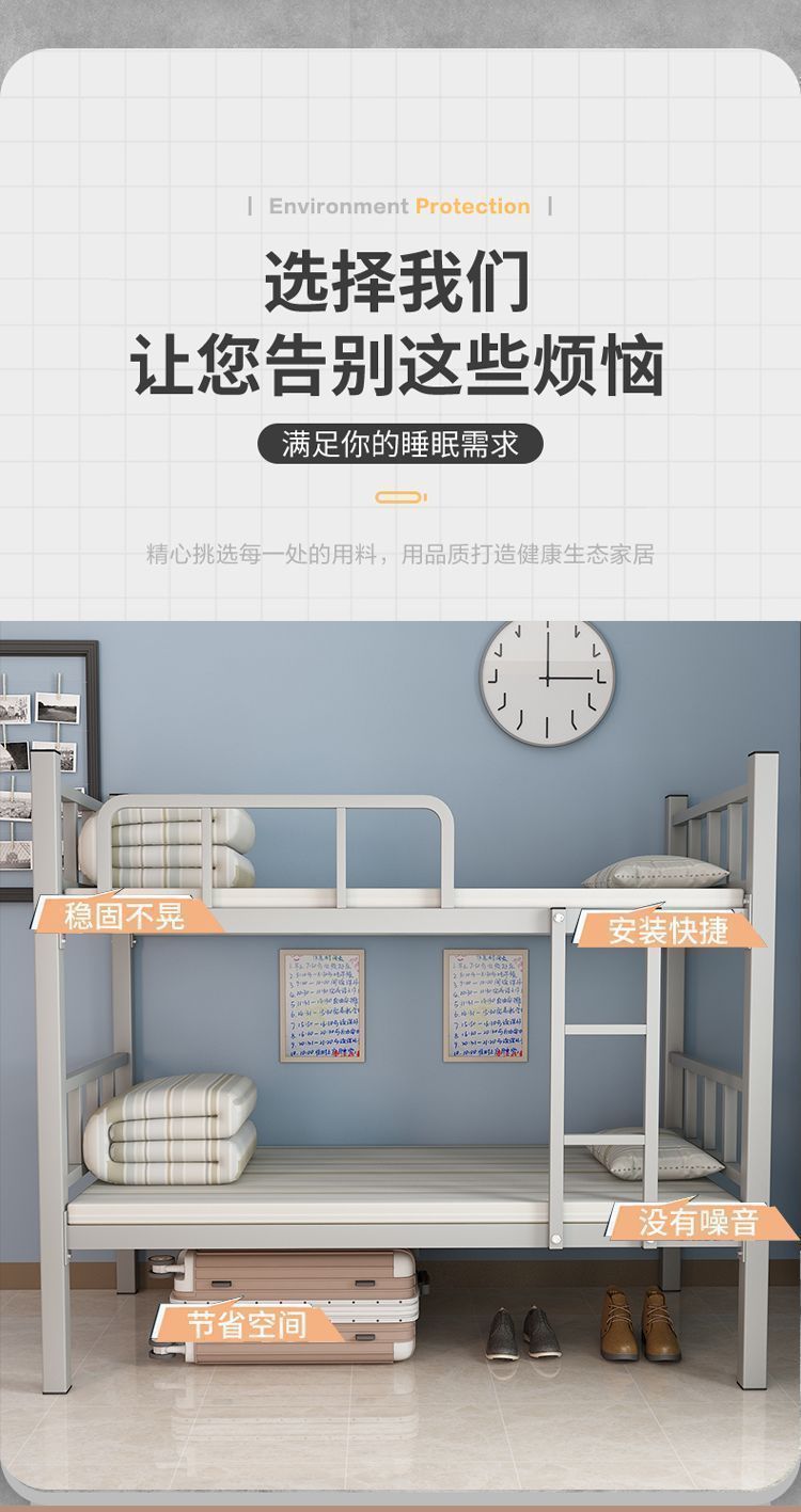 아이언 침대 이층 침대 더블 레이어 아이언 프레임 침대 직원 기숙사 침대 노동자 학생 아파트 이층 침대 2 층스토어 가기