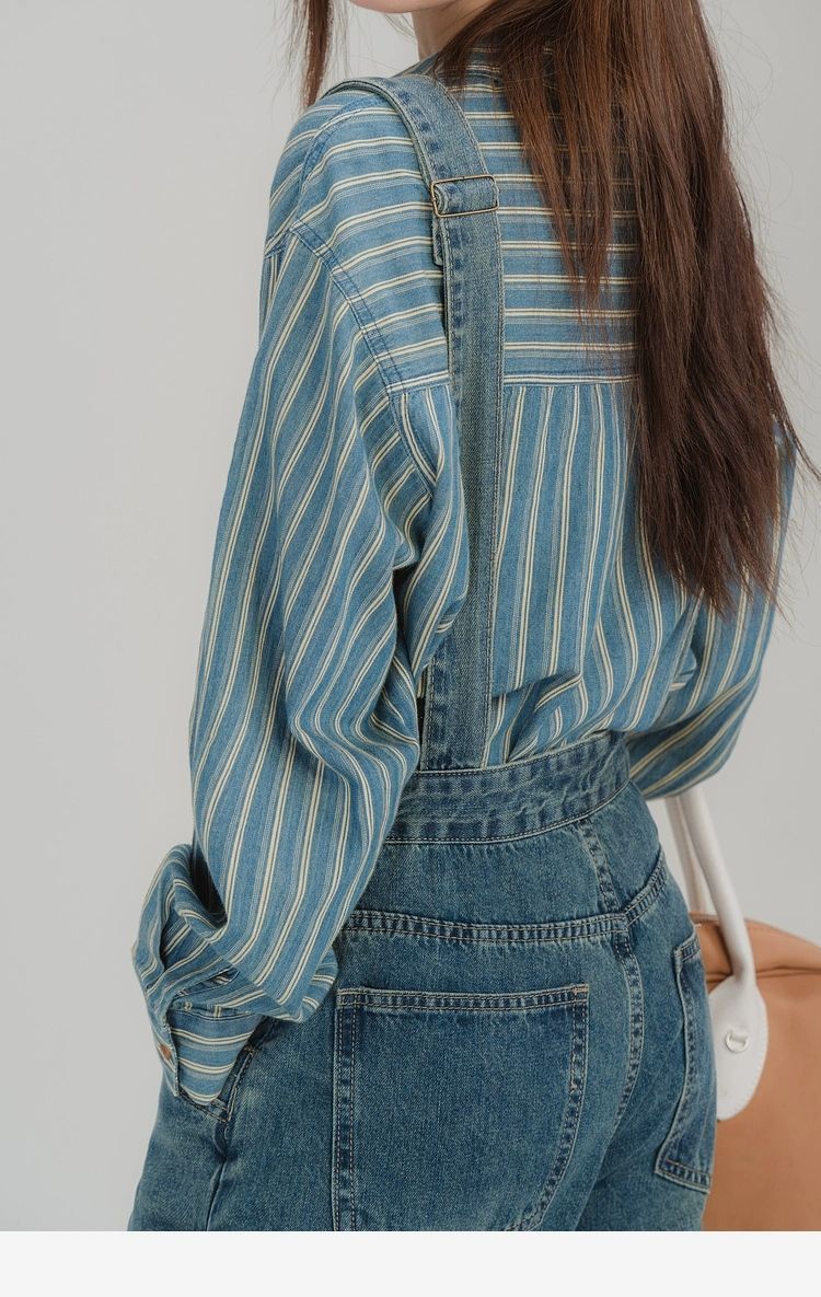 여성을위한 블루 구리 버클 스트랩 청바지 봄 2025 새로운 느슨한 복고풍 슬림 스트레이트 캐주얼 긴 바지스토어 가기