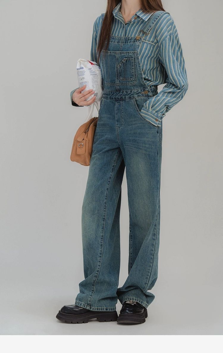 여성을위한 블루 구리 버클 스트랩 청바지 봄 2025 새로운 느슨한 복고풍 슬림 스트레이트 캐주얼 긴 바지
