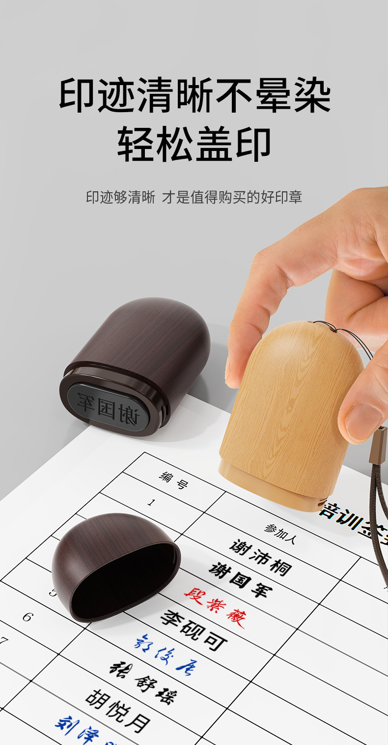 새로운 우드 그레인 시그니처 씰 회계 씰 스퀘어 작은 플랫 씰 성격 서명 감광 이름 필기 서명 조각 씰스토어 가기