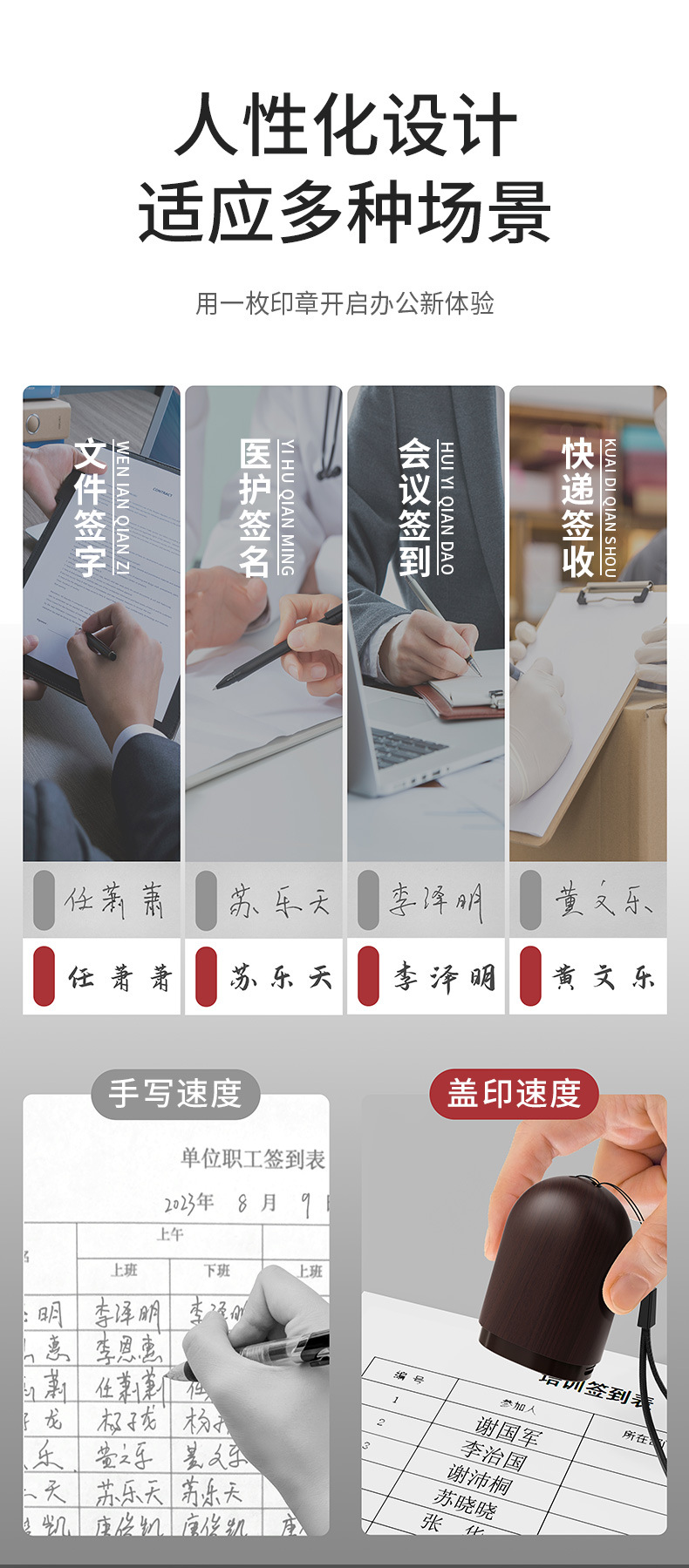 새로운 우드 그레인 시그니처 씰 회계 씰 스퀘어 작은 플랫 씰 성격 서명 감광 이름 필기 서명 조각 씰