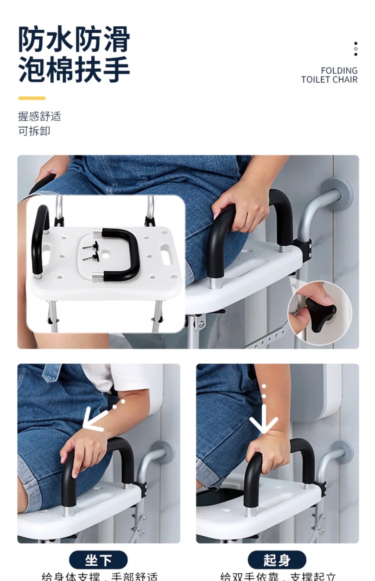 노인을 위한 새로운 스타일의 두용도 변기, 벽걸이형 변기, 접이식 변기 의자, 팔걸이 s^스토어 가기