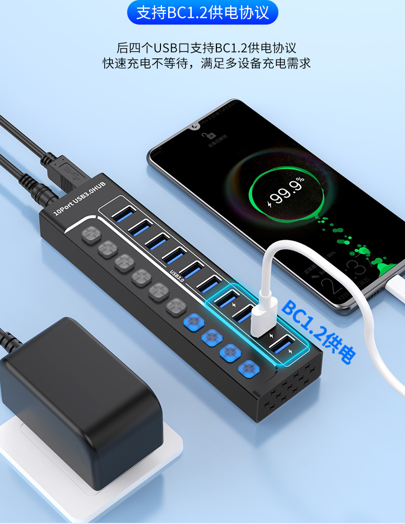 • 블랙 영국 표준 36W(10포트 데이터 전송 + BC1.2 충전)