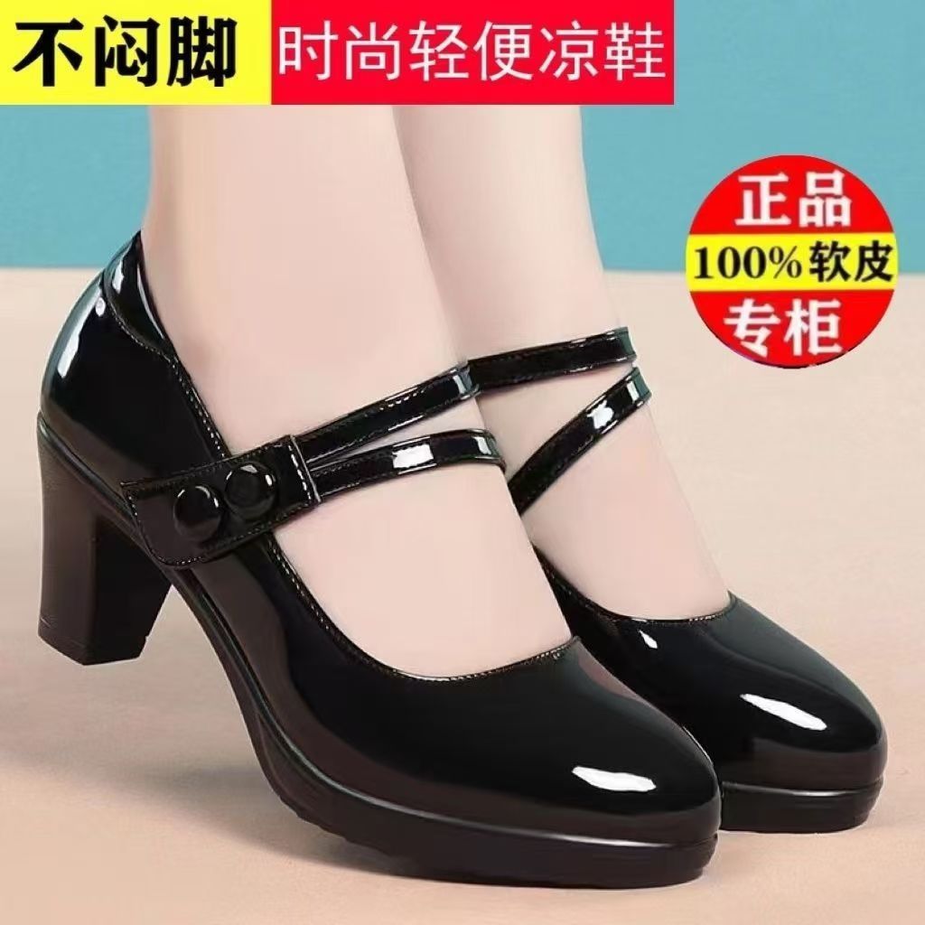 진짜 소가죽 여성용 신발 2024년 봄 가을 신상 하이힐 라운드 토 방수 플랫폼 굽 두꺼운 굽 치파오와 어울리는 엄마 패션스토어 가기