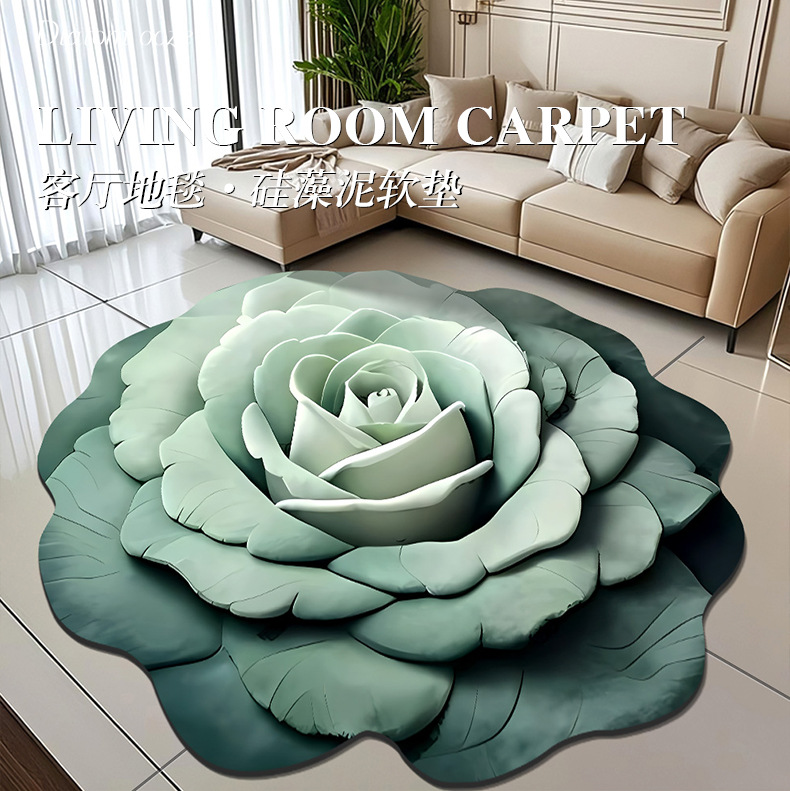 3D 시각 효과 모란 블라썸 디아톰 머드 매트 가정용 거실 카펫 먼지 저항 하 고 쉽게 물 흡수 방지 슬립 매트