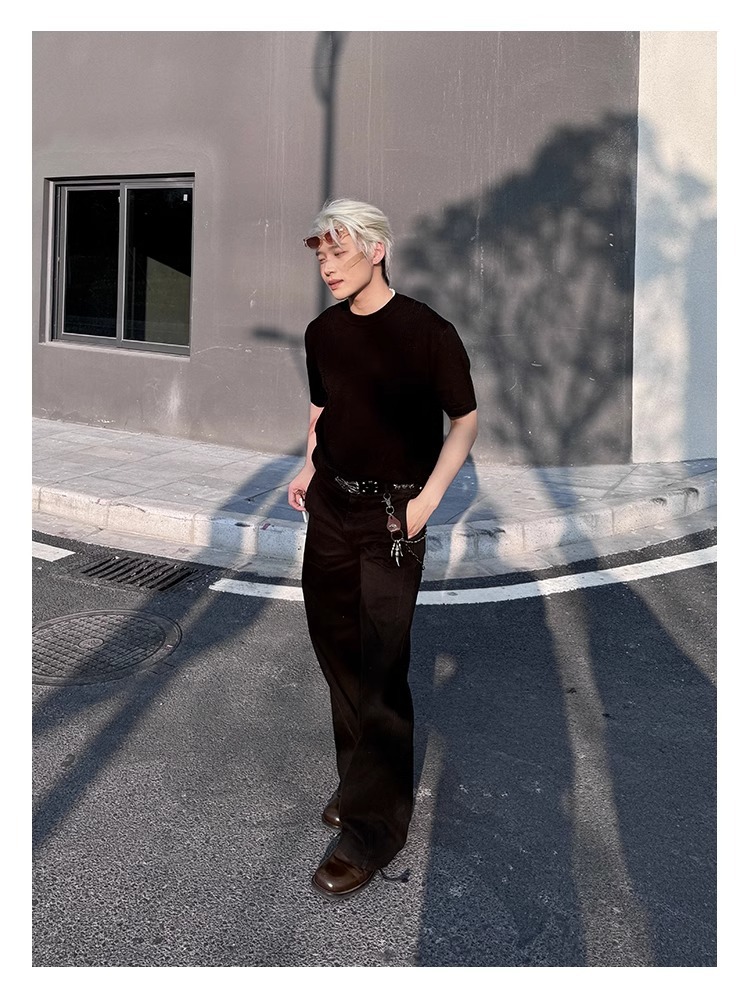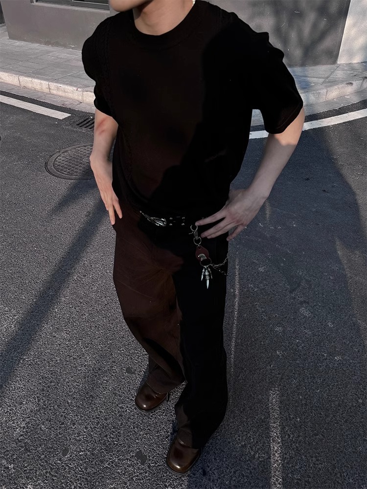 2025 새로운 신생 오래된 돈 바람 얼음 시원한 실크 짠 둥근 목 니트 짧은 소매 시원한 피부 친화적 인 통근 캐주얼 티셔츠스토어 가기