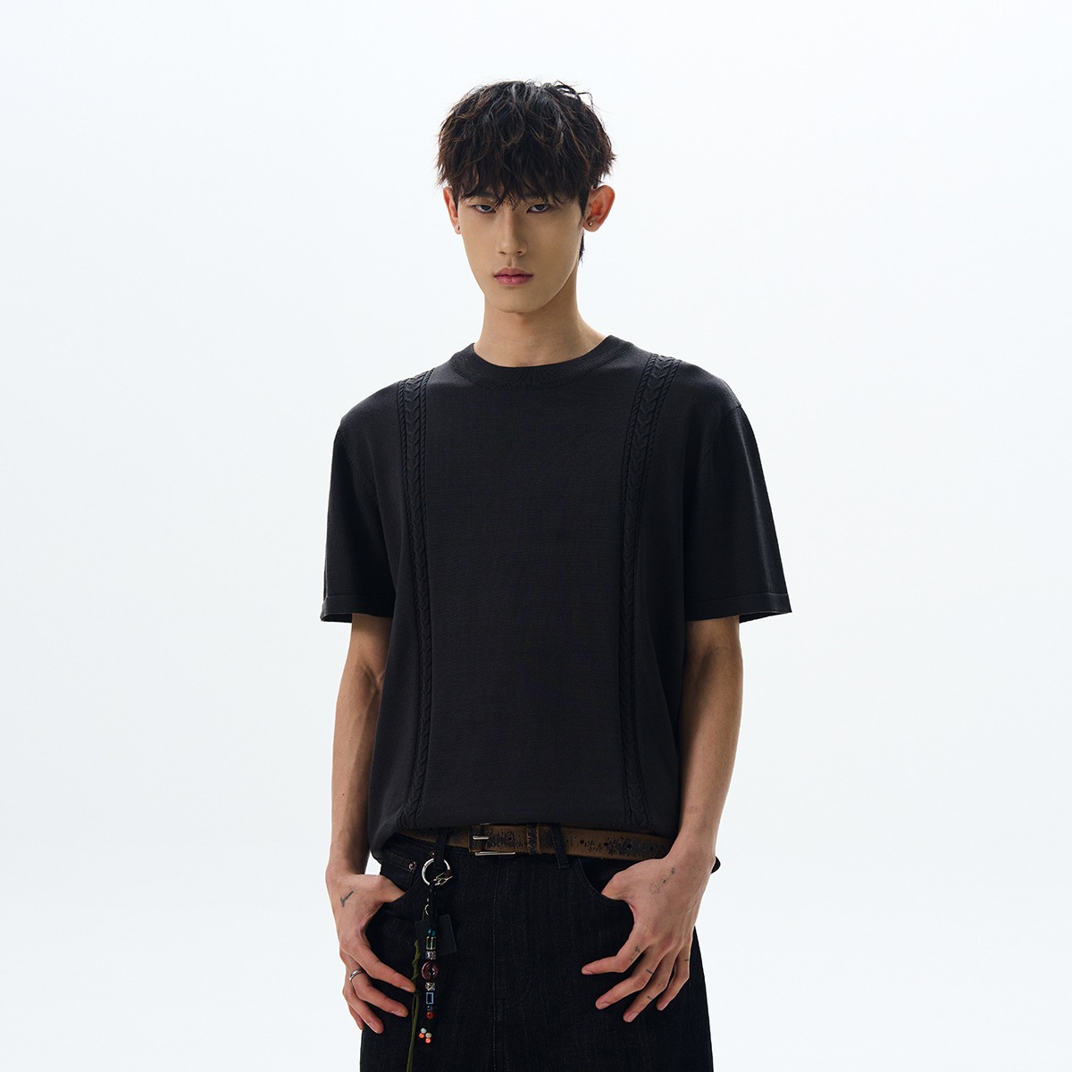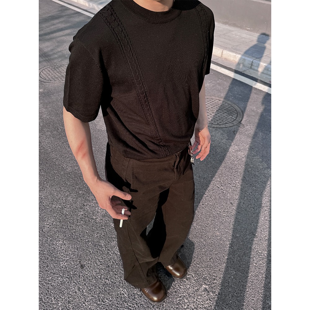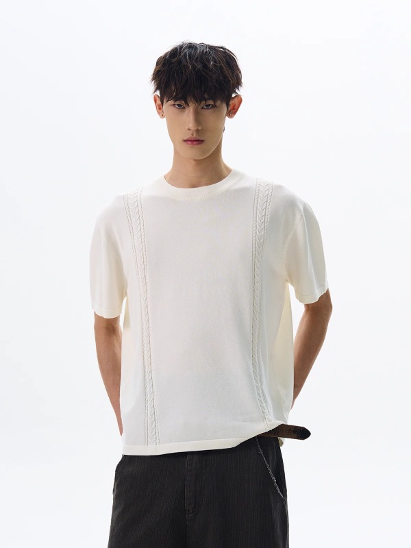 2025 새로운 신생 오래된 돈 바람 얼음 시원한 실크 짠 둥근 목 니트 짧은 소매 시원한 피부 친화적 인 통근 캐주얼 티셔츠