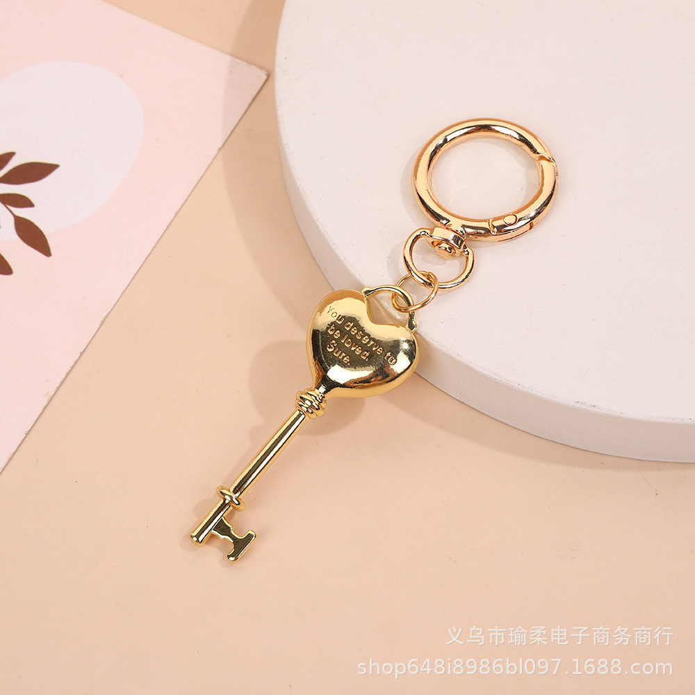 한국 인 블로거, 황동 도금 18k 골드 사랑 잠금 키 체인 가방 교수형 액세서리 커플 키 체인스토어 가기