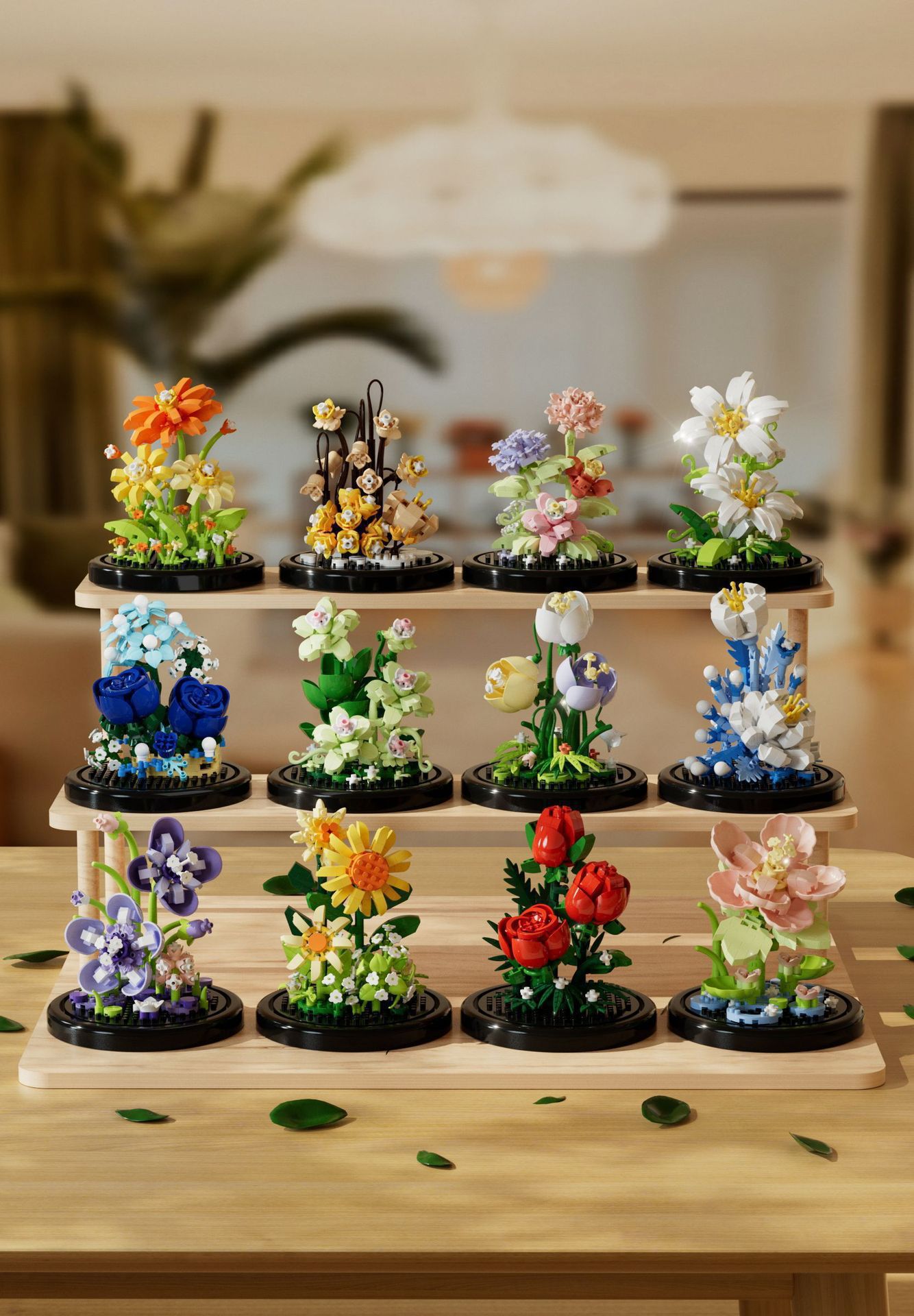 LEGO 화분에 심은 히비스커스 꽃과 호환되는 더스트 커버 빌딩 블록 어린이 조립 장난감 소녀 크로스보더 도매 배송스토어 가기