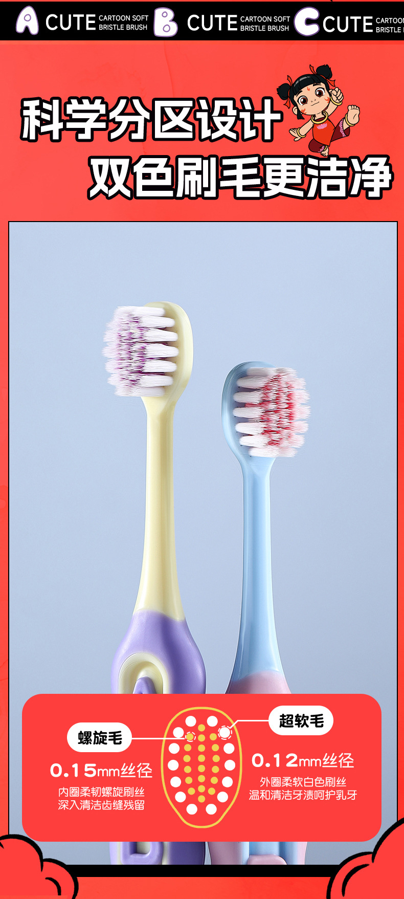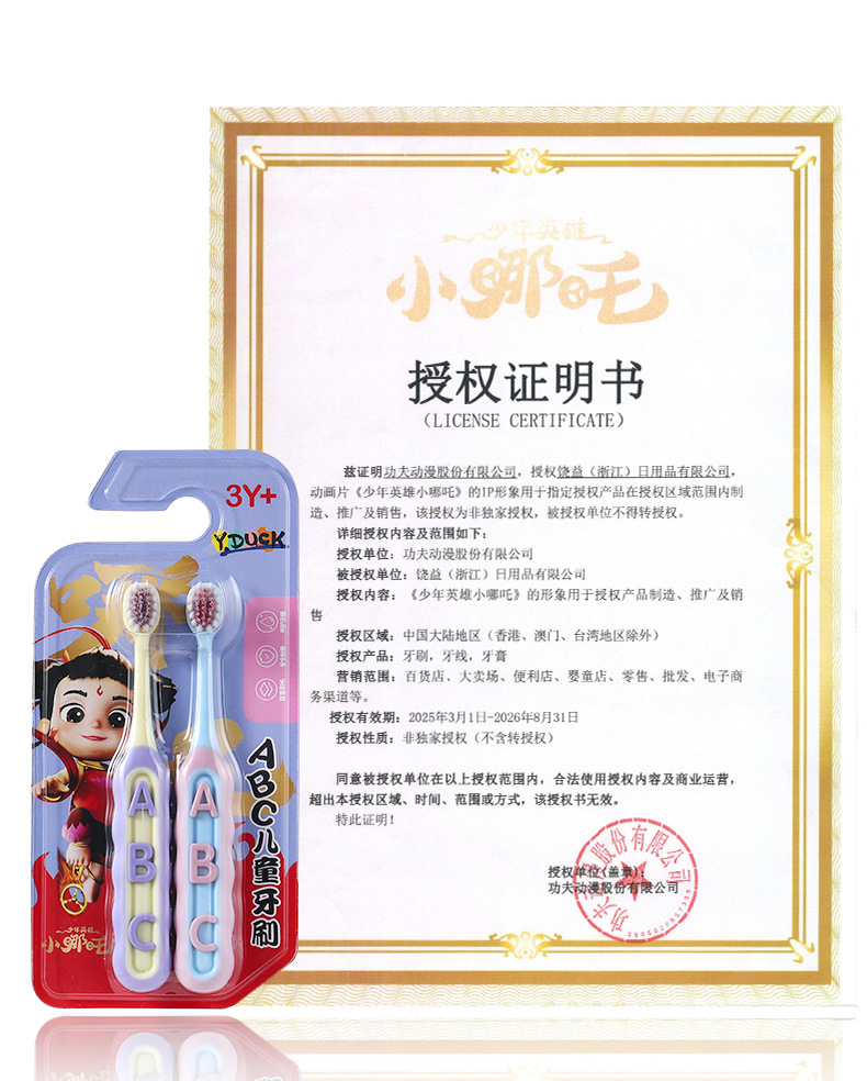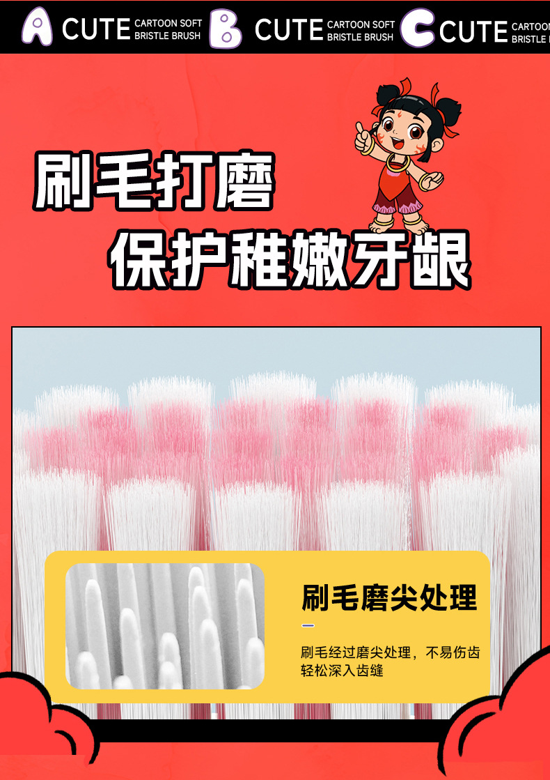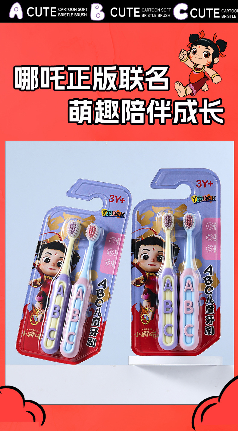 RAOYI Nezha 공동 어린이 칫솔 2 팩 3-12 세 높은 색상 가치 가정용 아기 부드러운 헤어 칫솔 재고