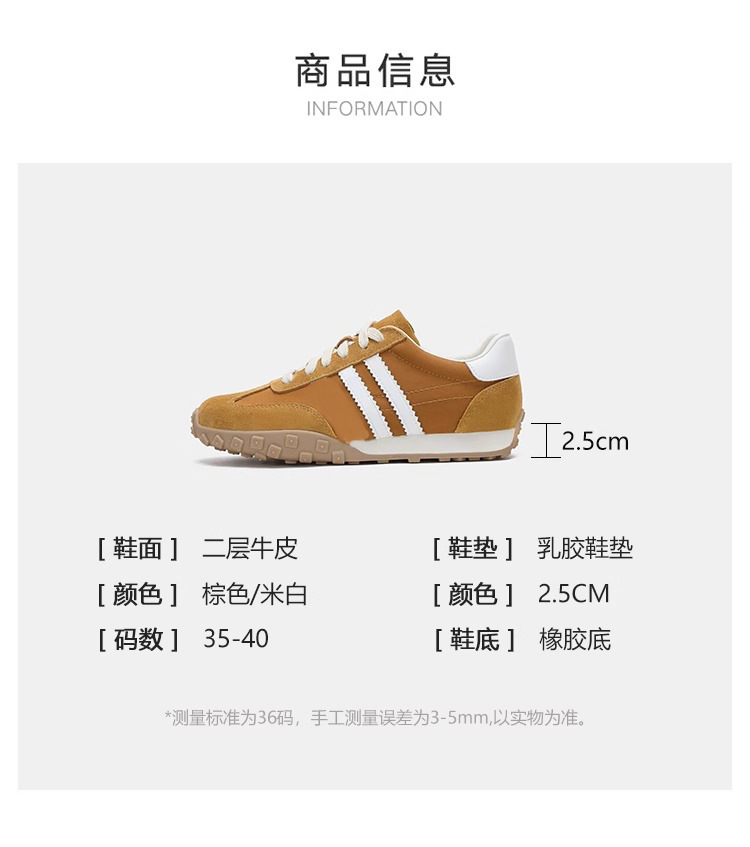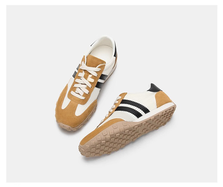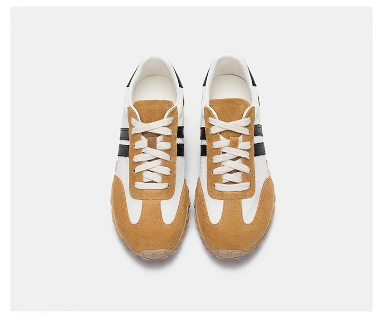 정품 가죽 레트로 부드러운 밑창 독일 훈련 신발 컬러 매칭 두꺼운 밑창 스포츠 캐주얼 스니커즈 2025 봄 새로운 도착 포레스트 검프 신발스토어 가기