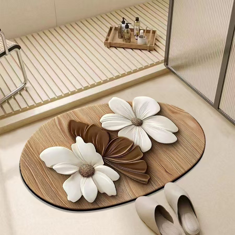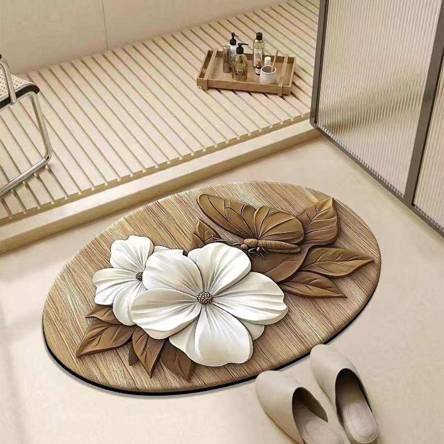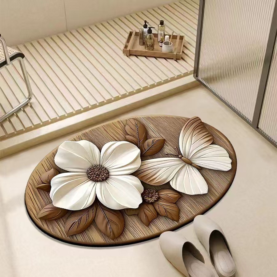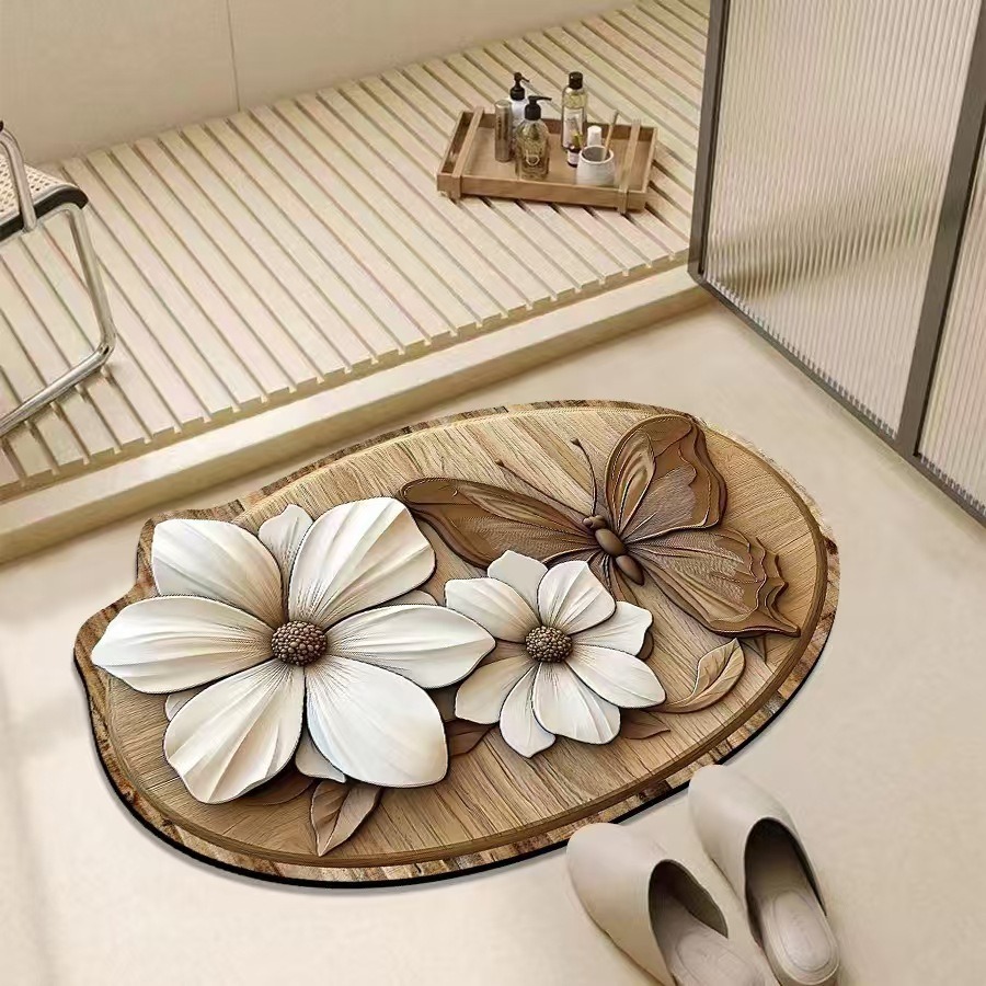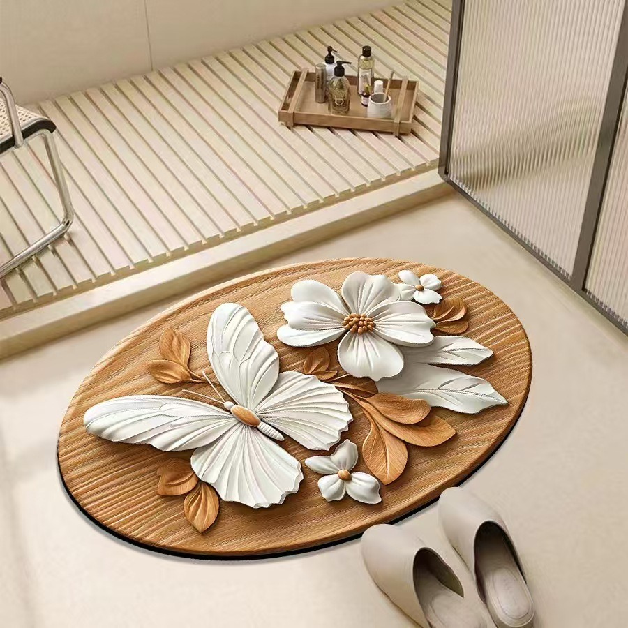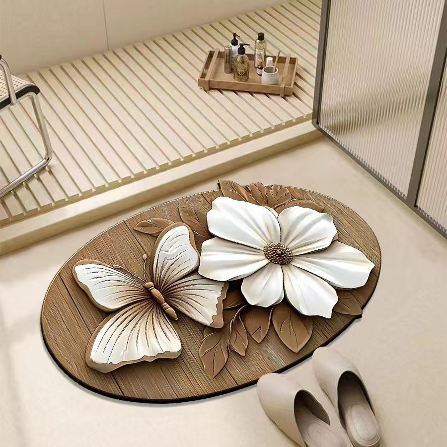3D 비전 규조토 진흙 바닥 매트 나비 꽃 홈 욕실 바닥 매트 욕실 흡수성 발 매트 입구 문 매트