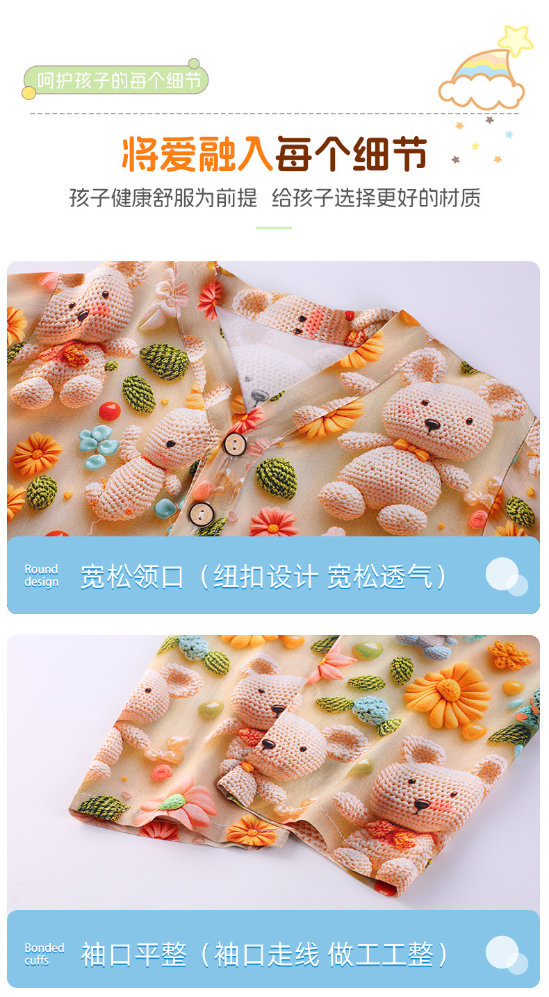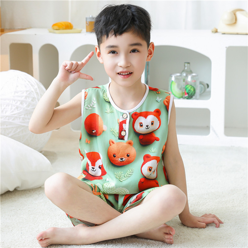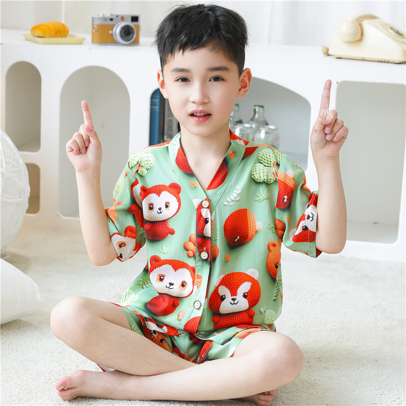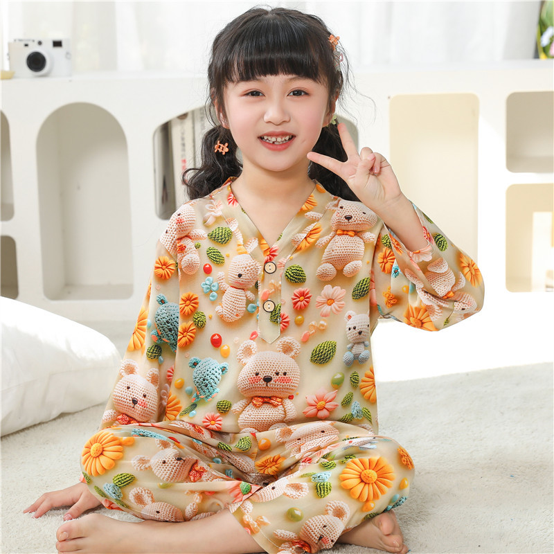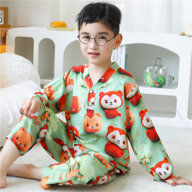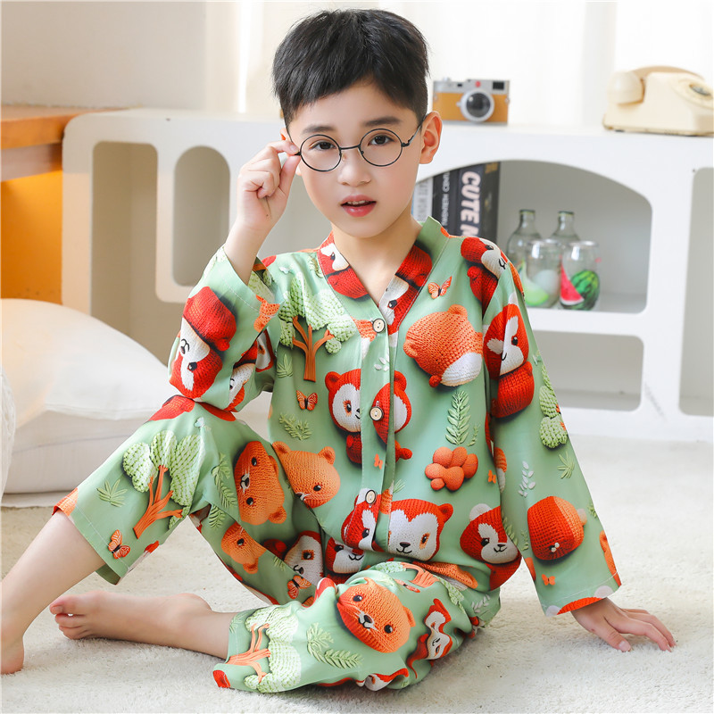 어린이 잠옷 여름 얇은 긴 소매 5D 코튼 실크 홈 의류 소년 소녀 용 에어컨 세트