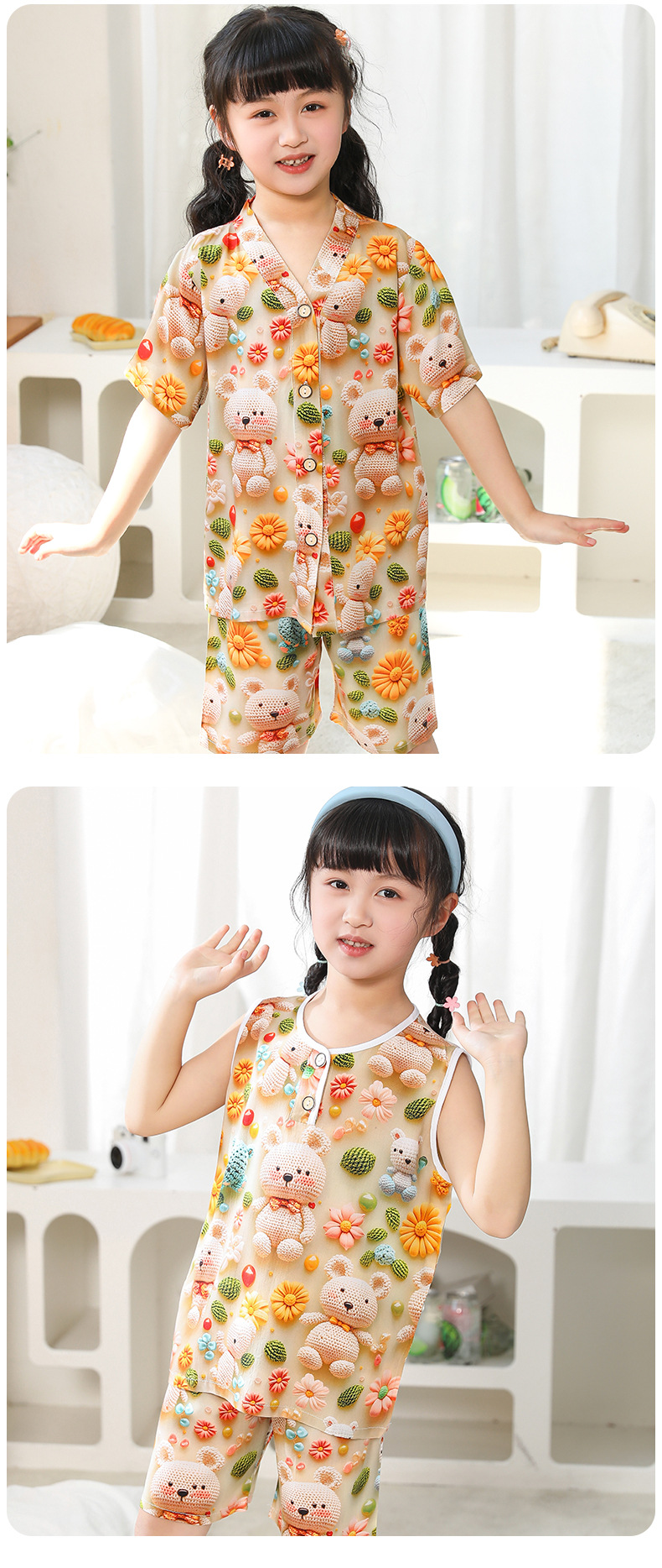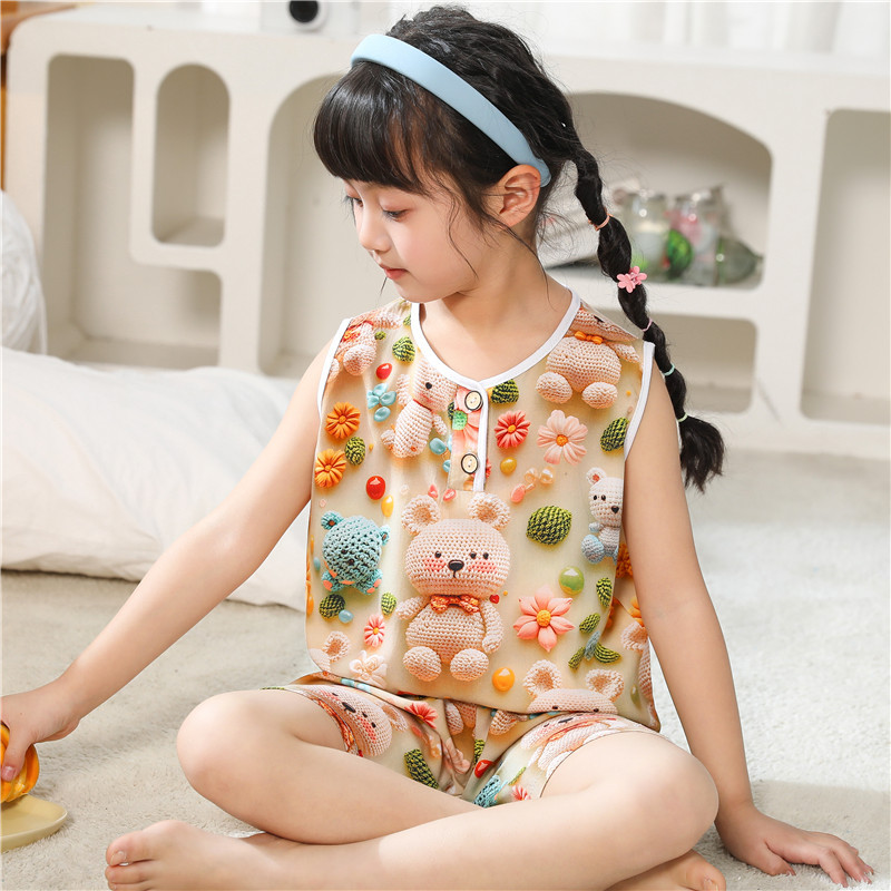 • 5D 코튼 실크 조끼 곰 입체 꽃