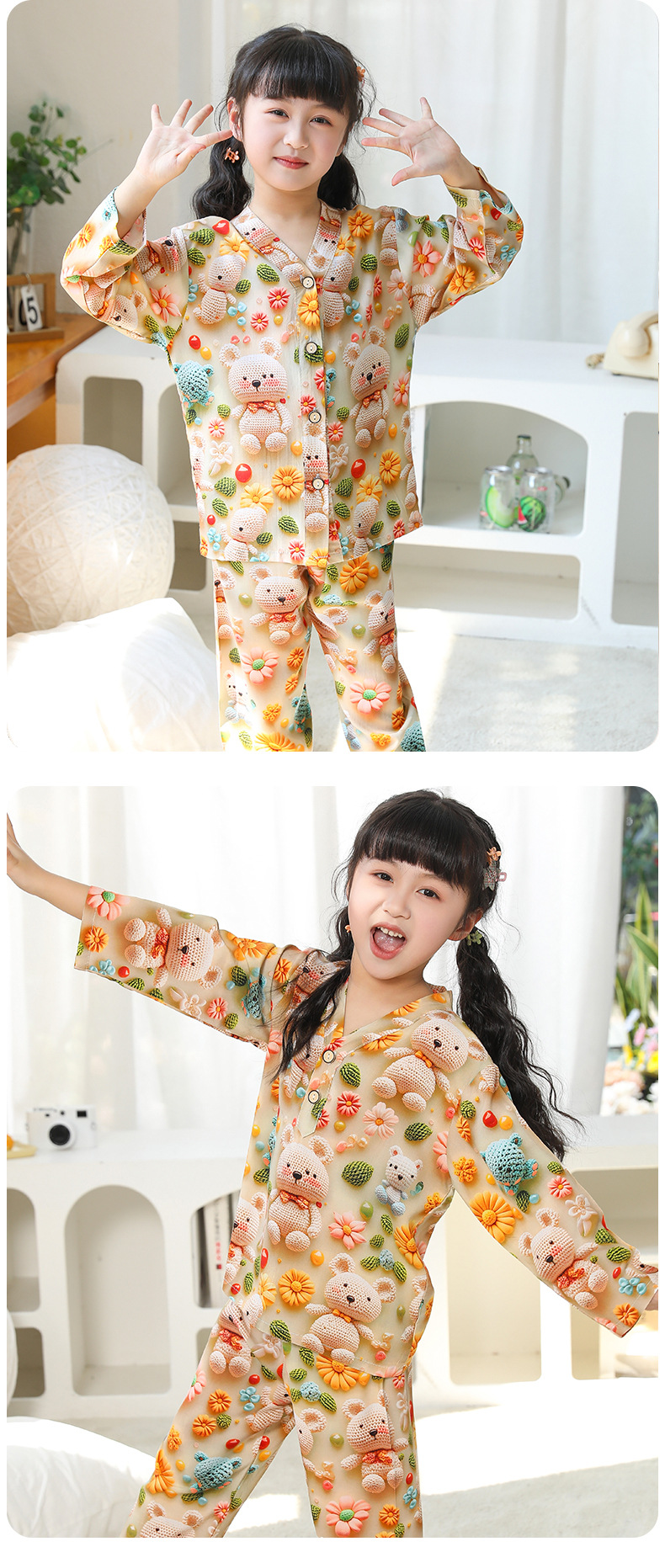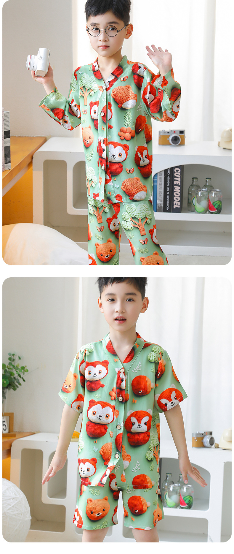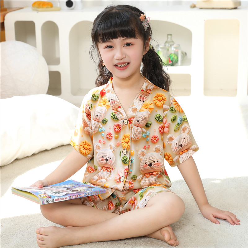 어린이 잠옷 여름 얇은 긴 소매 5D 코튼 실크 홈 의류 소년 소녀 용 에어컨 세트스토어 가기