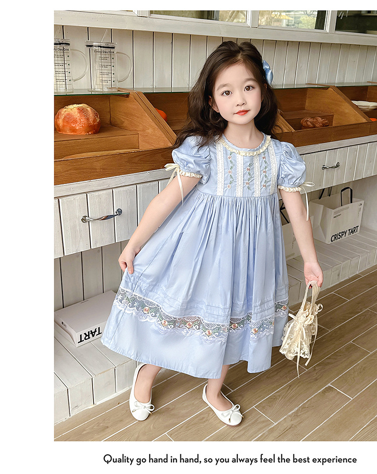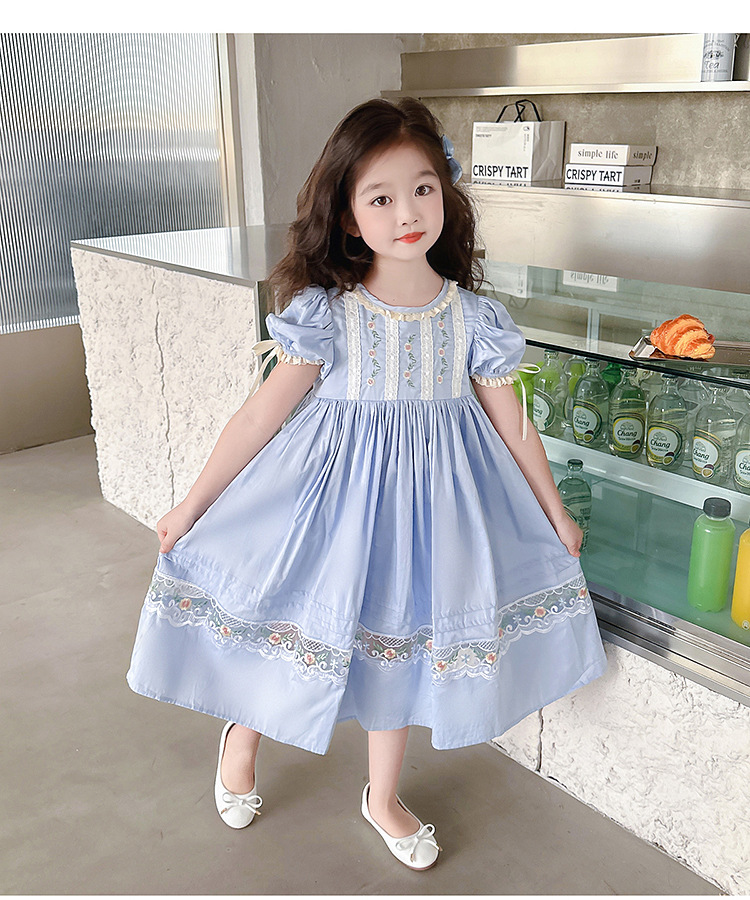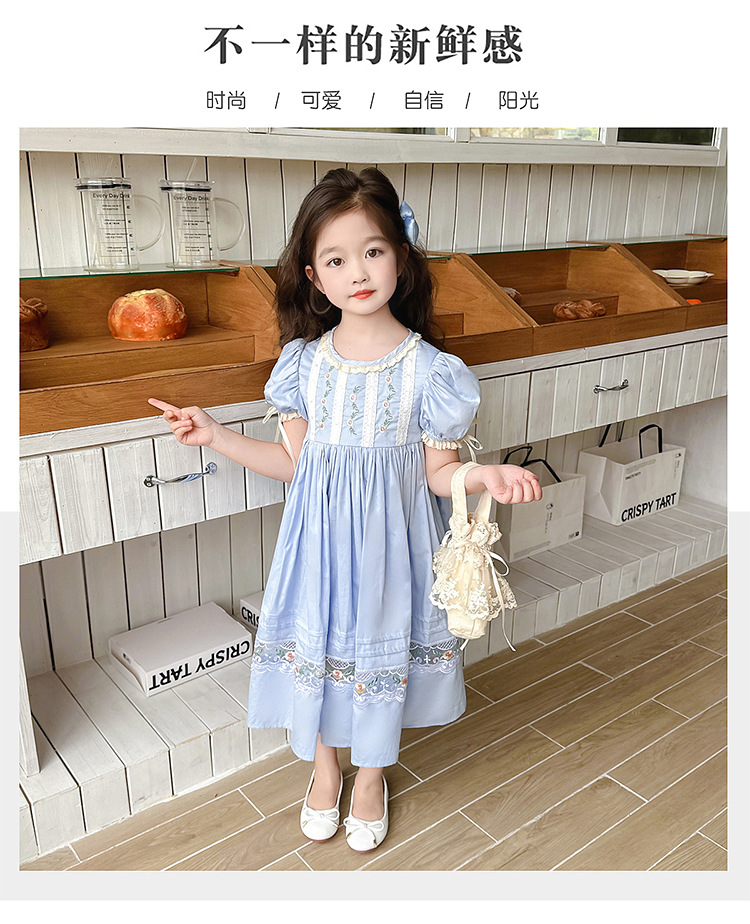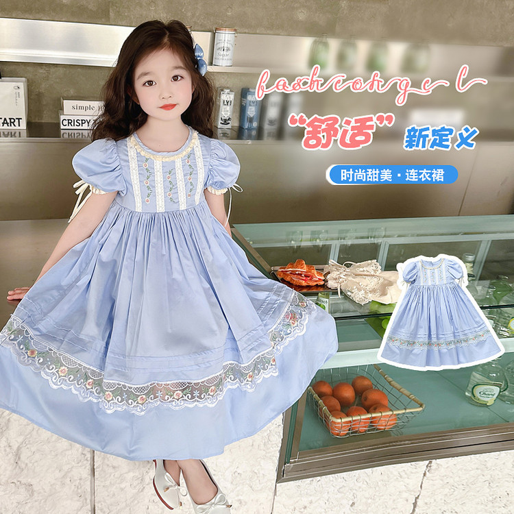 여자 여름 원피스 2025 새로운 스타일 아기 소녀 퍼프 소매 달콤한 자수 면화 원피스 크로스 국경 공주 원피스스토어 가기