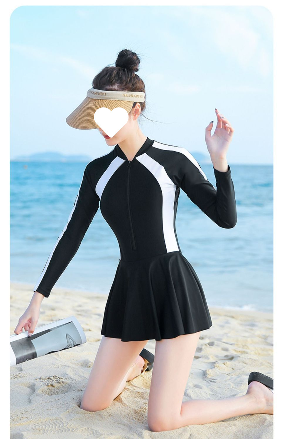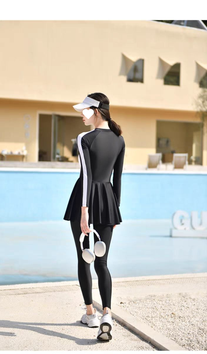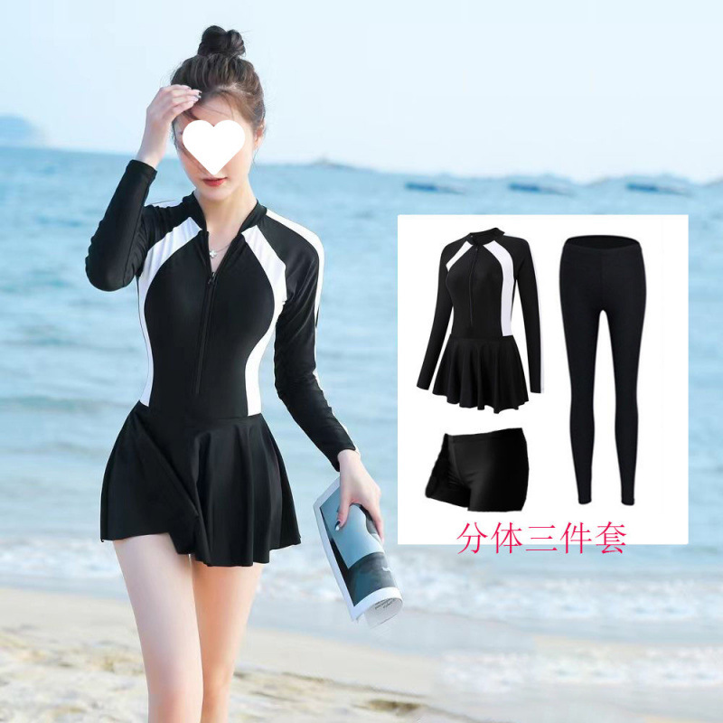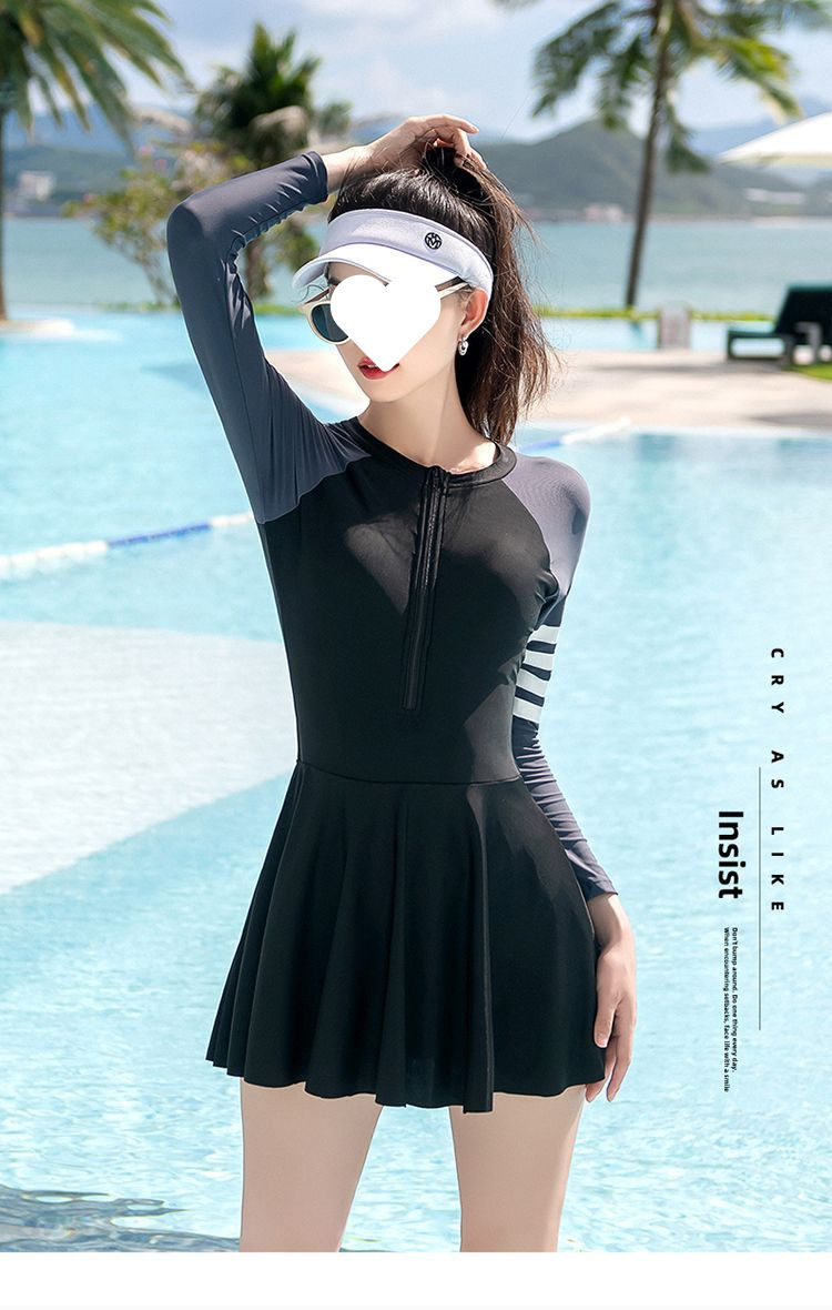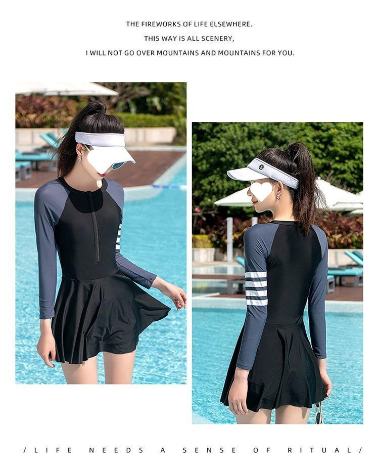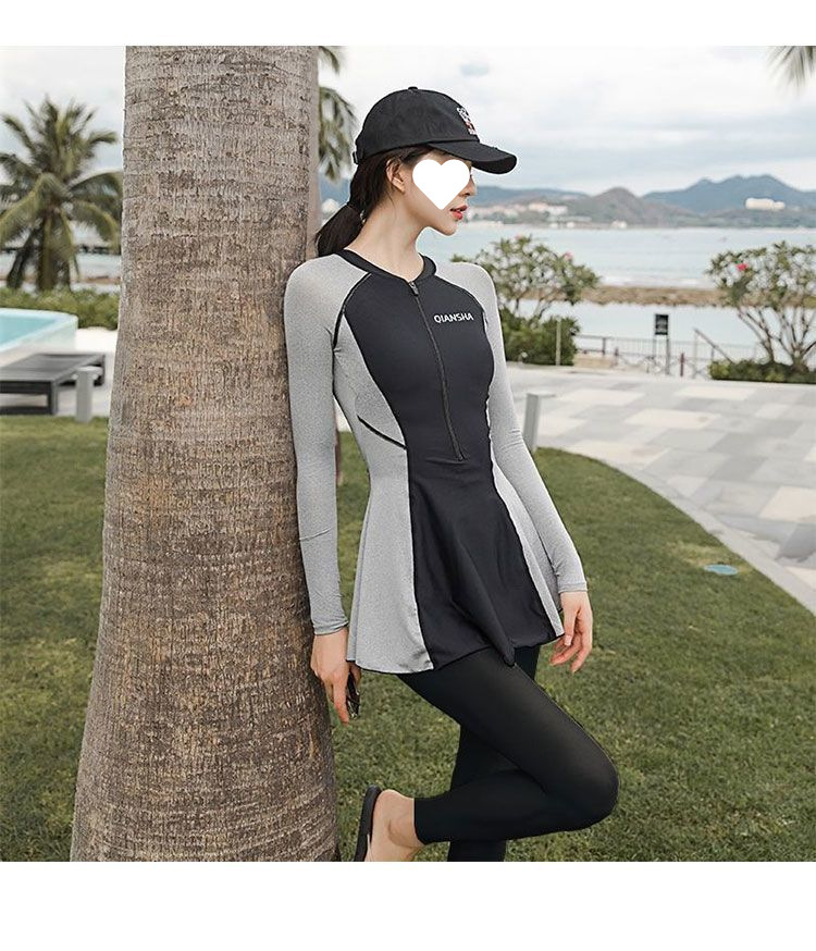 긴팔, 긴바지, 자외선 차단 수영복, 여성용 원피스 스커트 스타일, 살 커버, 슬리밍, 보수적, 큰 사이즈, 새로운 스타일, 온천욕스토어 가기