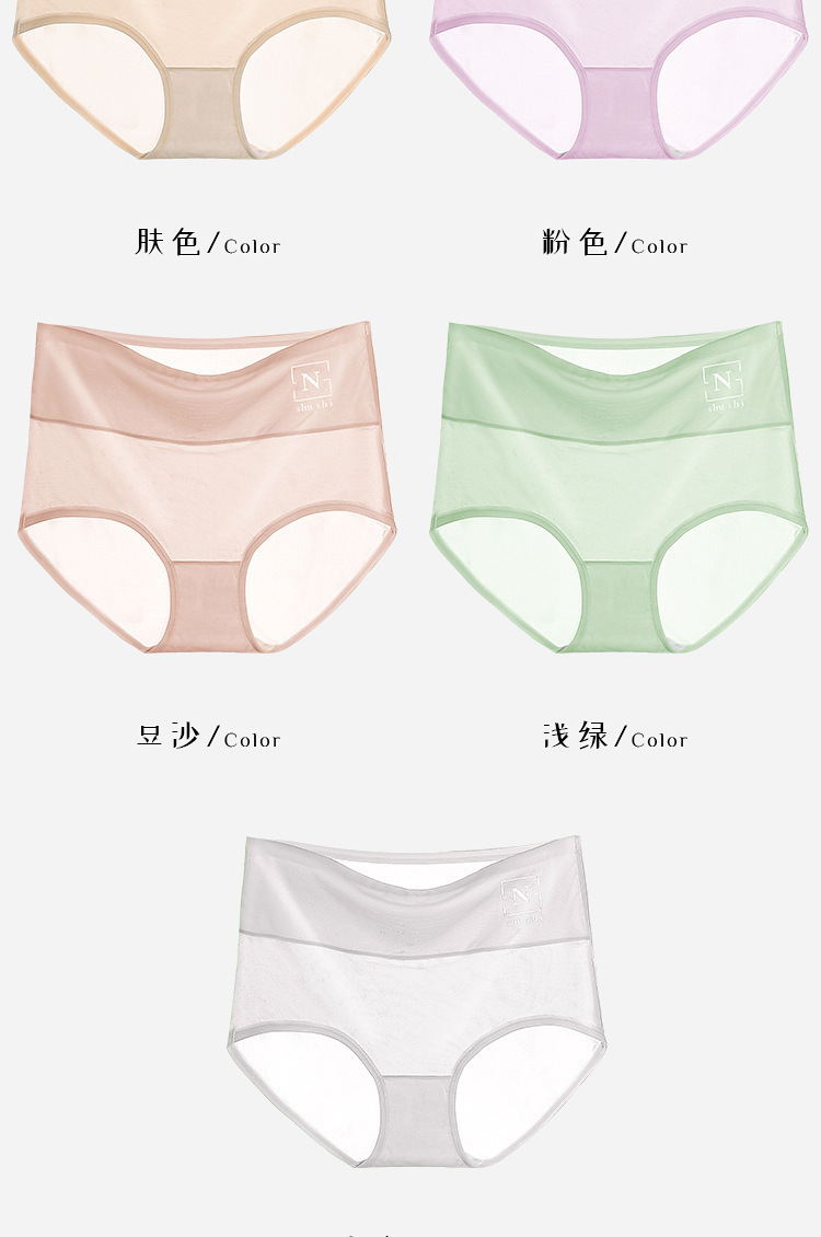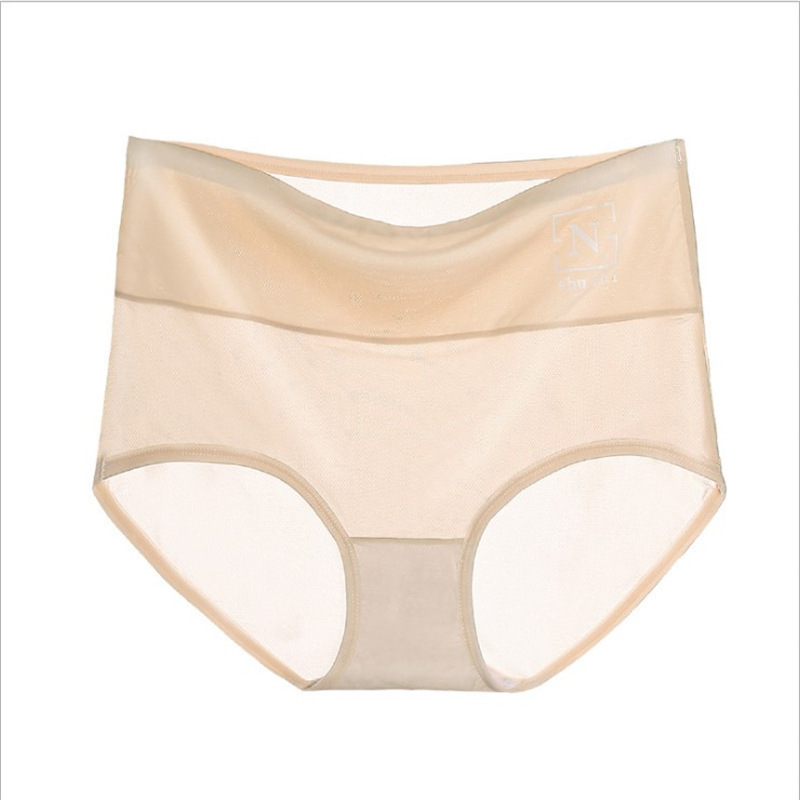 봄과 여름 폭발 높은 허리 메쉬 통기성 아이스 실크 속옷 여성의 통기성 코튼 이음매끈한 엉덩이 숙녀 플러스 사이즈 브리프