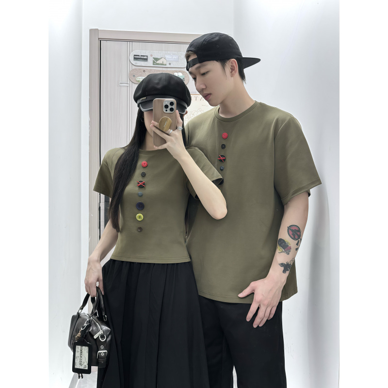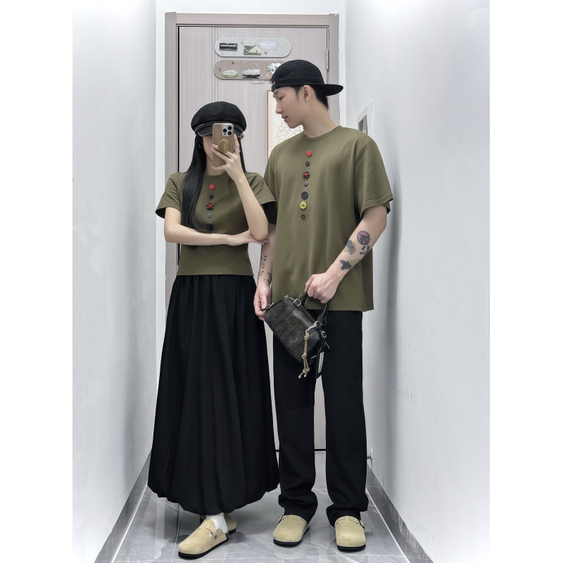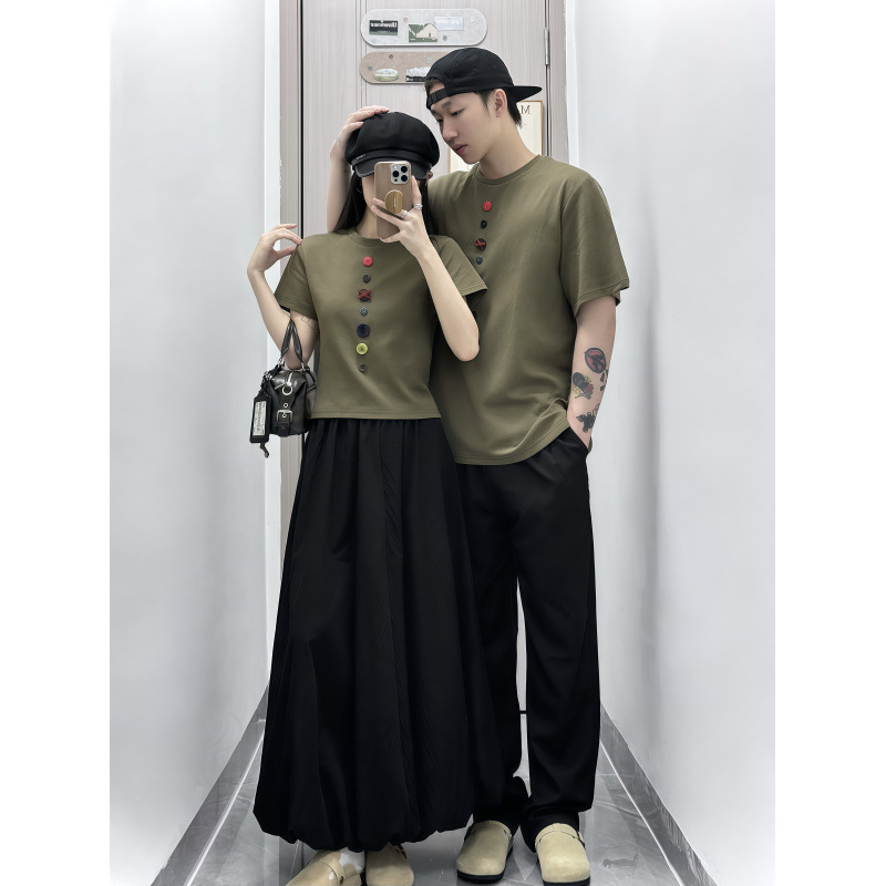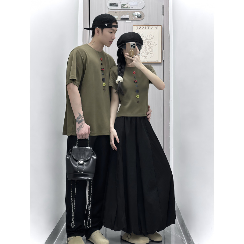 2025 여름 버튼 3 차원 장식 하나의 긴 짧은 어깨 티셔츠 꽃 봉오리 치마 연인 복장스토어 가기