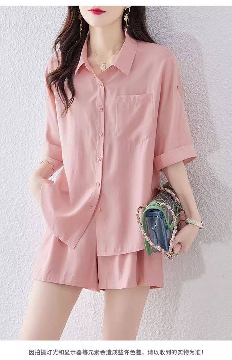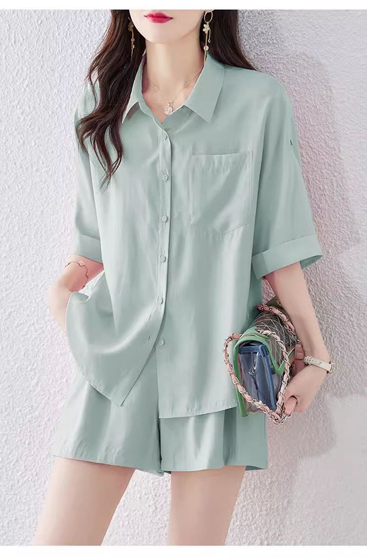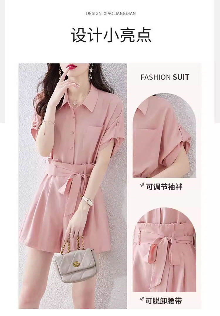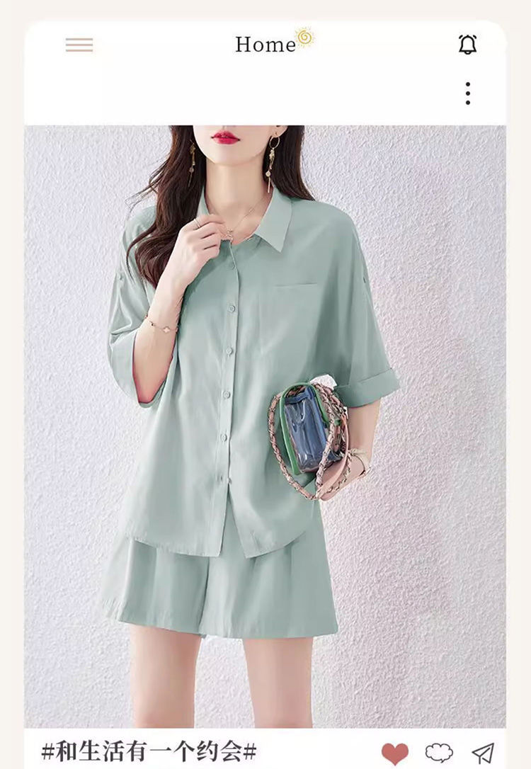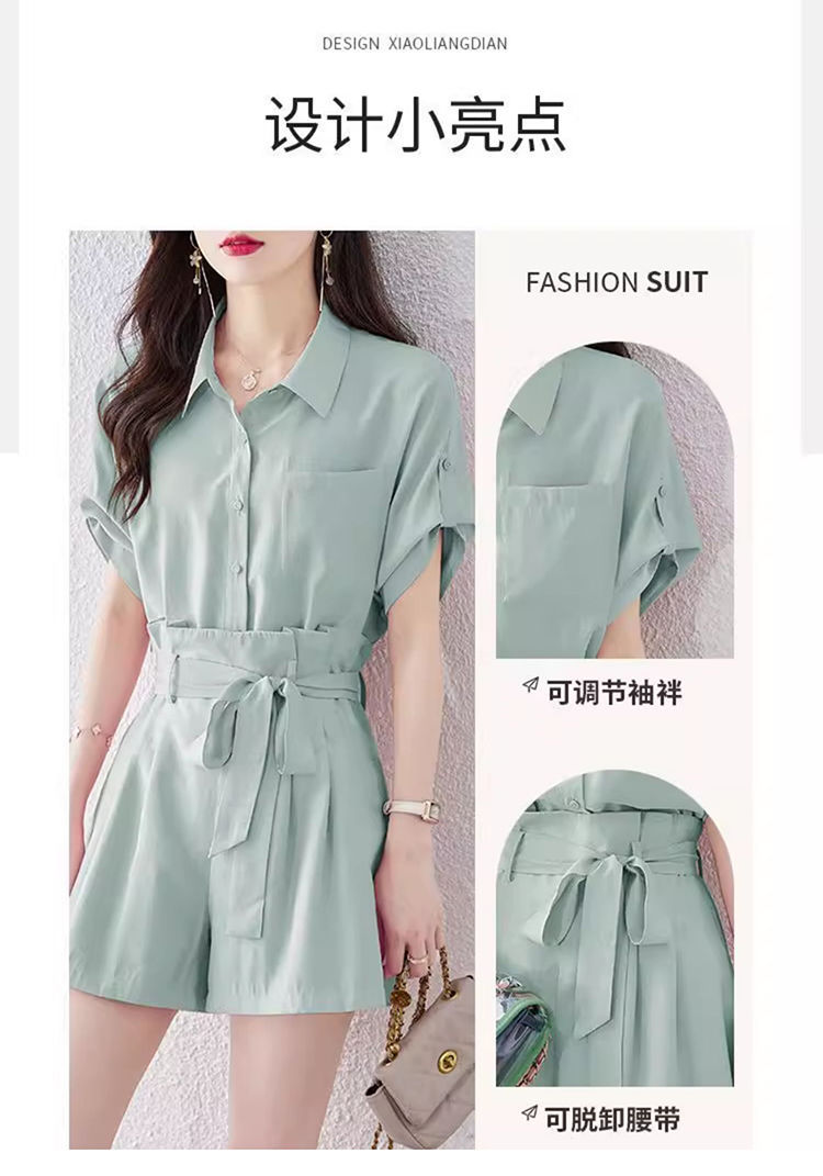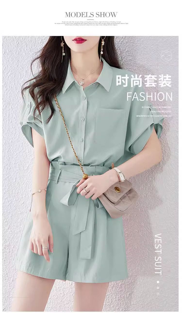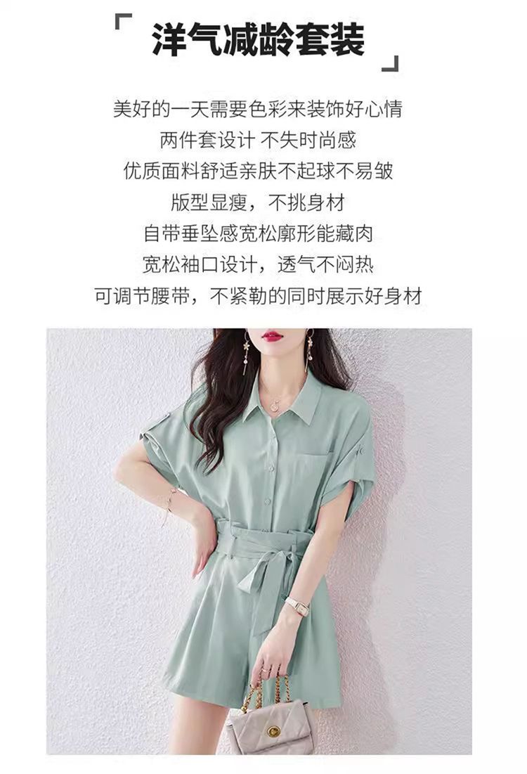 [투피스 세트] 기질 반팔 셔츠 여성의 느슨한 셔츠 디자인 감각 높은 허리 넓은 다리 반바지 패션 세트